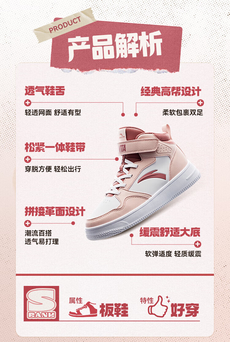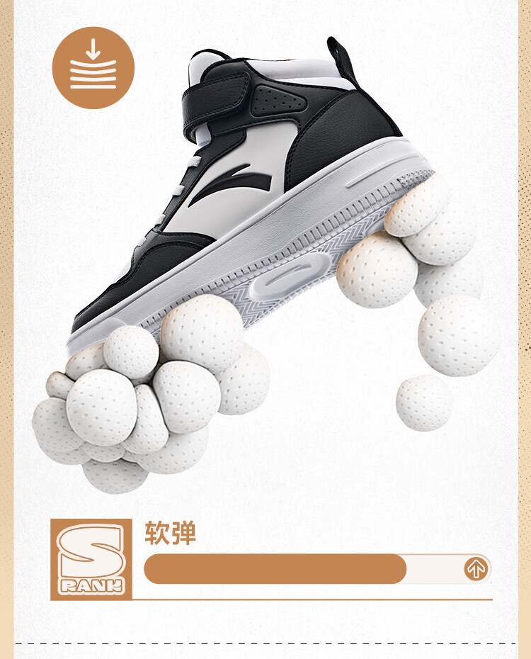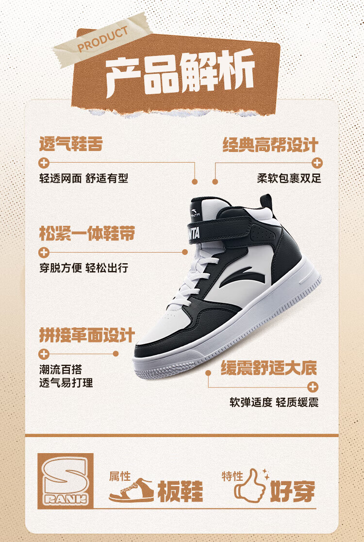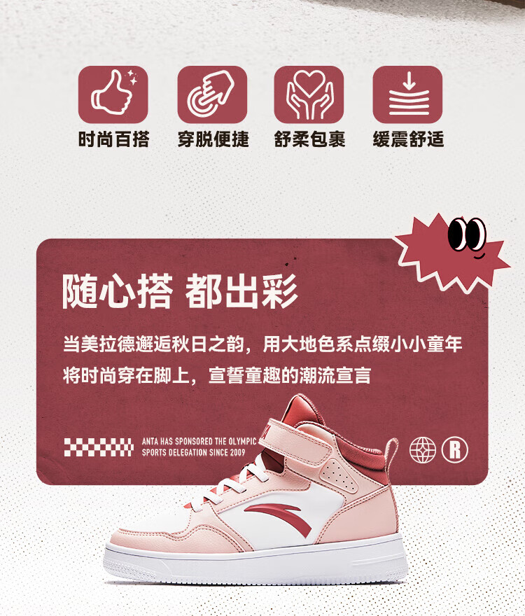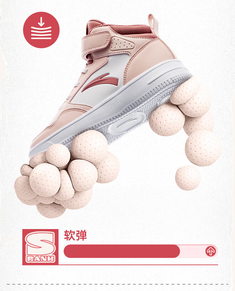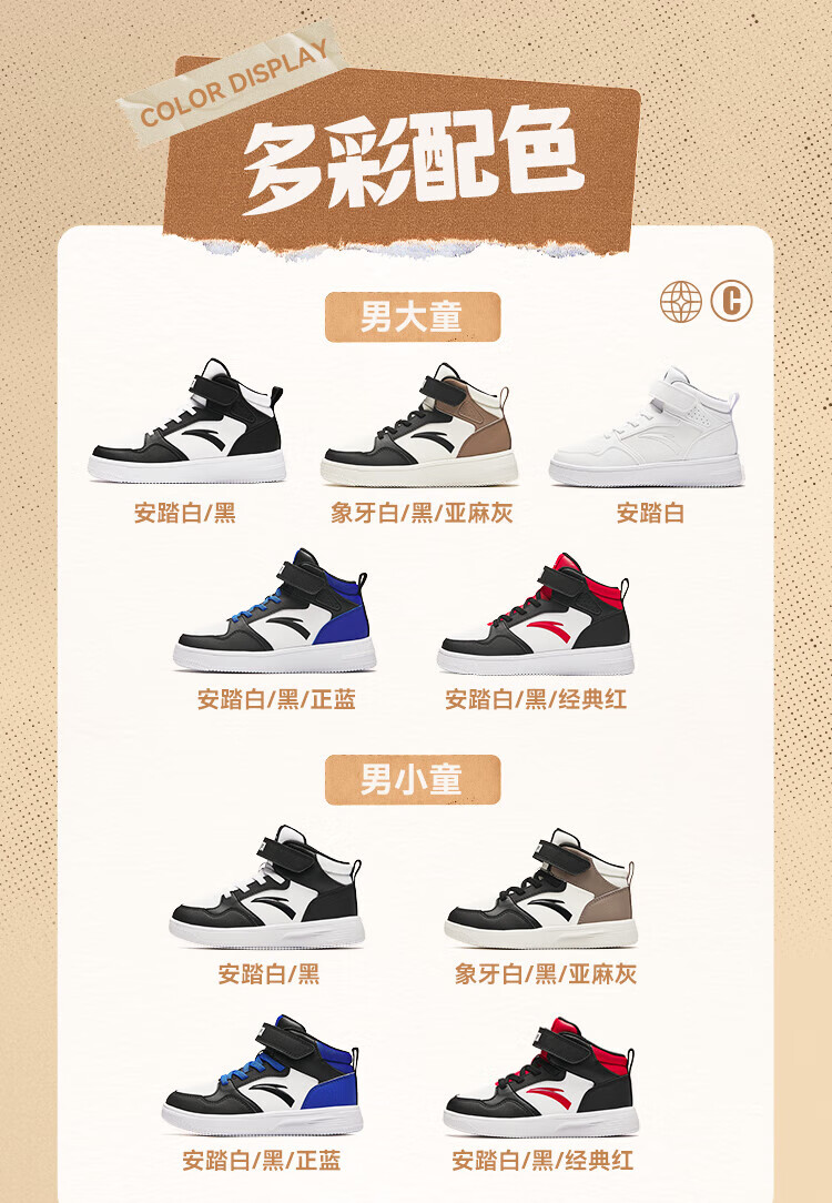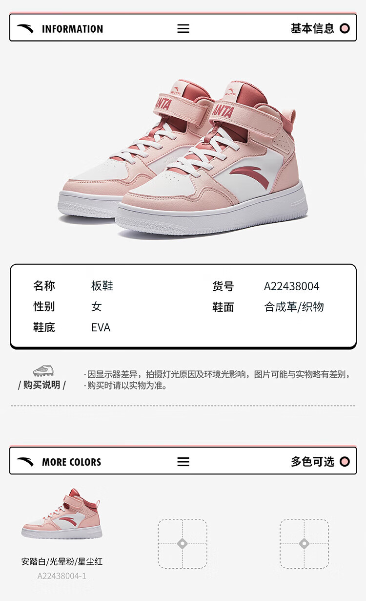 Anta children's sports shoes for boys and girls lifestyle series Velcro high-top white shoes sneakers A12438004