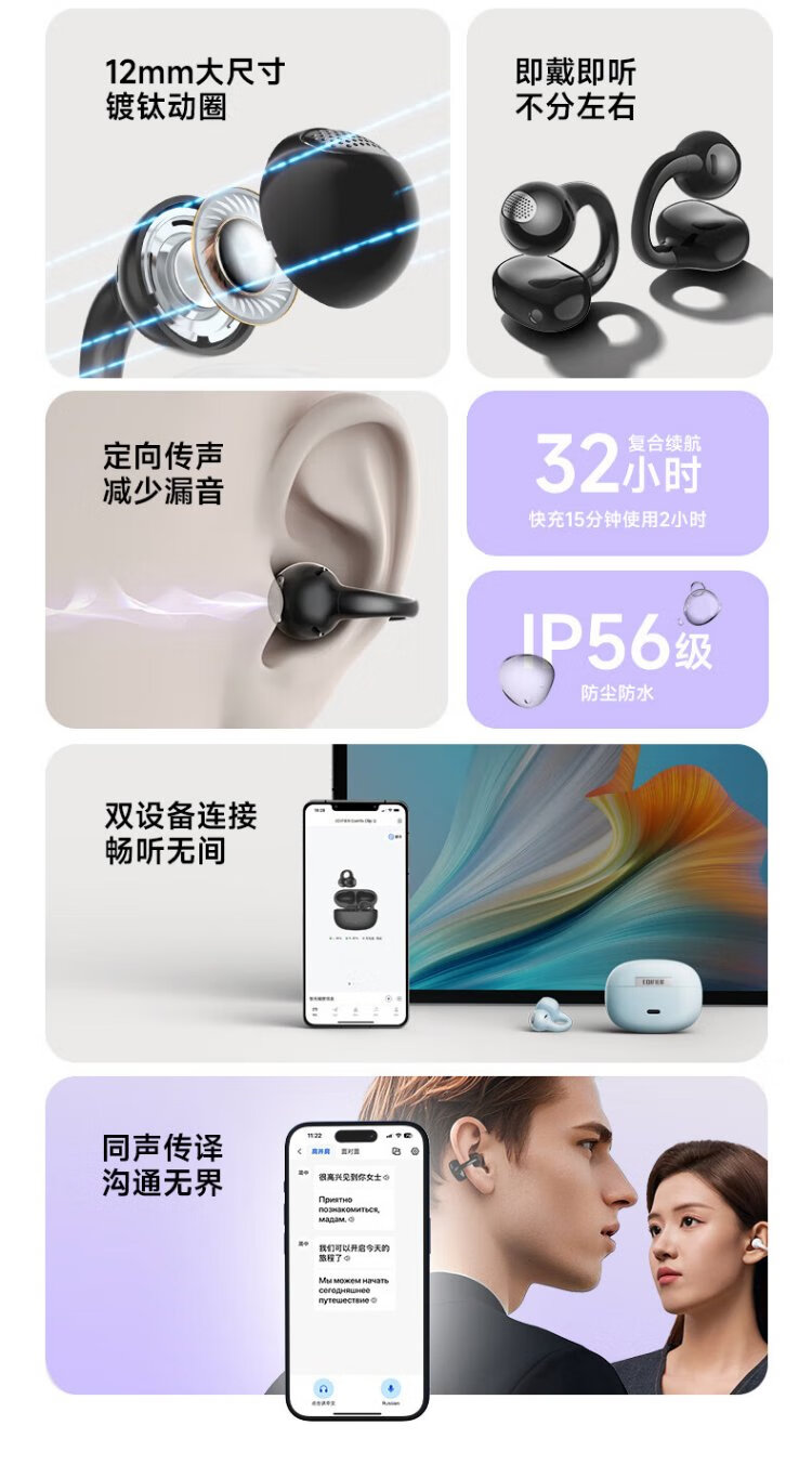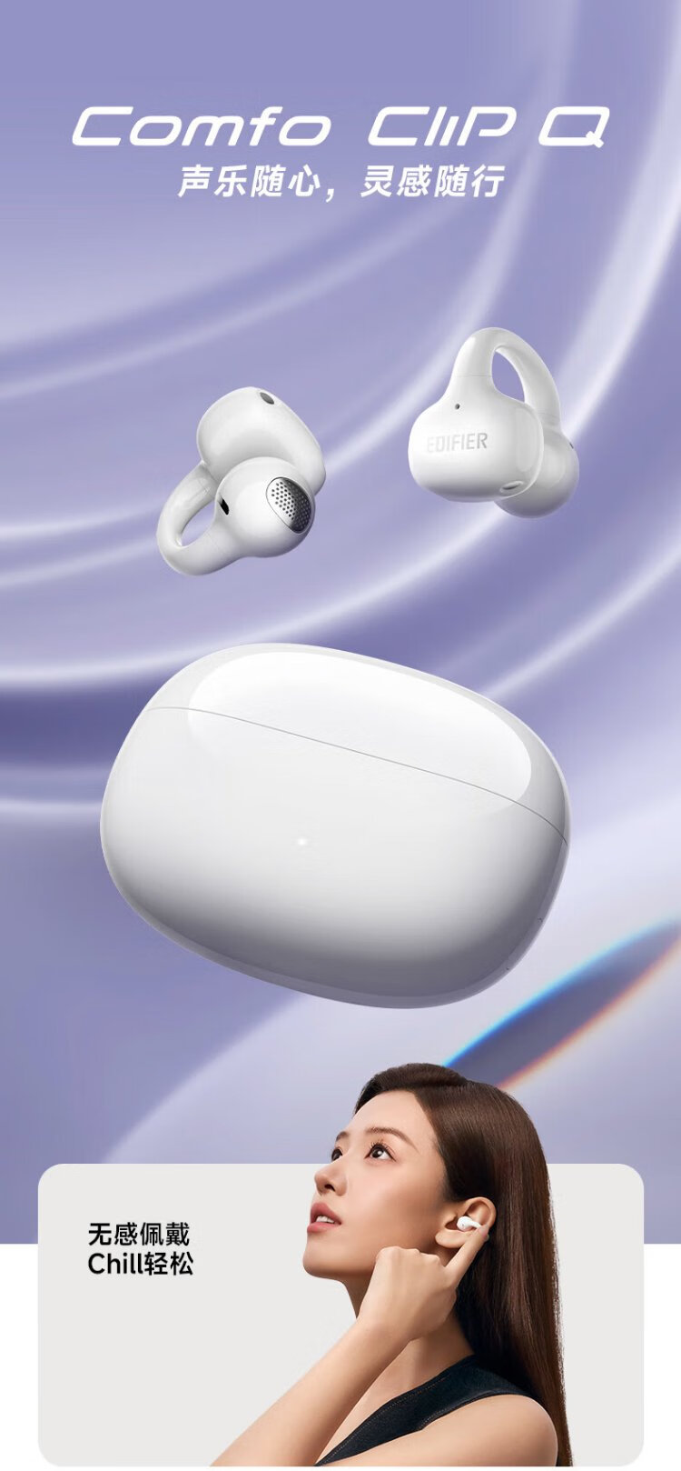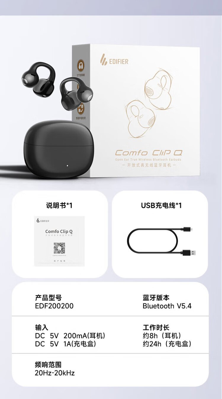 Edifier (EDIFIER) Comfo Clip Q qq ear clip Bluetooth headset, open, simultaneous interpretation, suitable for Apple, Huawei, Xiaomi OPPO mobile phones, cream white