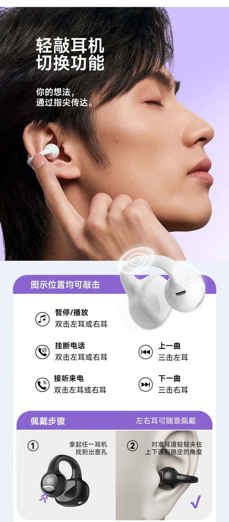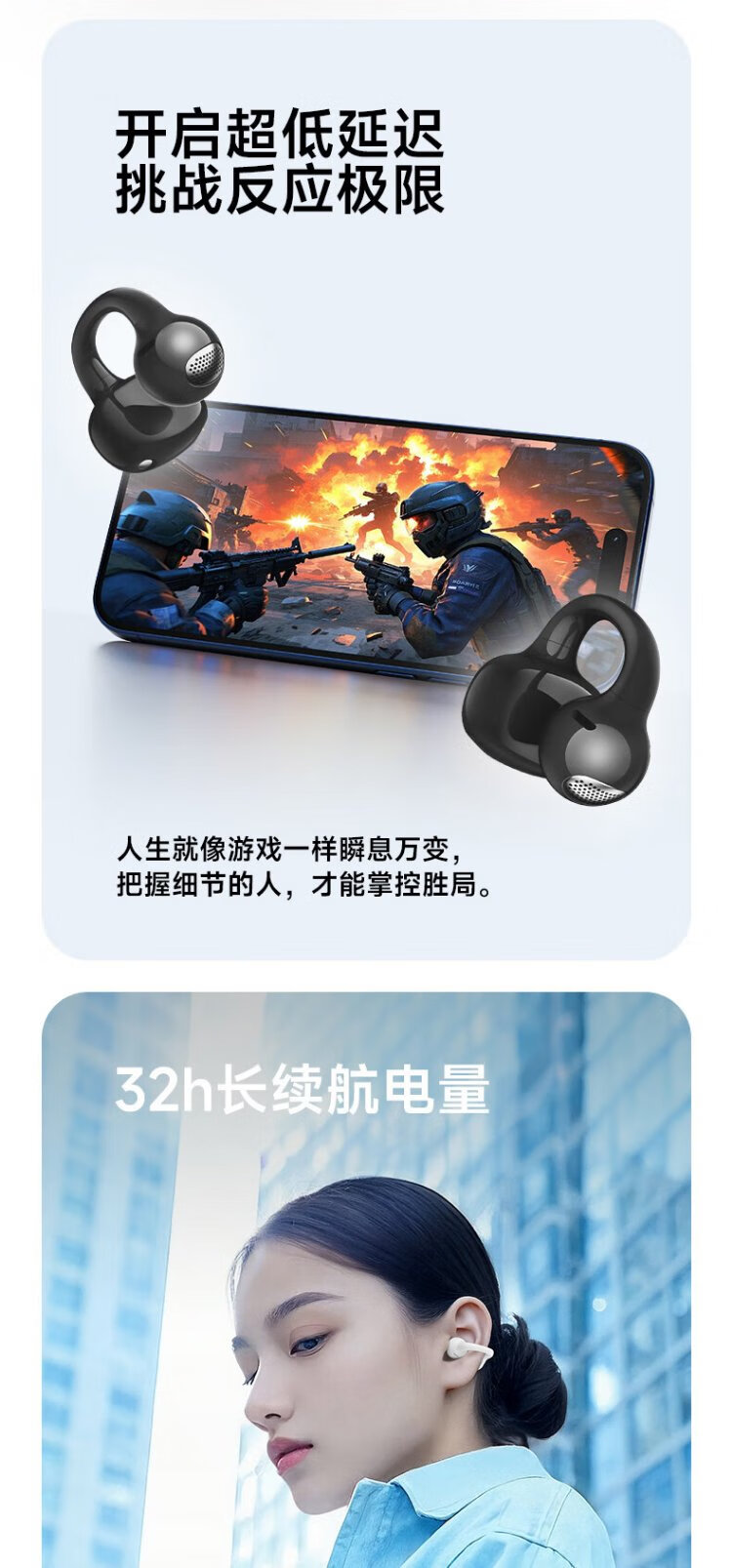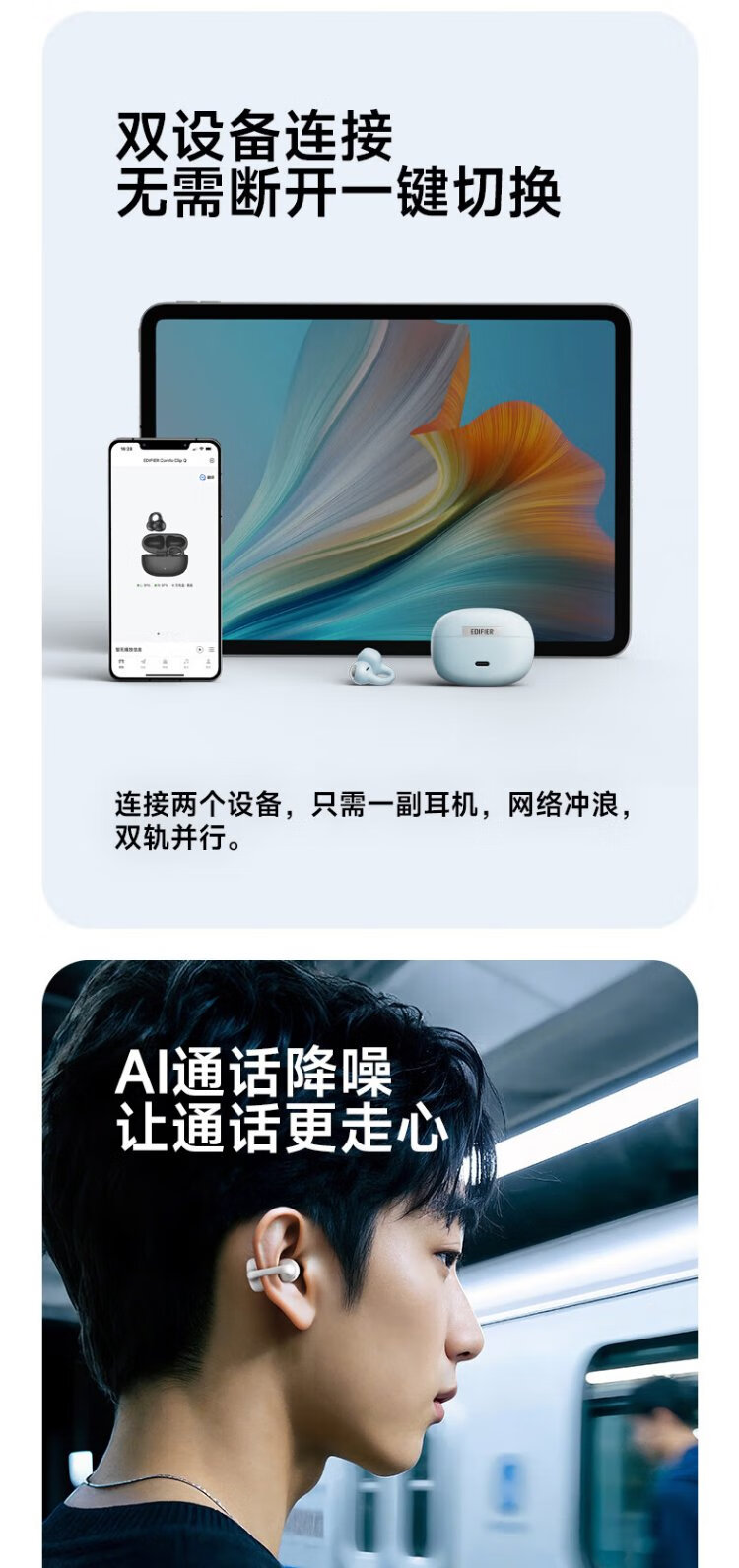 Edifier (EDIFIER) Comfo Clip Q qq ear clip Bluetooth headset, open, simultaneous interpretation, suitable for Apple, Huawei, Xiaomi OPPO mobile phones, cream white