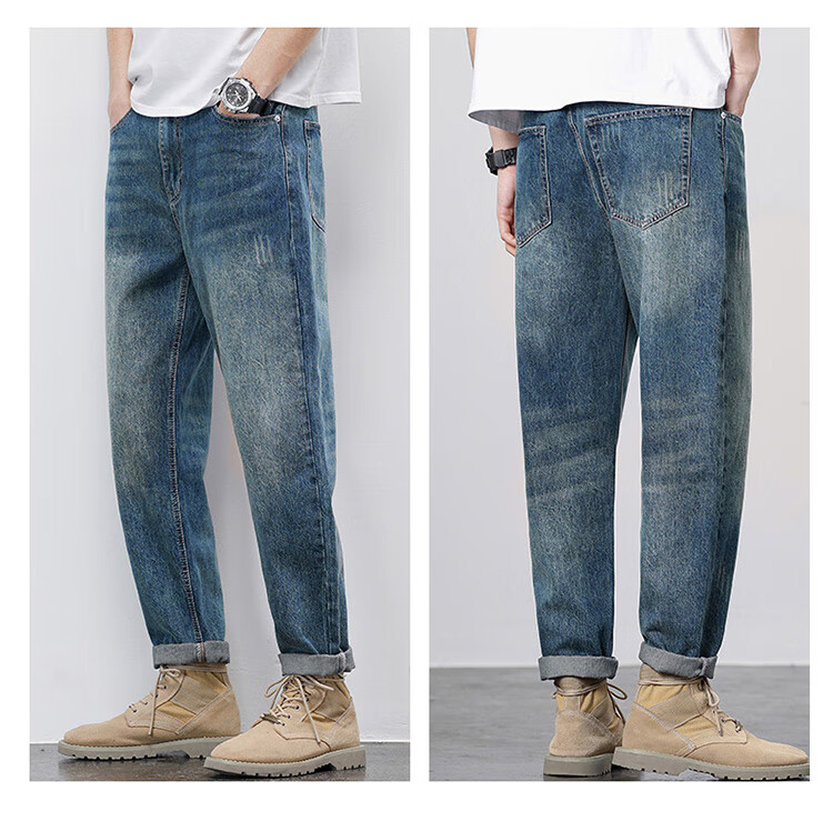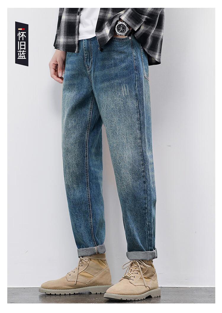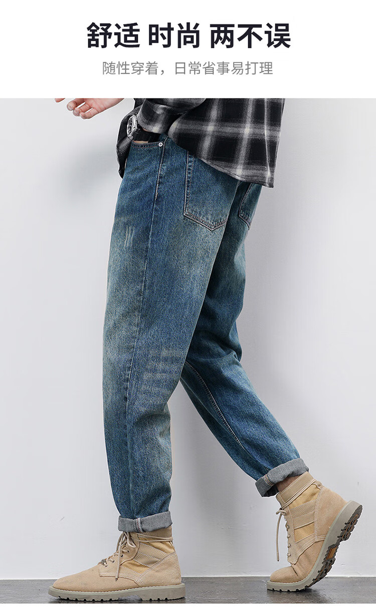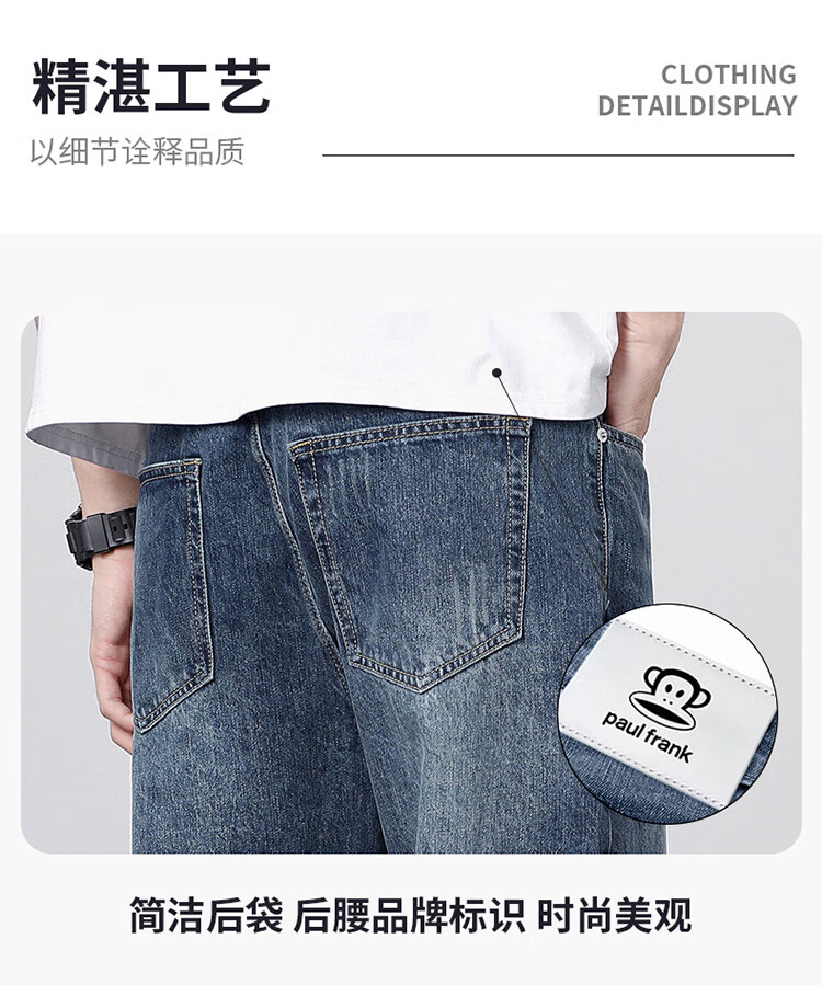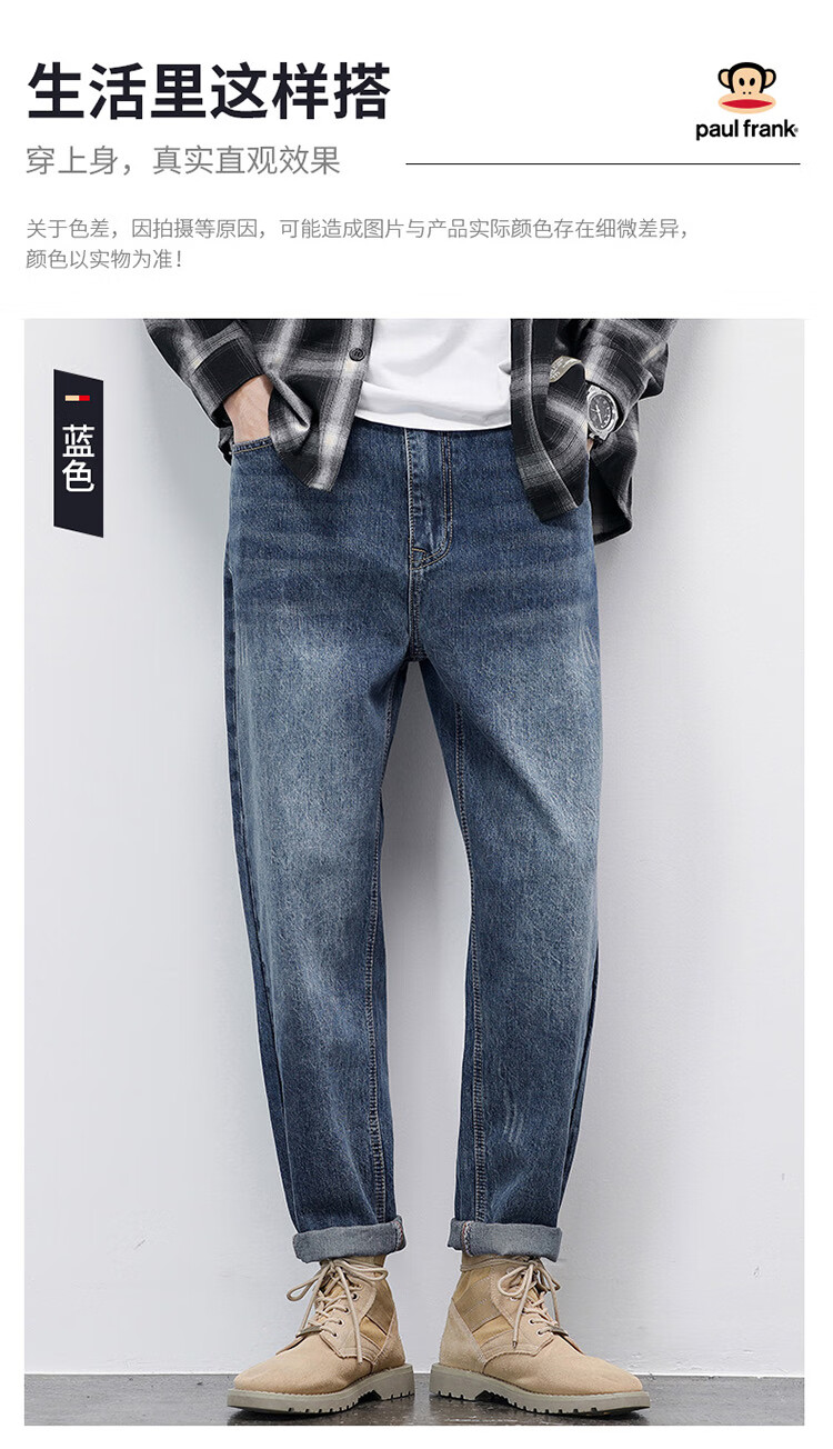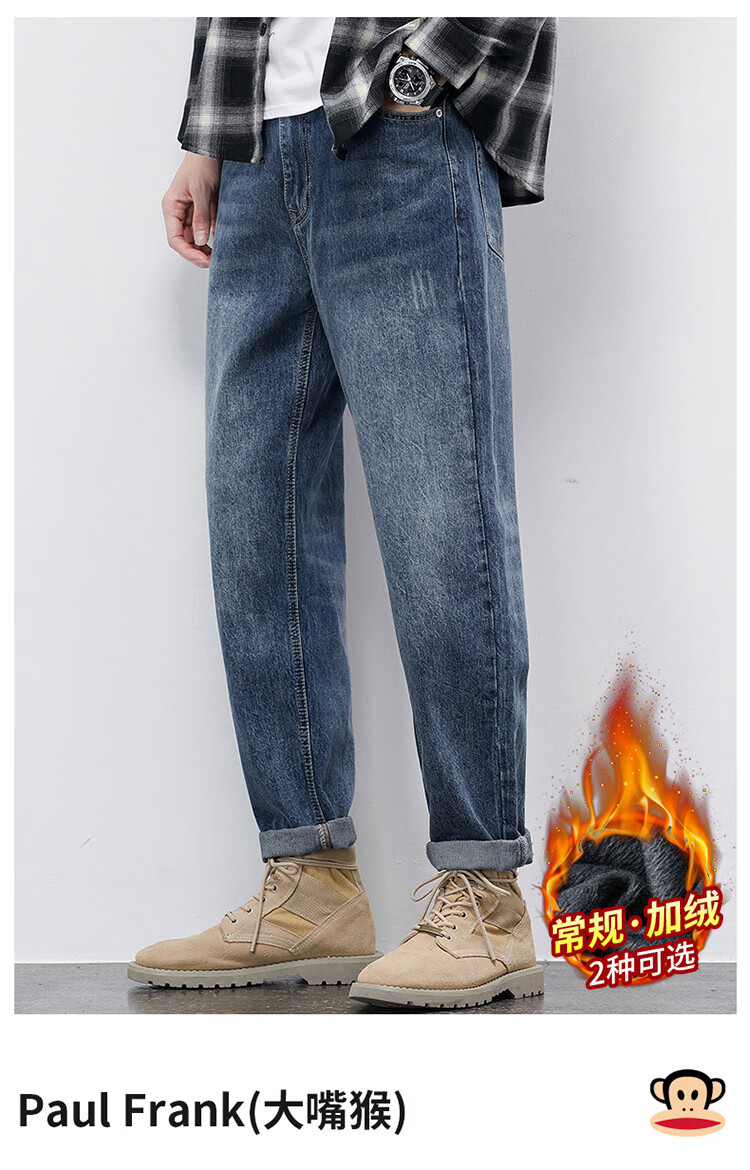 Paul Frank Jeans Men's Autumn and Winter Pants Men's American Retro Trendy Casual Pants Men's Slim Pants Blue 32