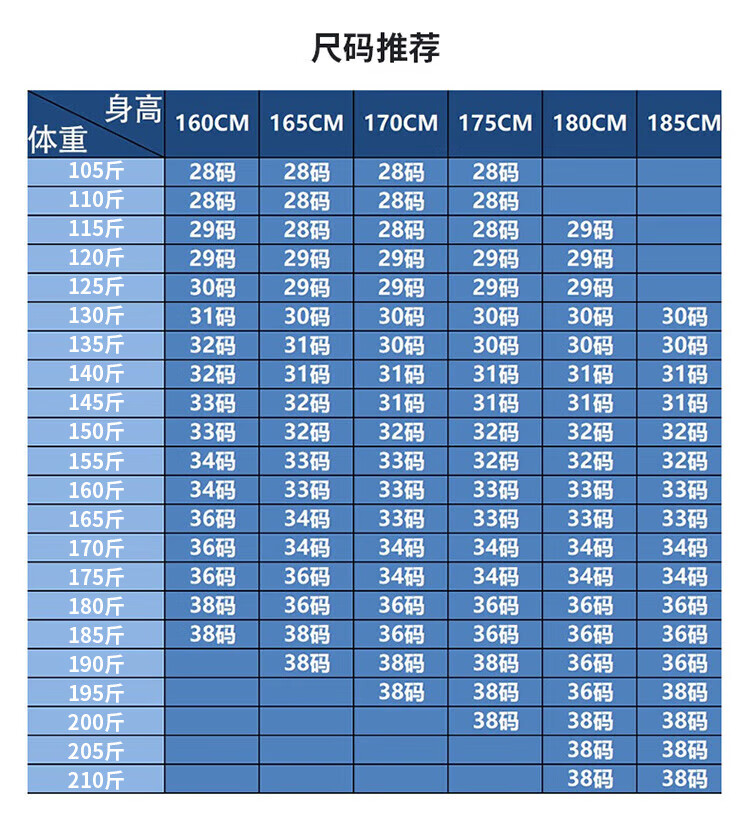 USA(inch) 28-30 30-32 32-34 34-38 38-42