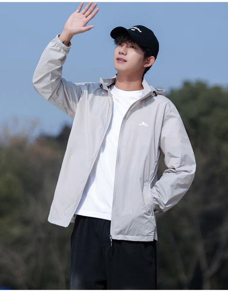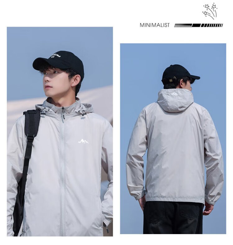 Pull back sun protection clothing for men in summer, ice silk quick-drying skin clothing for men, outdoor fishing clothing, light jackets for men, light gray XL