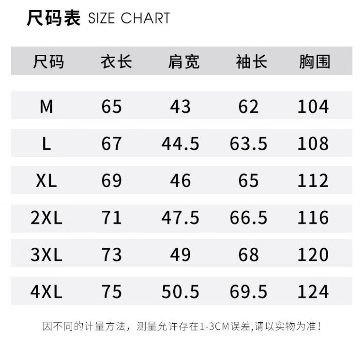 China (cm) 165 / 88-90 170 / 96-98 175 / 108-110 180 / 118-122 185 / 126-130