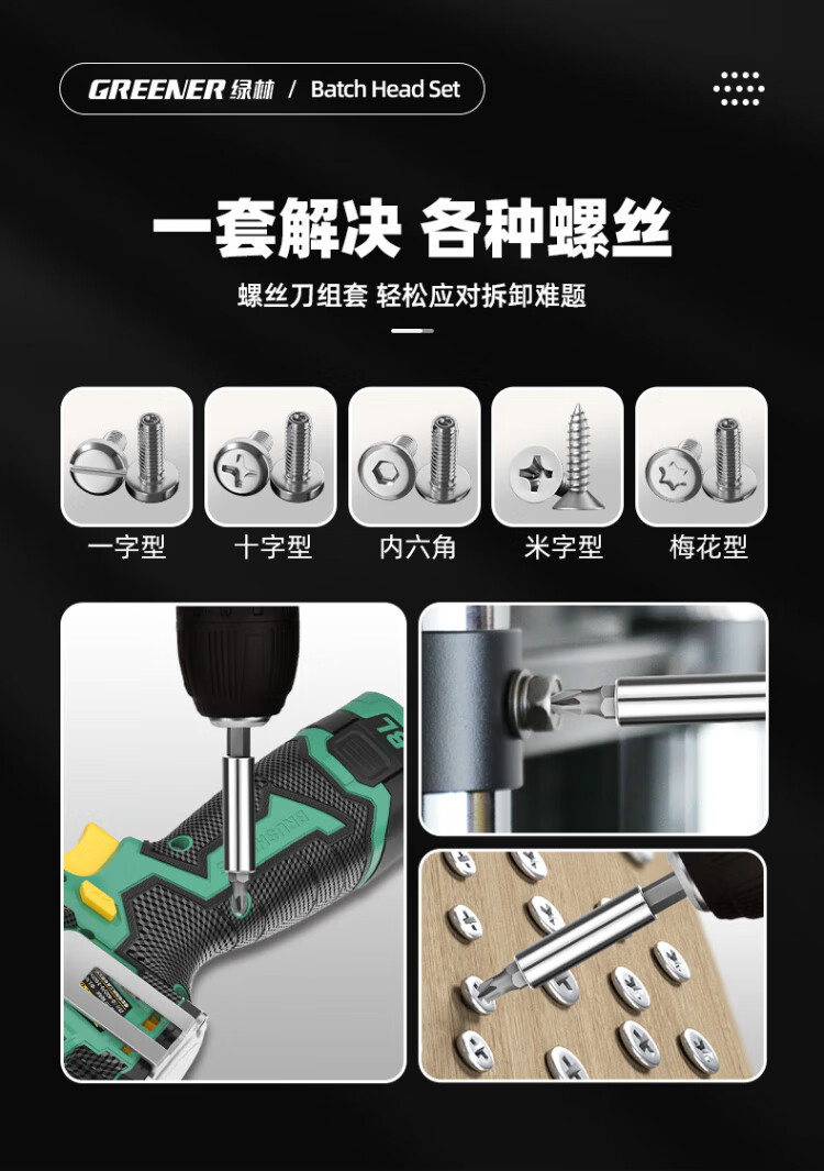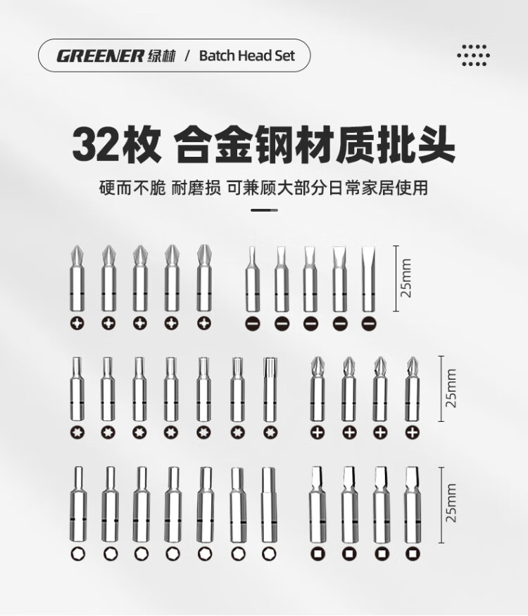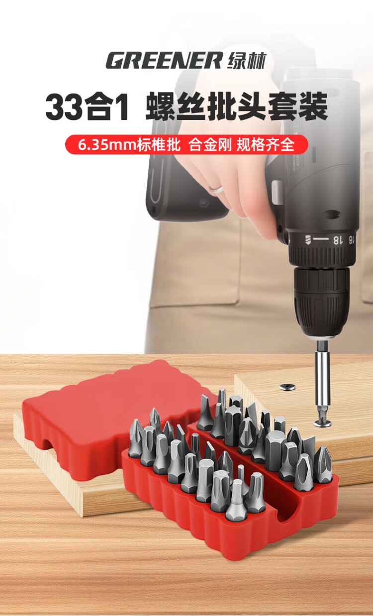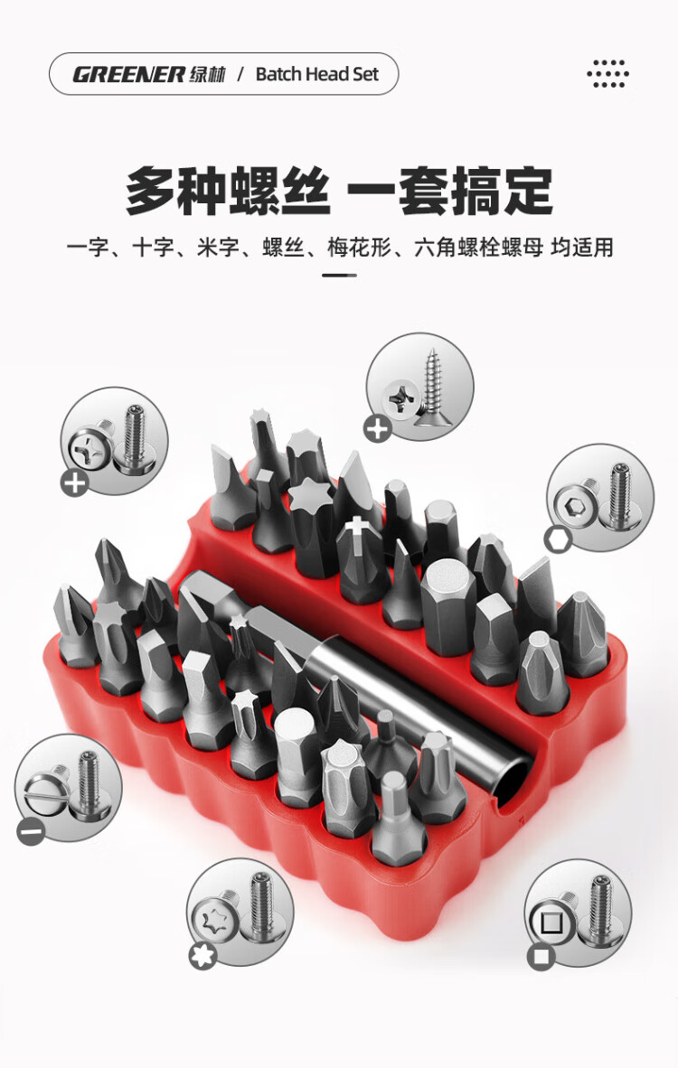 GREENER 33pc bit set cross super-hard household hexagonal plum blossom electric screwdriver high hardness anti-slip