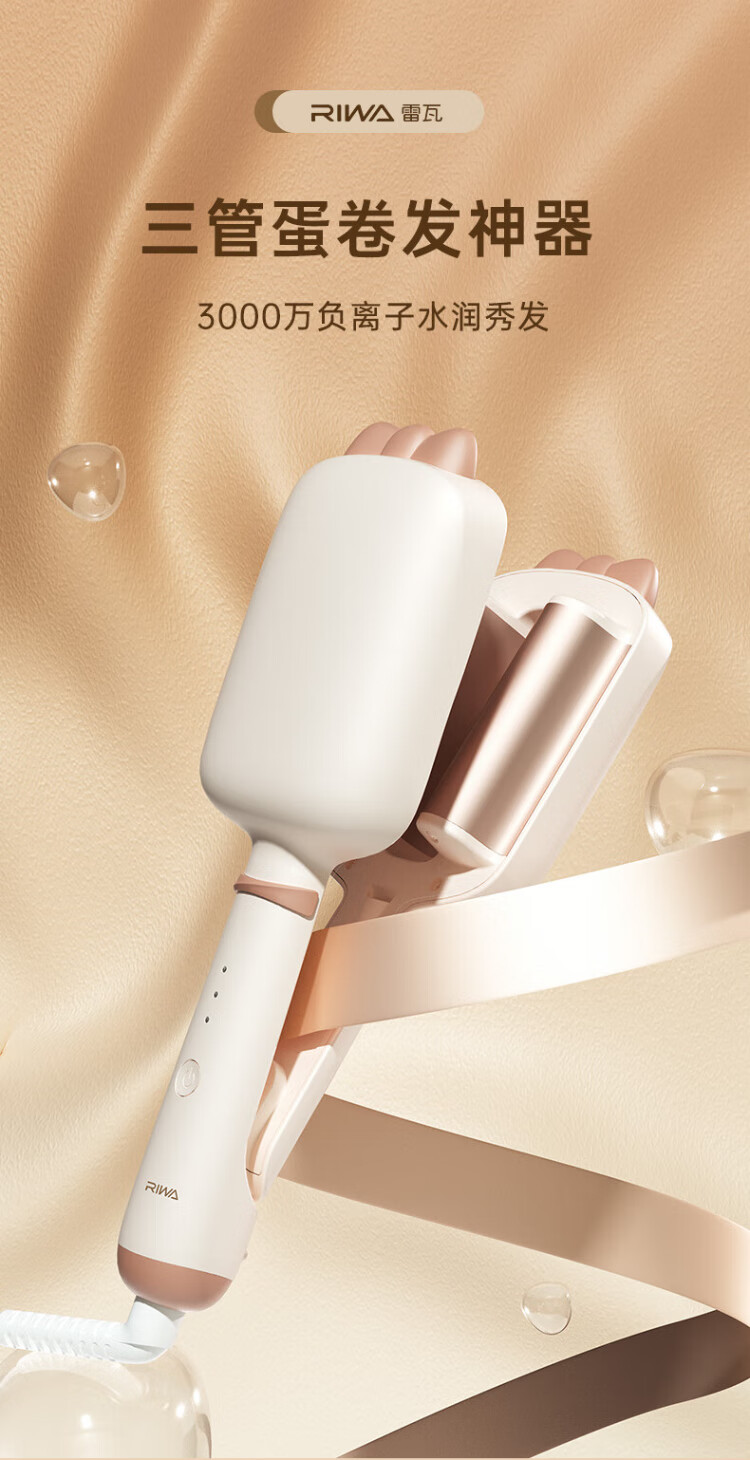 Rewa egg roll curling iron three-tube egg roll iron deep V egg roll clip 32MM negative ion French egg roll head high skull fluffy artifact corn fluffy splint RB-8366