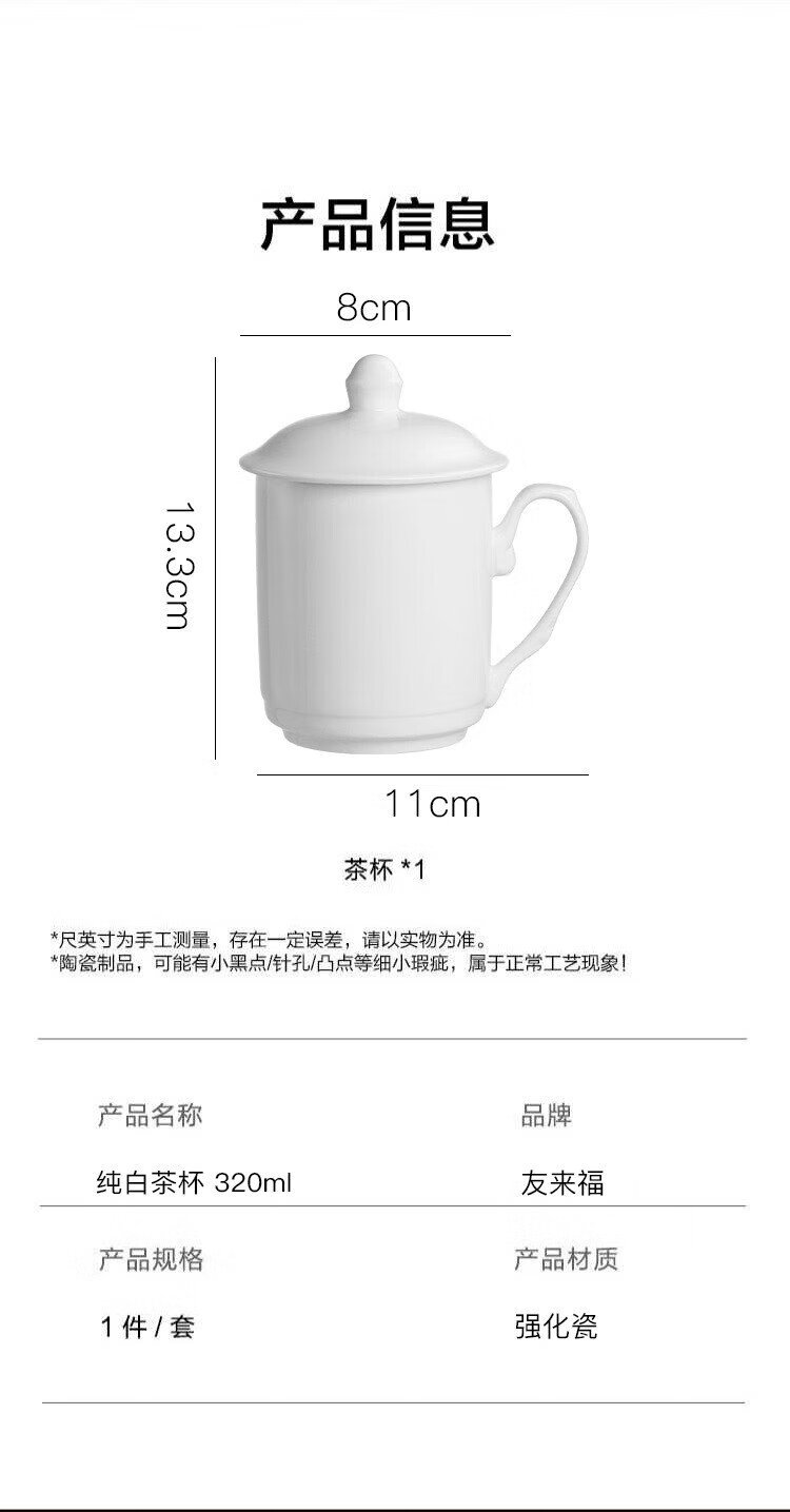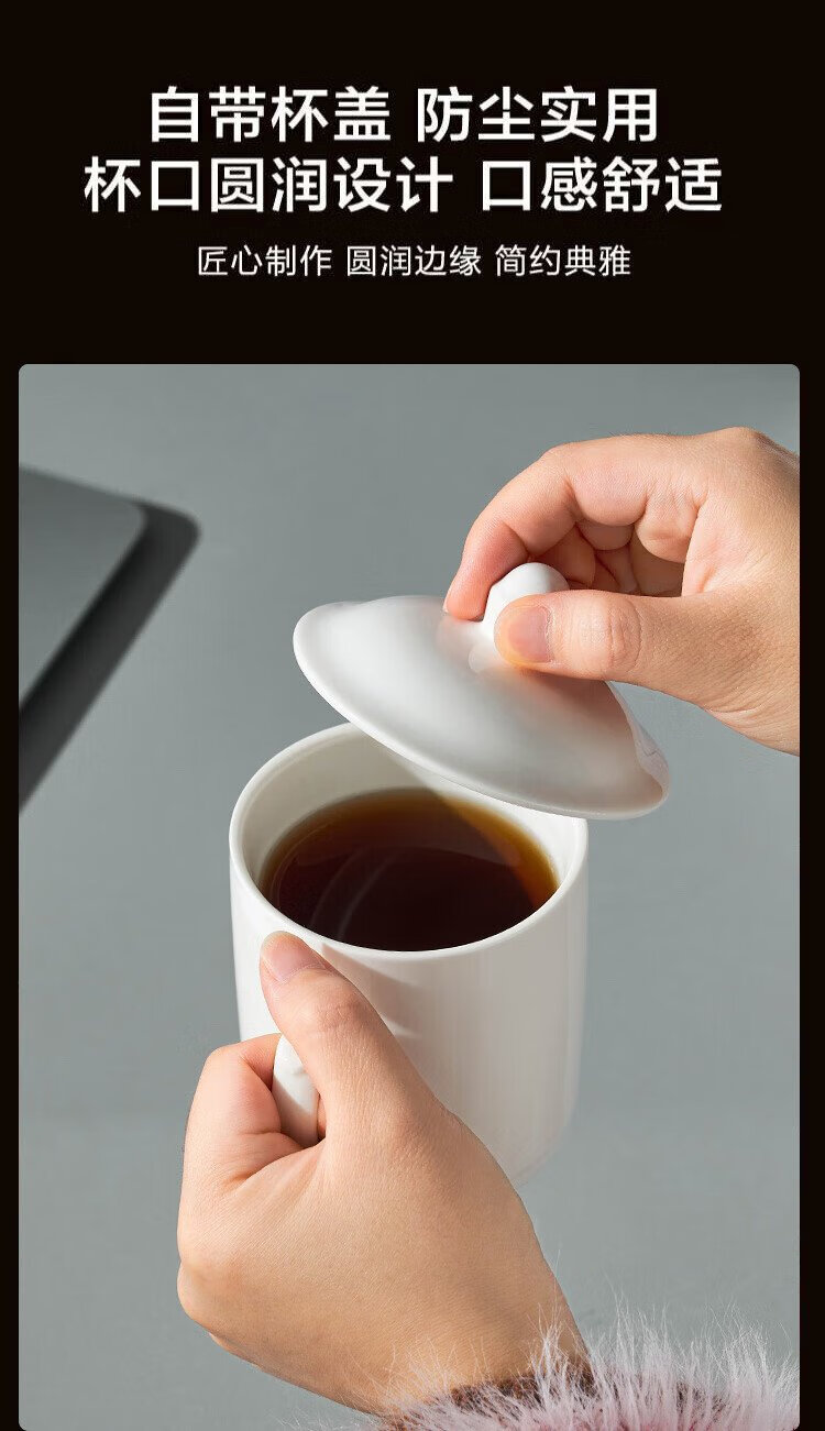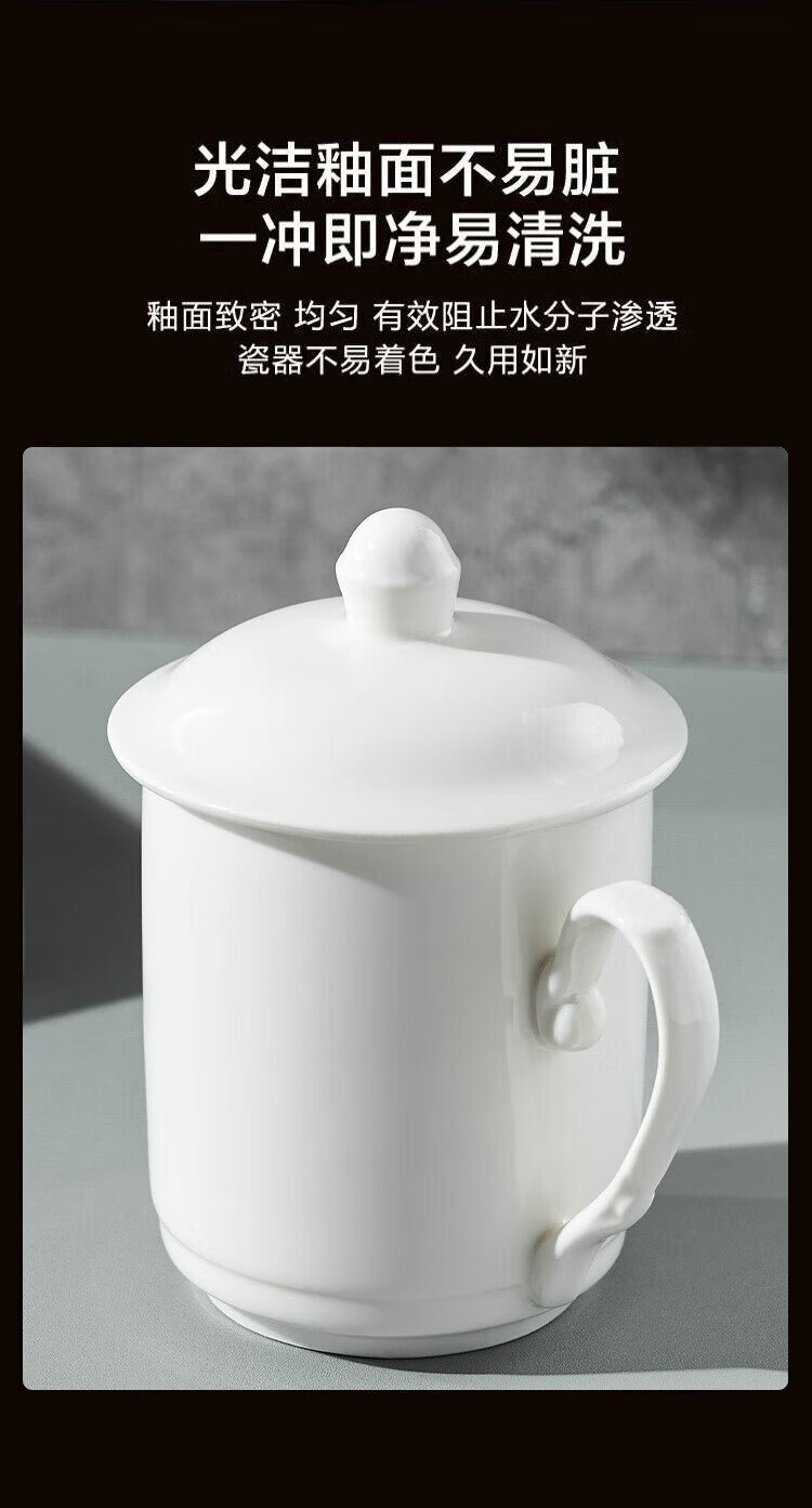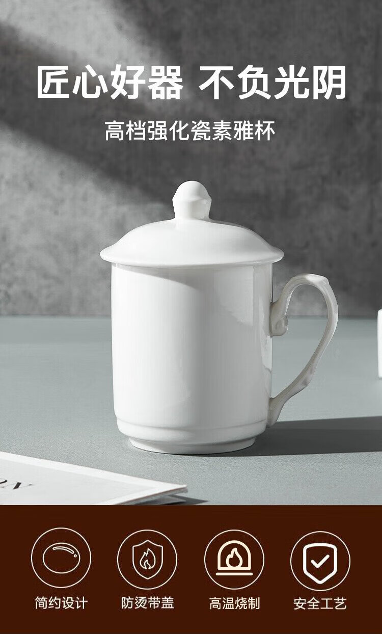 Youlaifu tea cup office cup ceramic cup with lid pure white conference cup business company meeting cup water cup