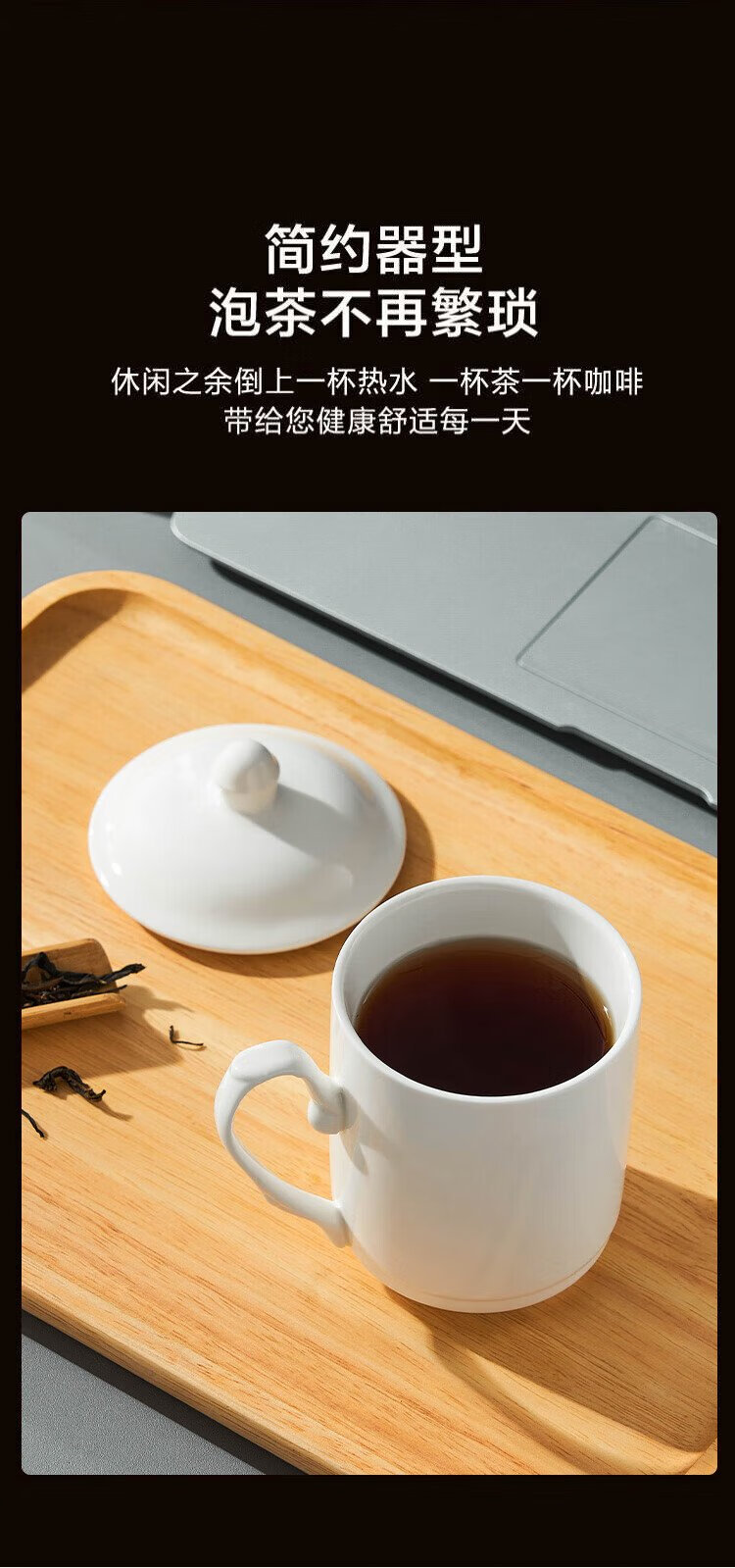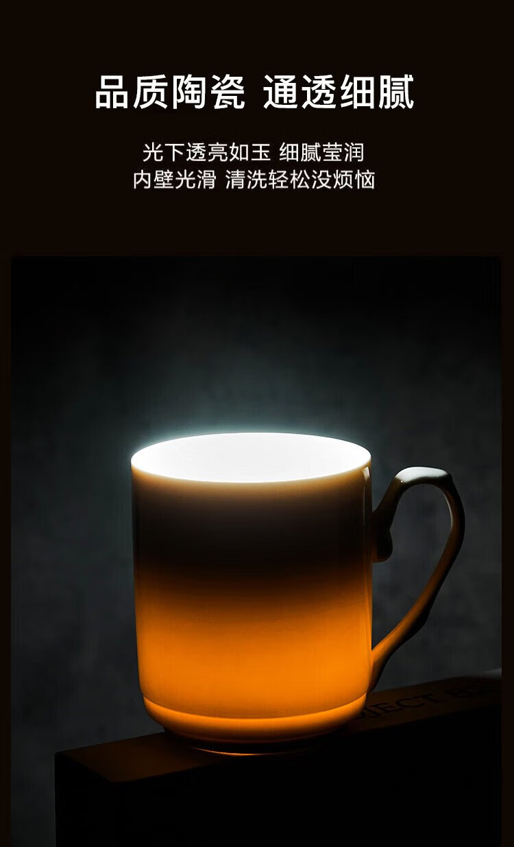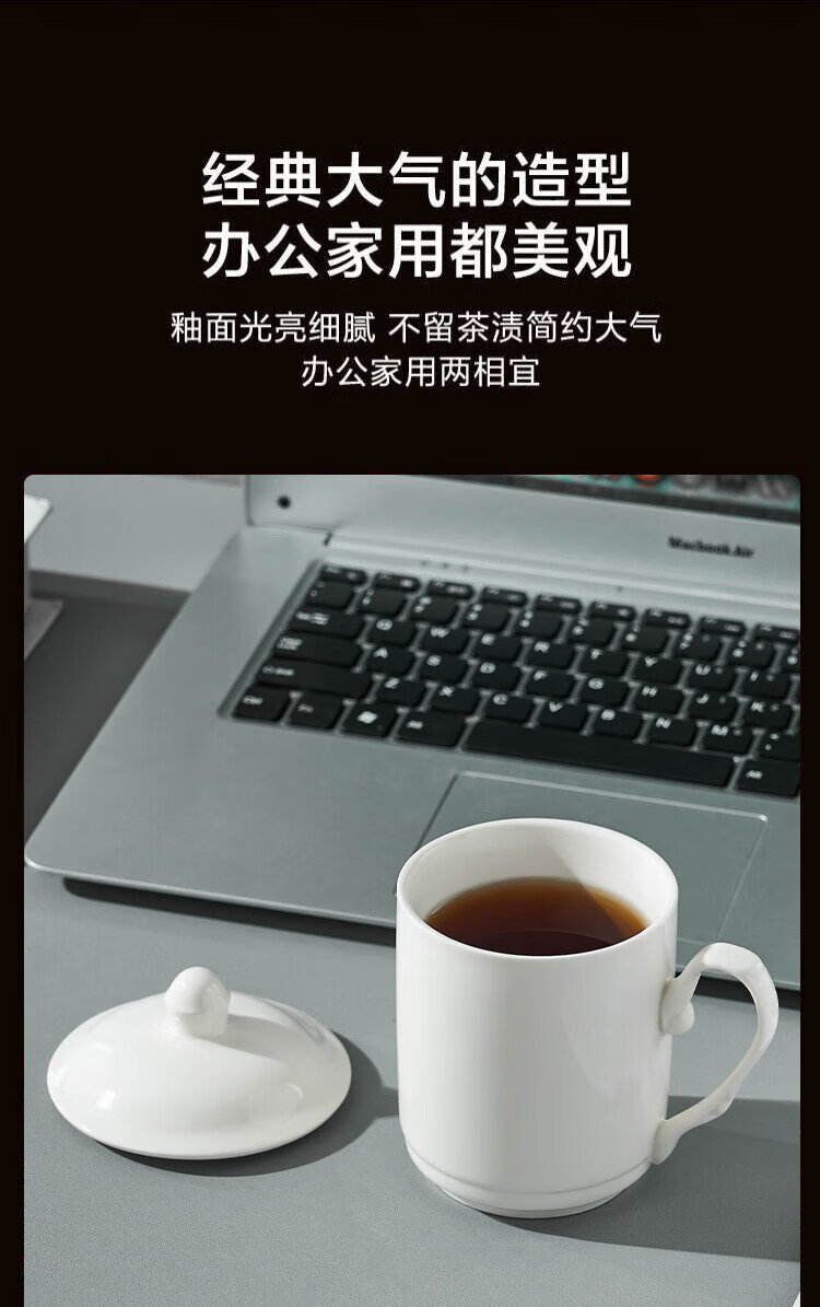 Youlaifu tea cup office cup ceramic cup with lid pure white conference cup business company meeting cup water cup