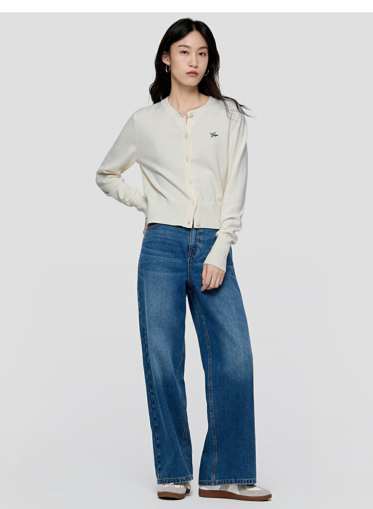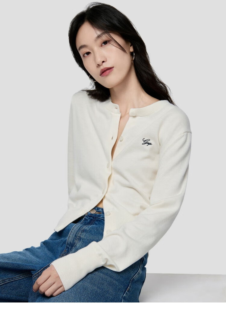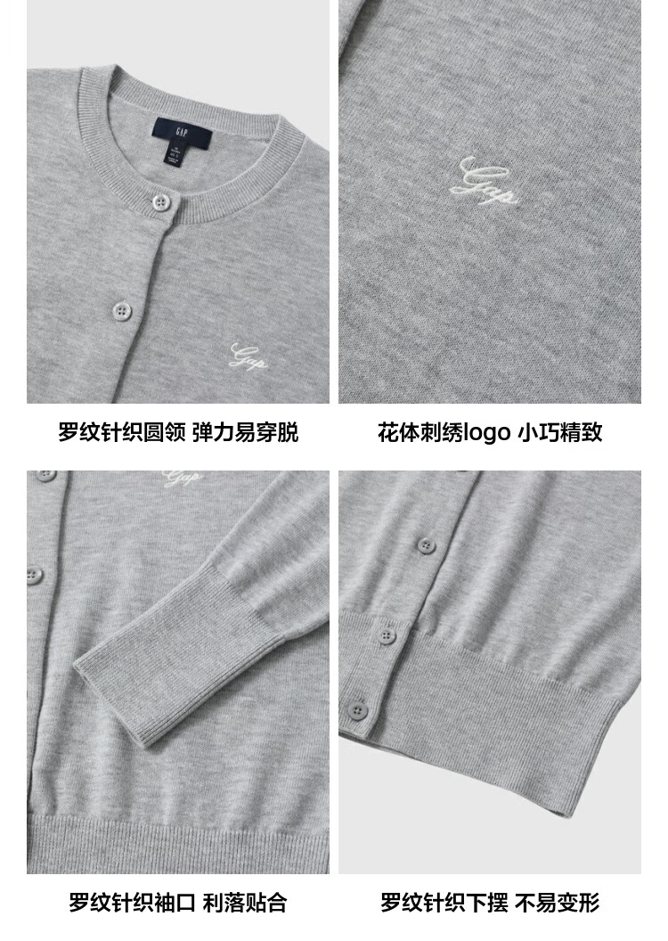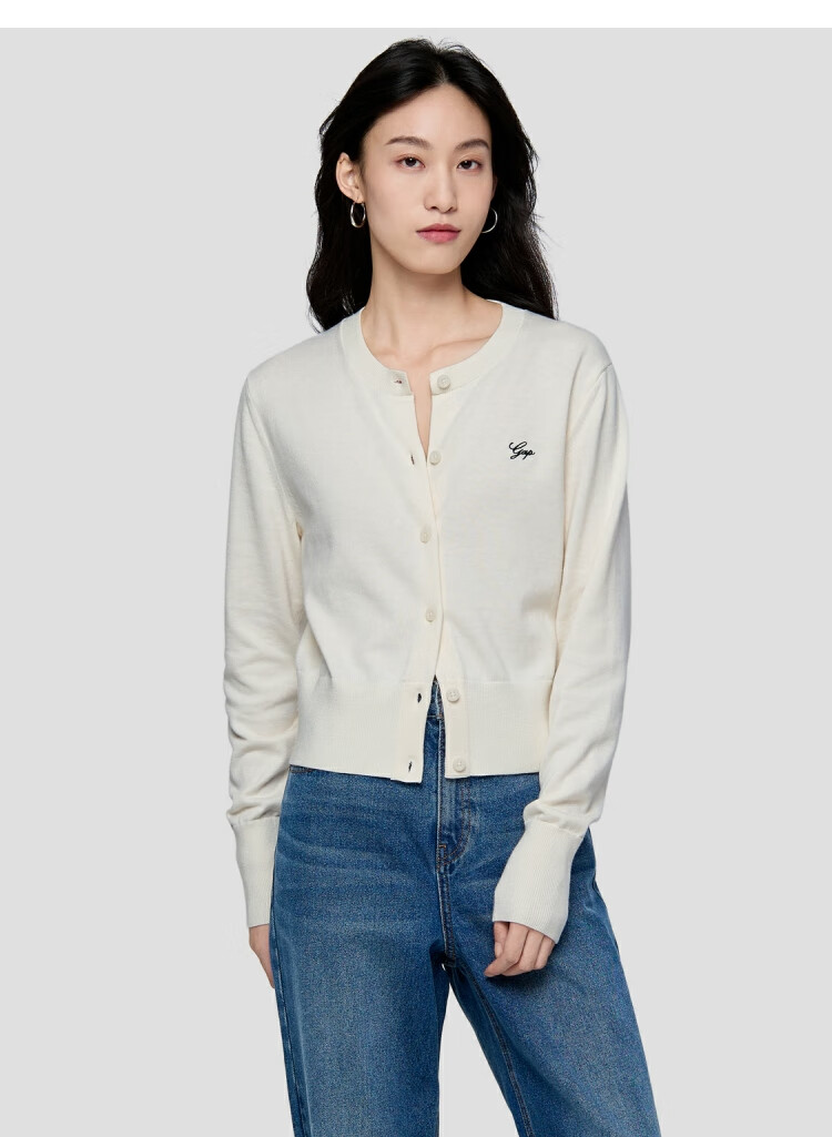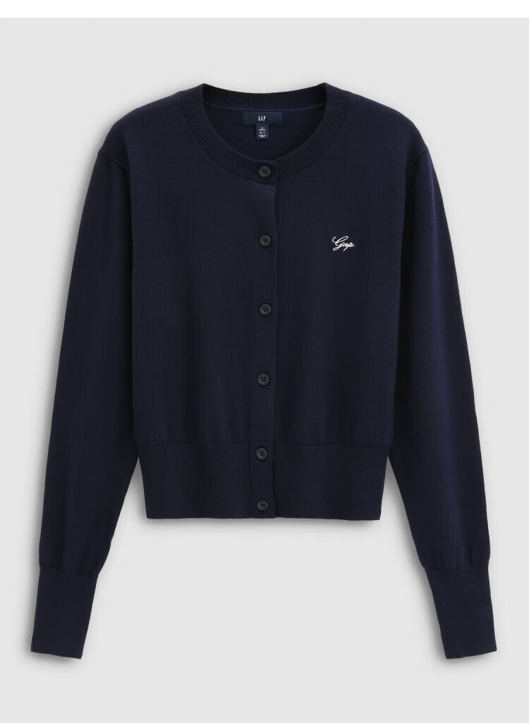 Gap Women's 2025 Autumn New Embroidered Logo Soft Fit Round Neck Cardigan Sweater Top 793646