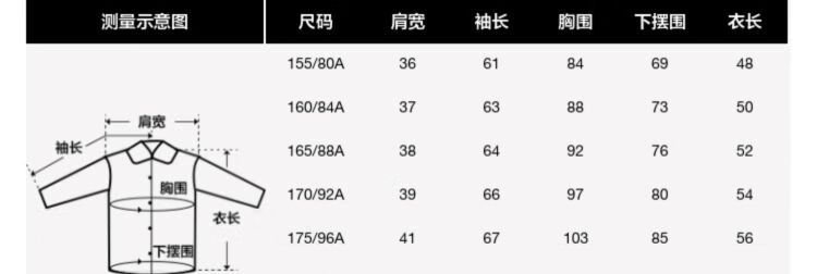 China (cm) 160-165/84-86 165-170 / 88-90 167-172 / 92-96 168-173 / 98-102 170-176 / 106-110