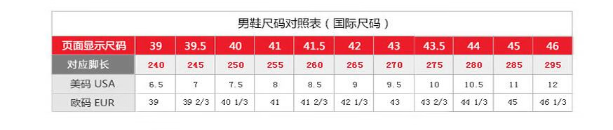 China (cm) 36 - 37 38 - 39 40 - 42 43 - 44 45 - 47