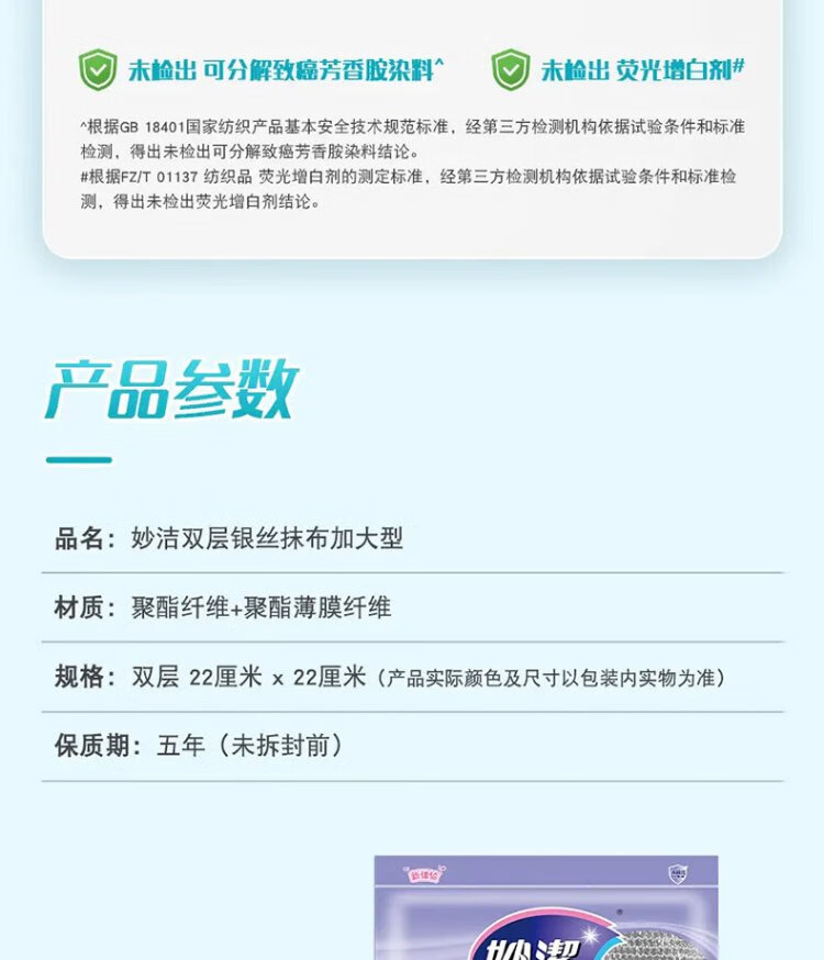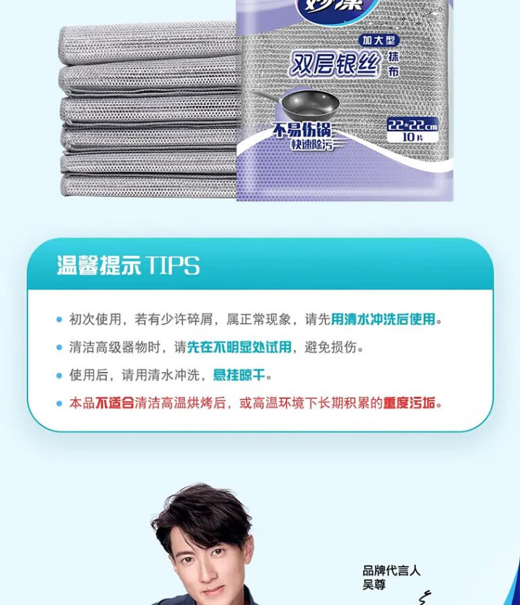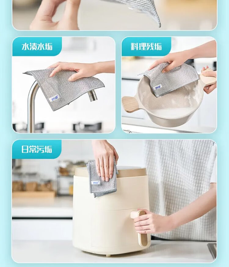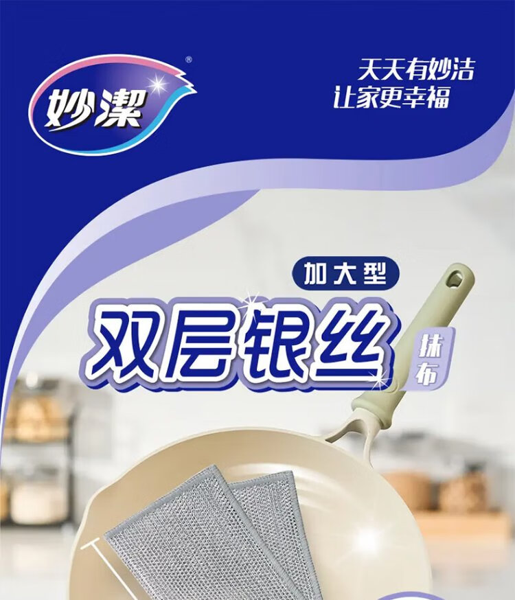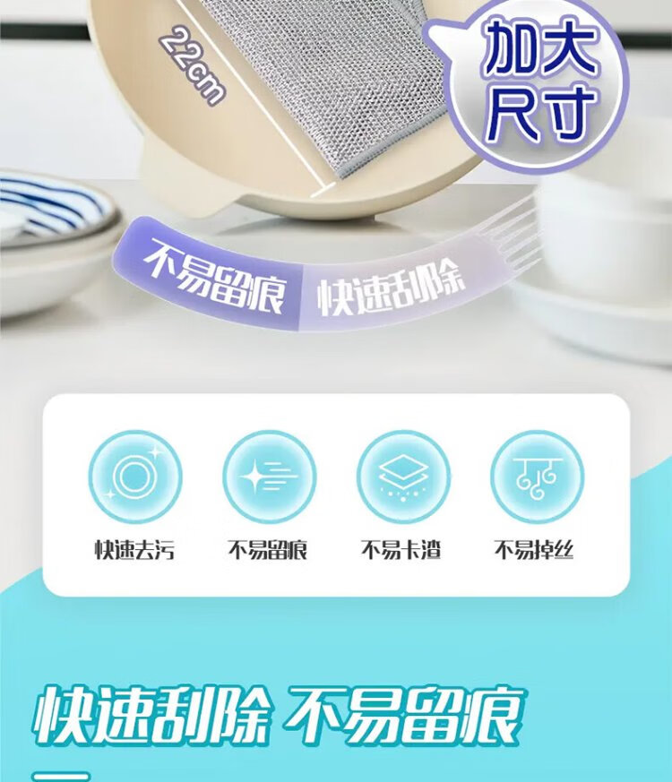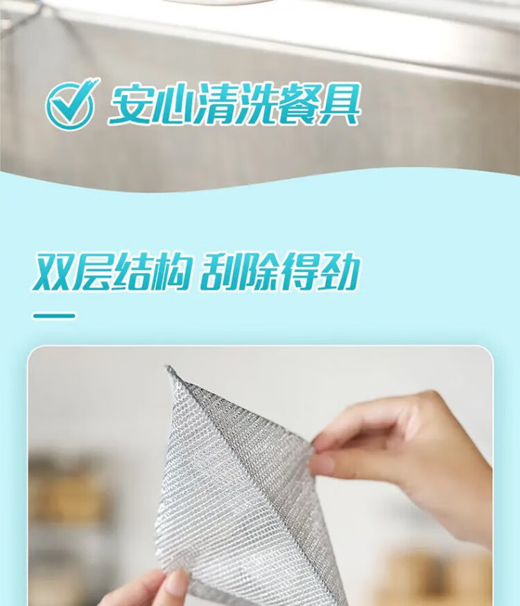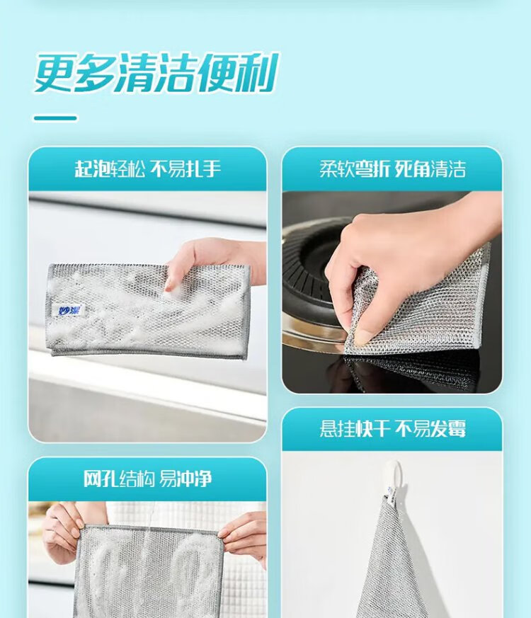 Miaojie double-layered silver wire rags, extra large, 22*22cm, 10 pieces, steel wire balls are not easy to damage the coating, brush pots and wash dishes