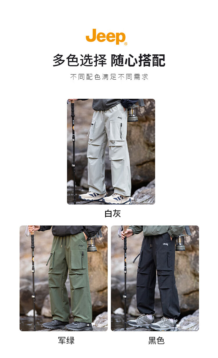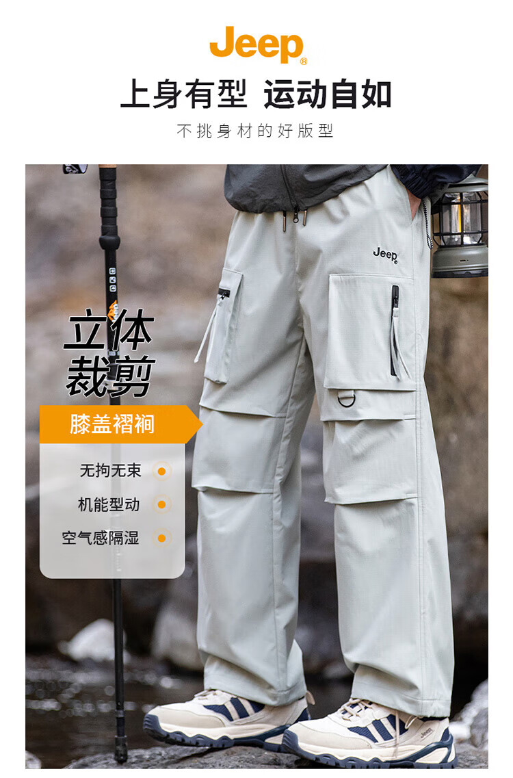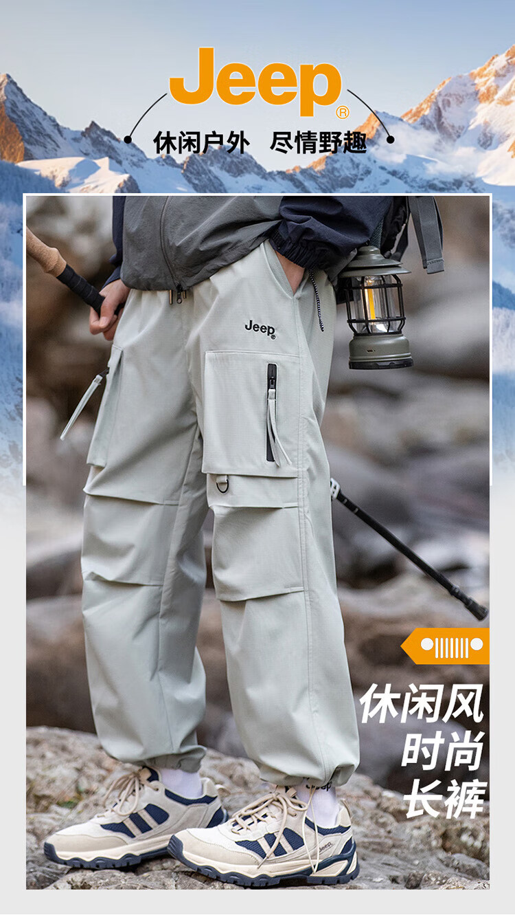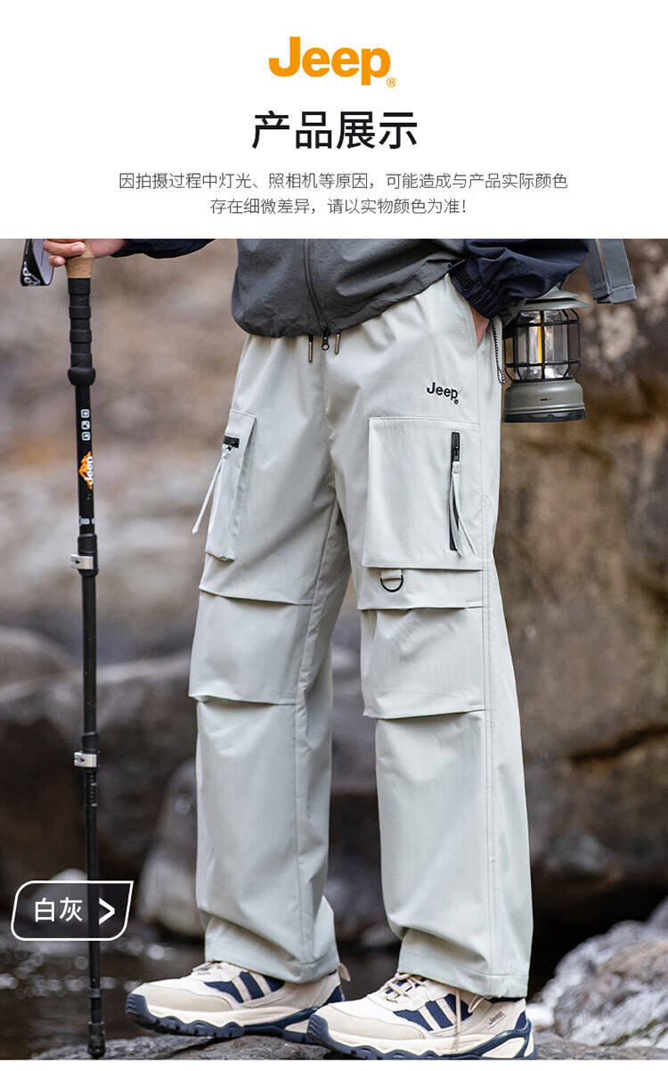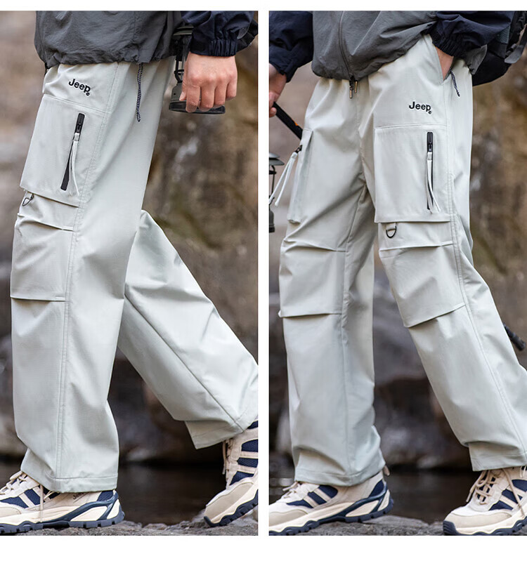 JEEP overalls men's autumn and winter American loose straight multi-pocket casual mountaineering sports pants white gray XL