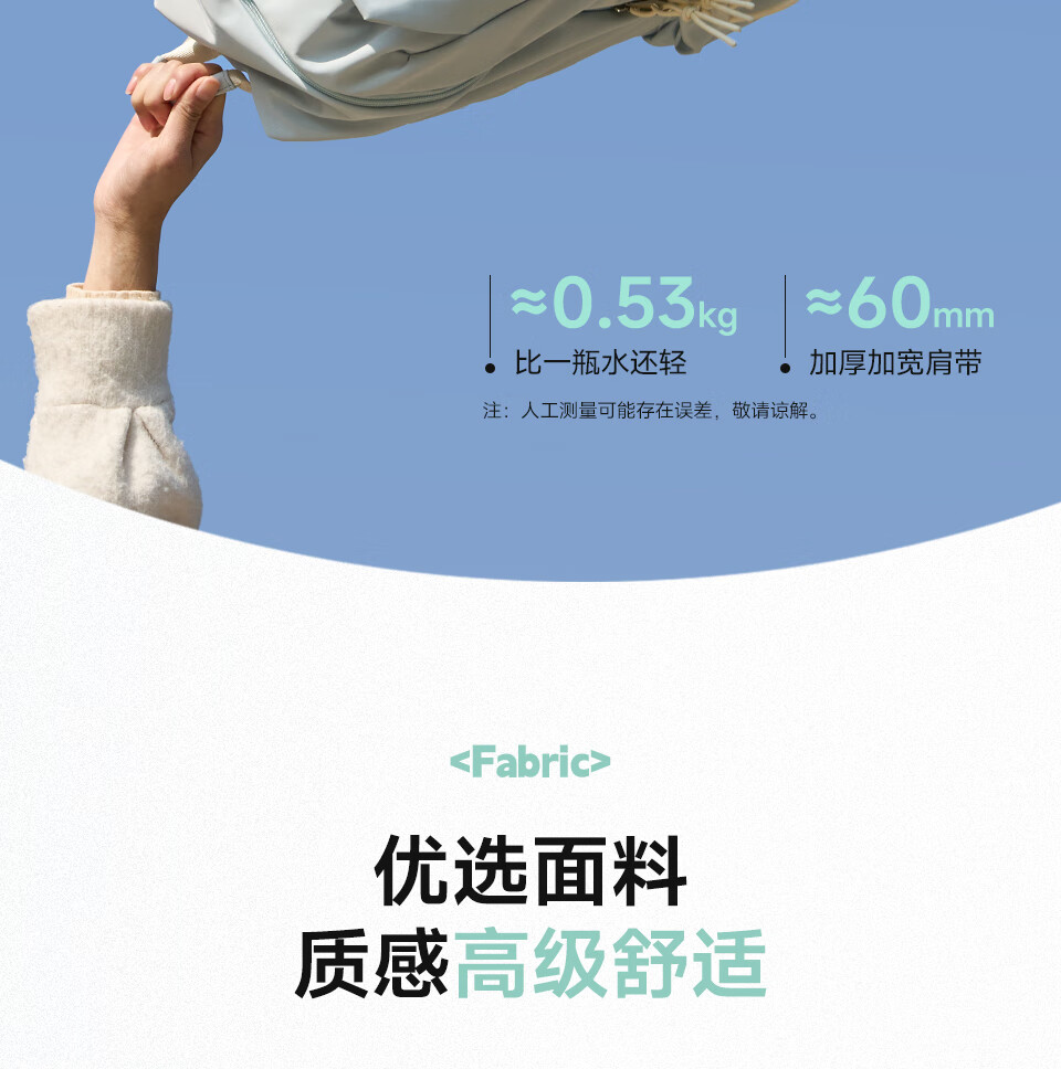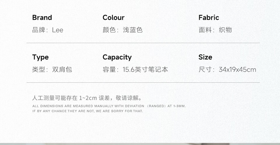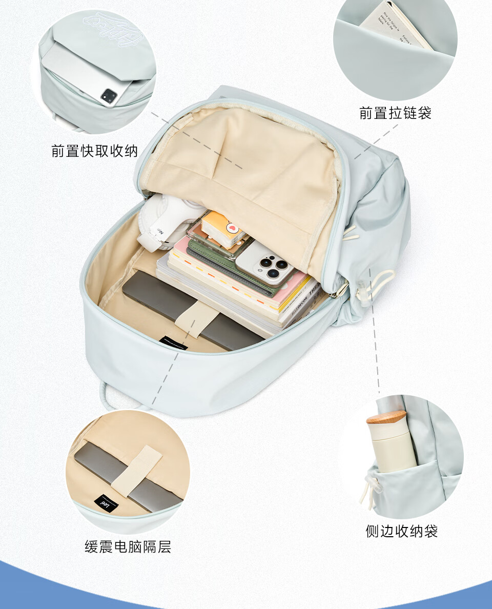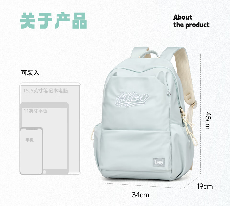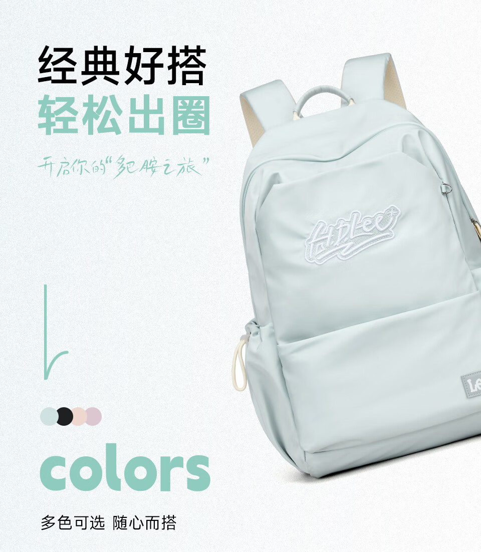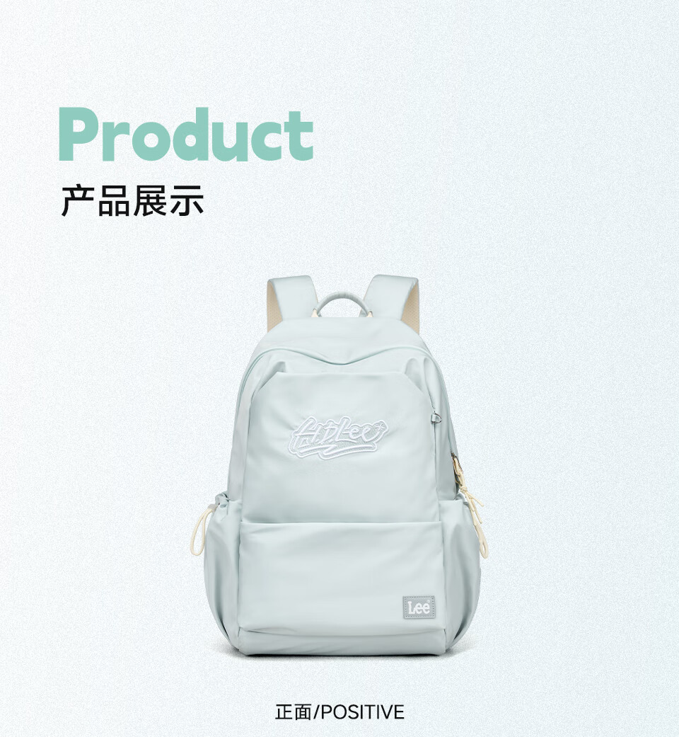 Lee's high-looking schoolbag for female junior high school students, large-capacity casual backpack, college student computer backpack, light blue