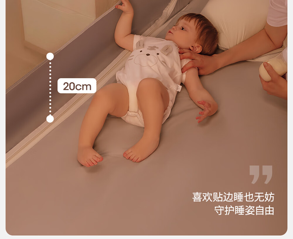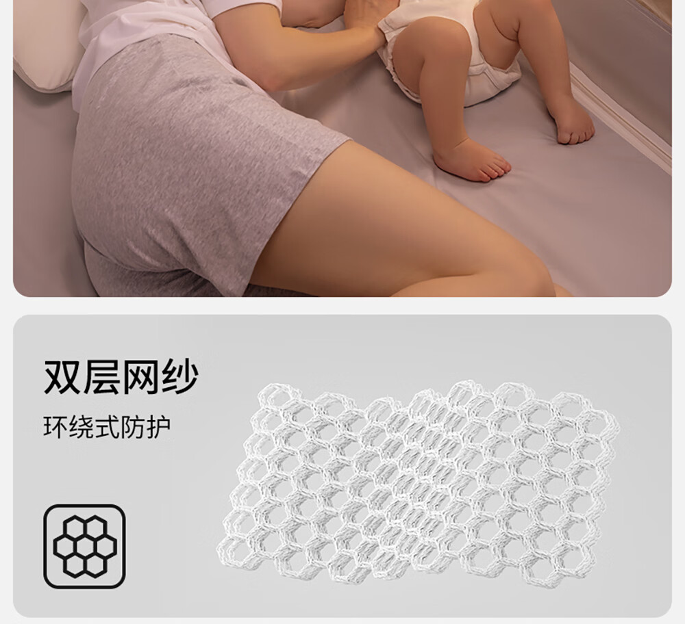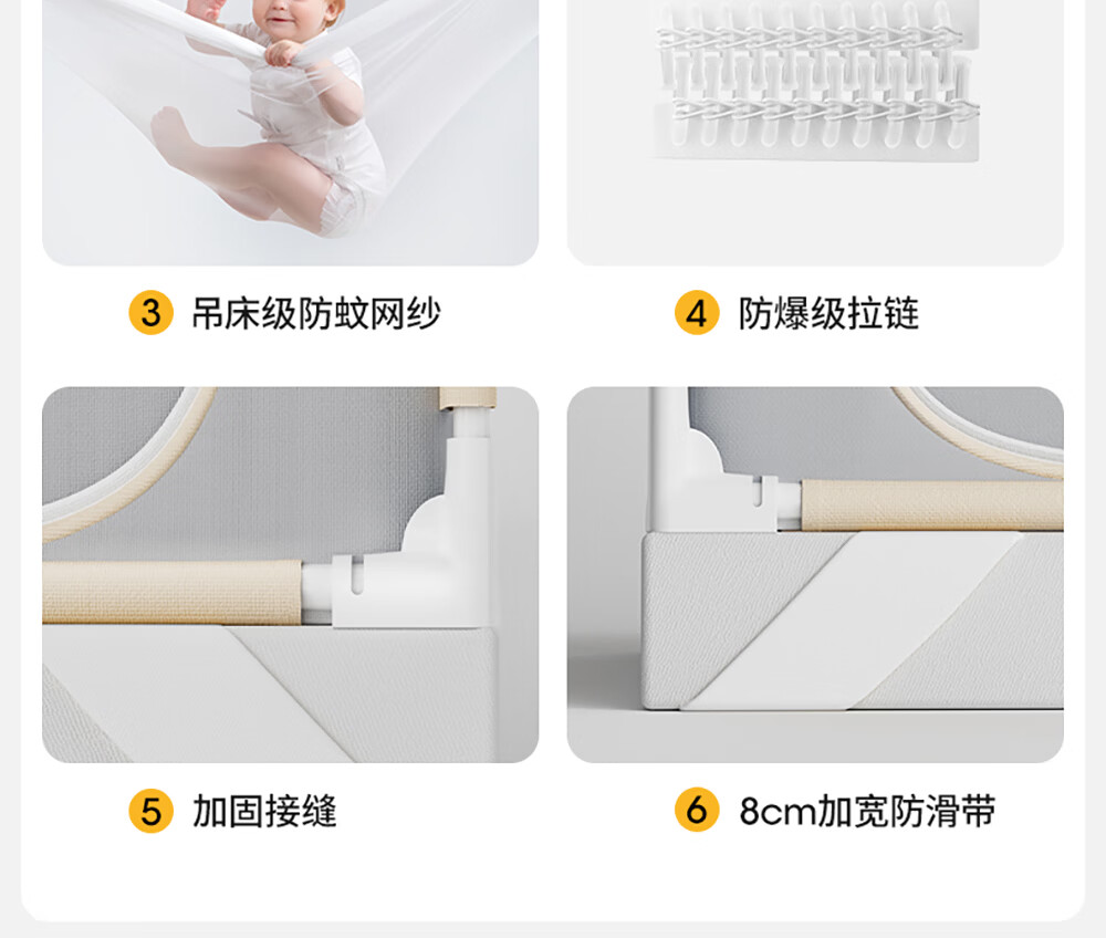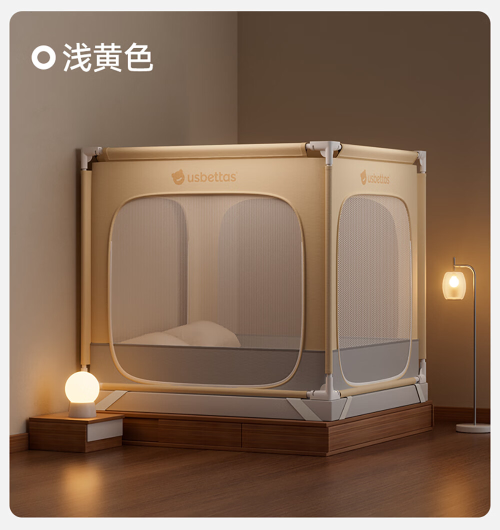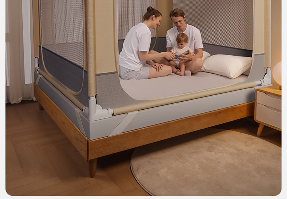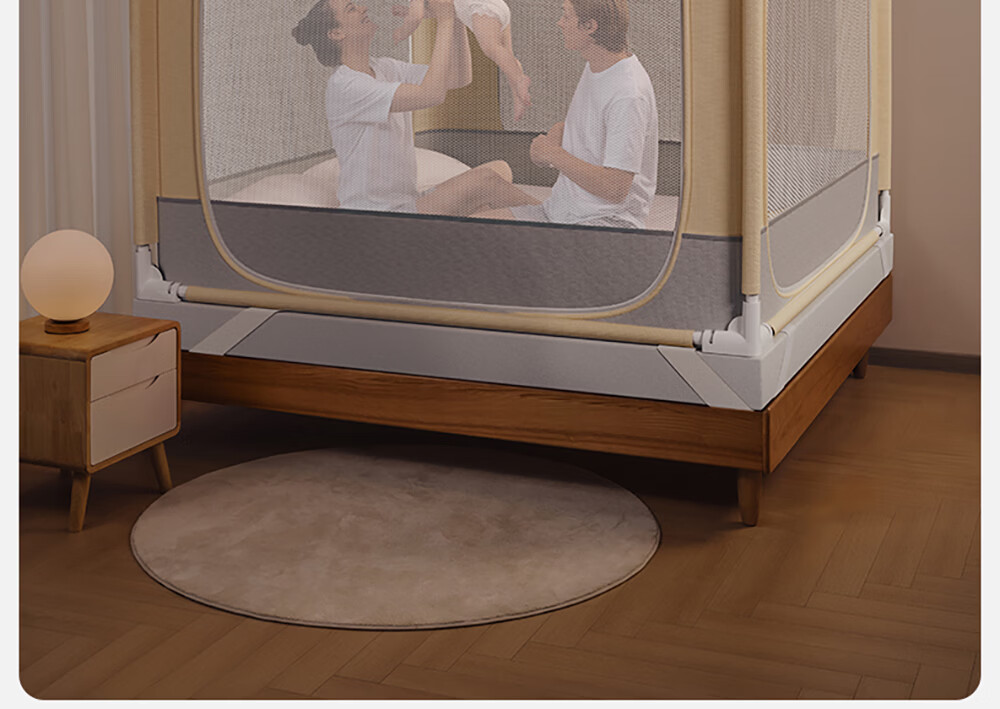 Betis baby anti-fall mosquito net home children's bed fence anti-fall zipper full bottom Pro model beige 1.8*2 meters