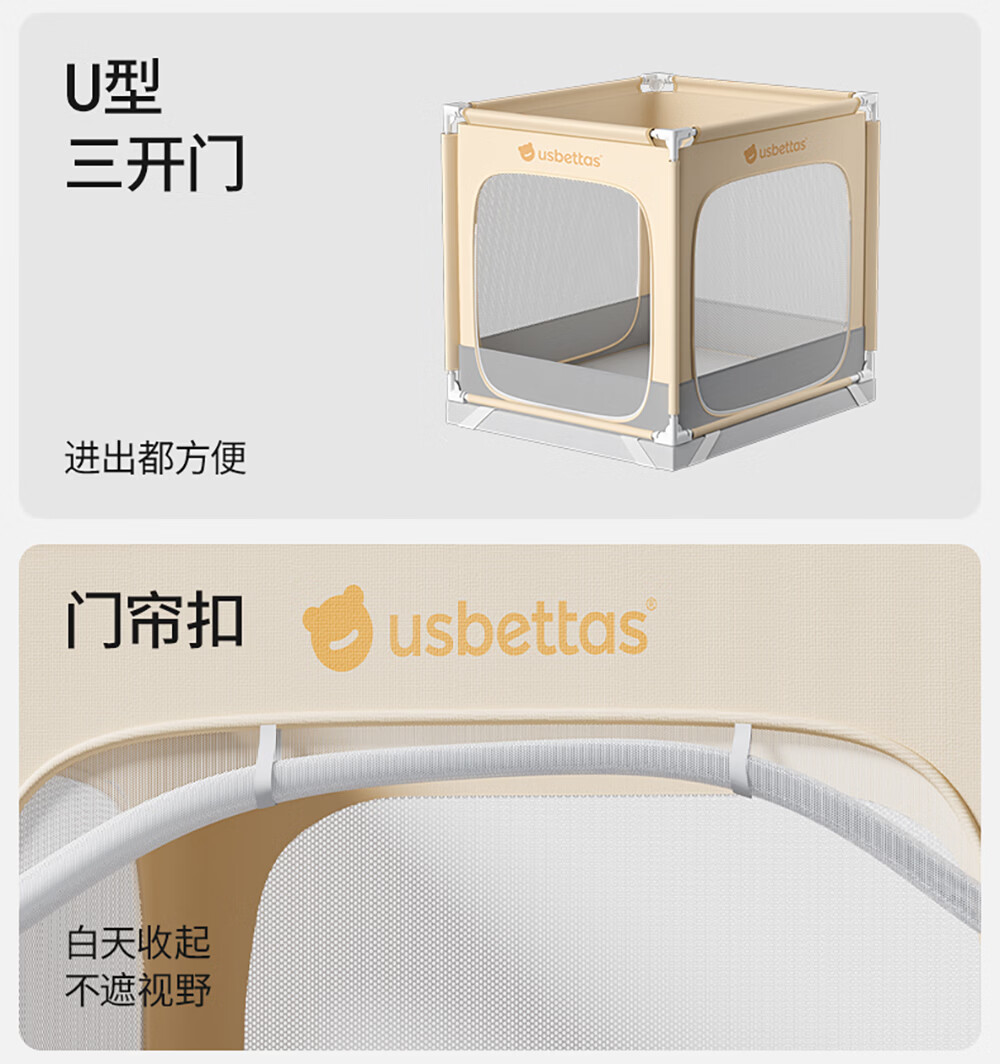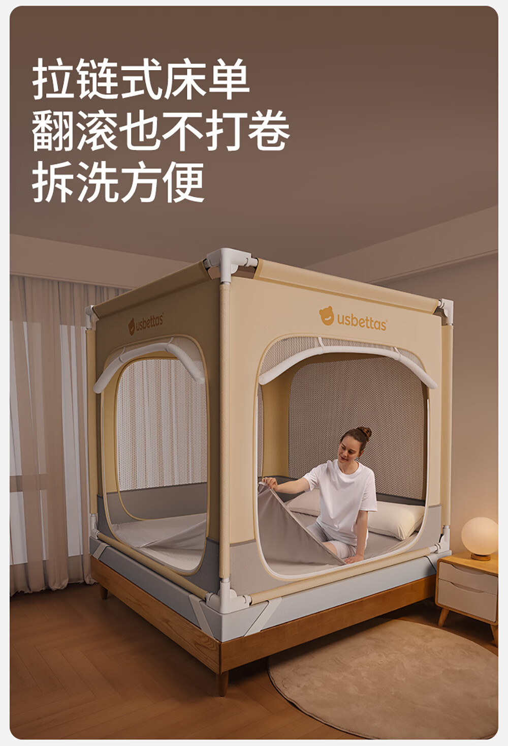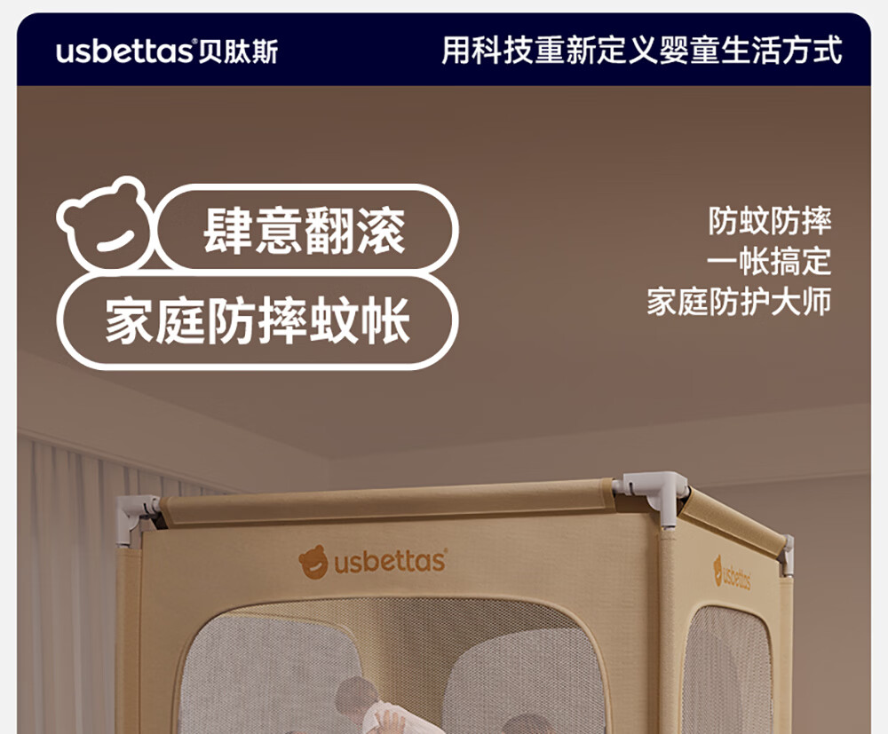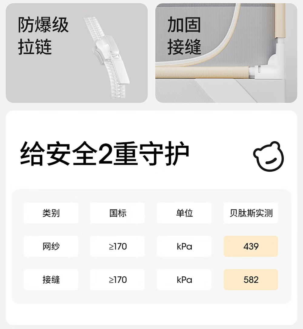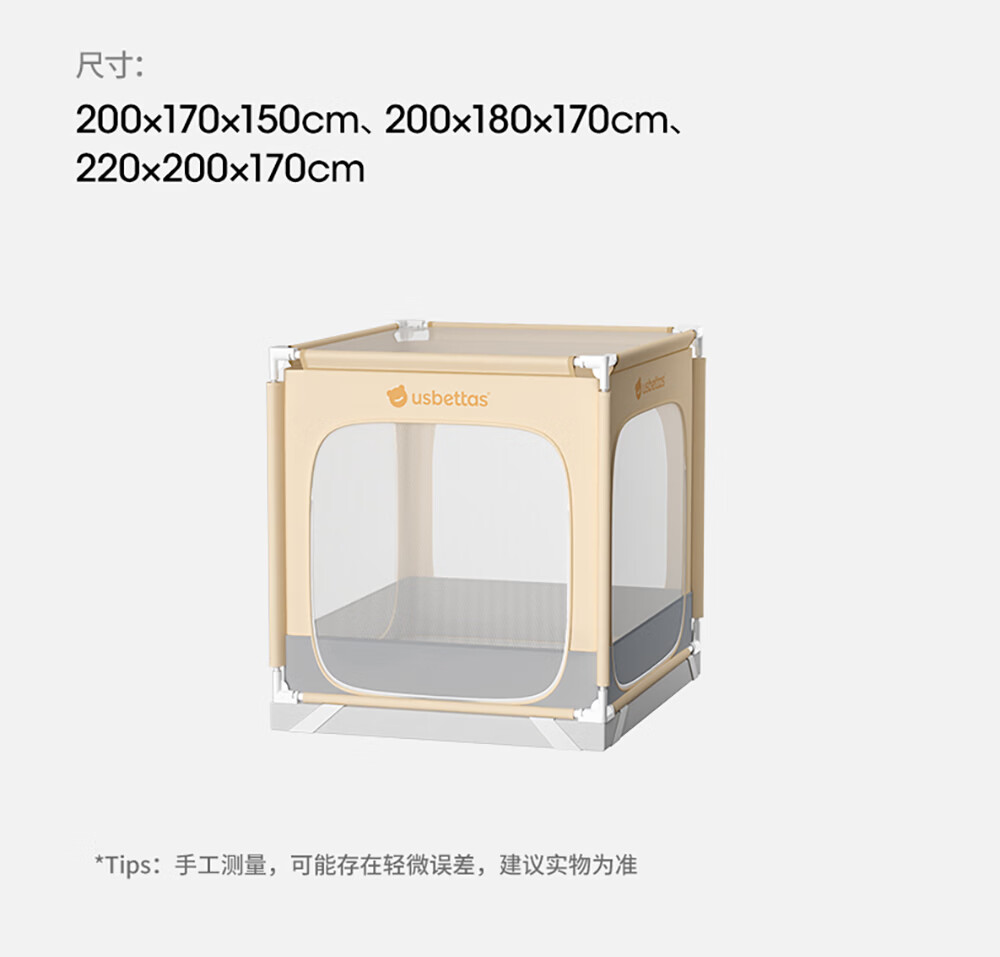 Betis baby anti-fall mosquito net home children's bed fence anti-fall zipper full bottom Pro model beige 1.8*2 meters
