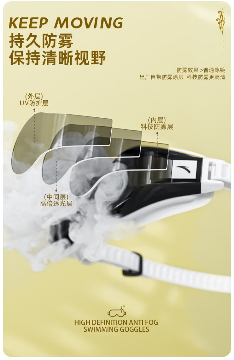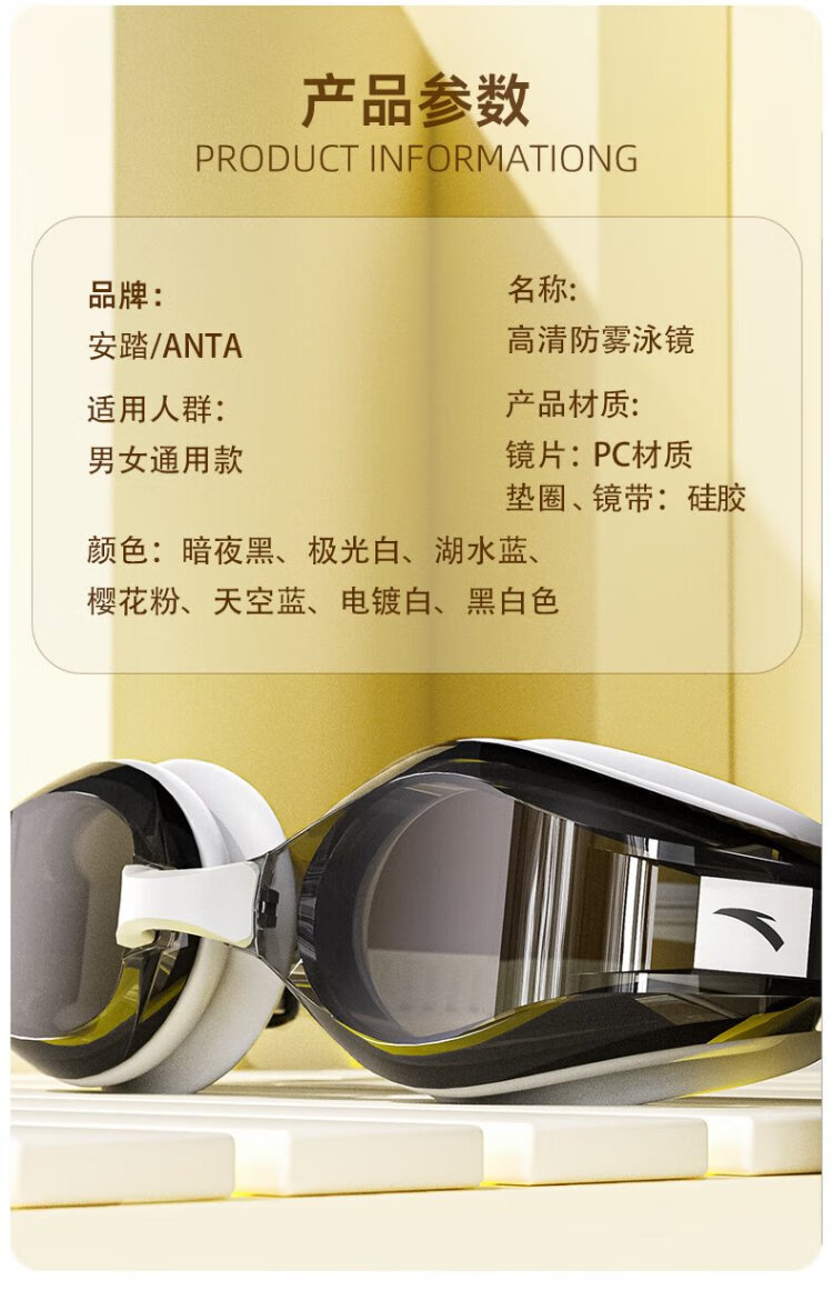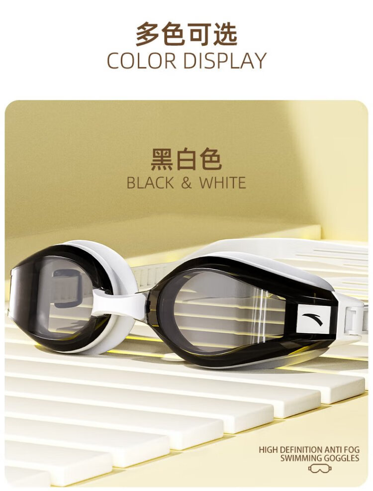 ANTA (ANTA) Water Pupil Small Frame Swimming Goggles Waterproof and Anti-fog HD Myopia Swimming Goggles Adult Swimming Goggles Dark Night Black Set Flat Light