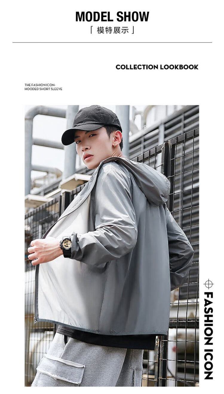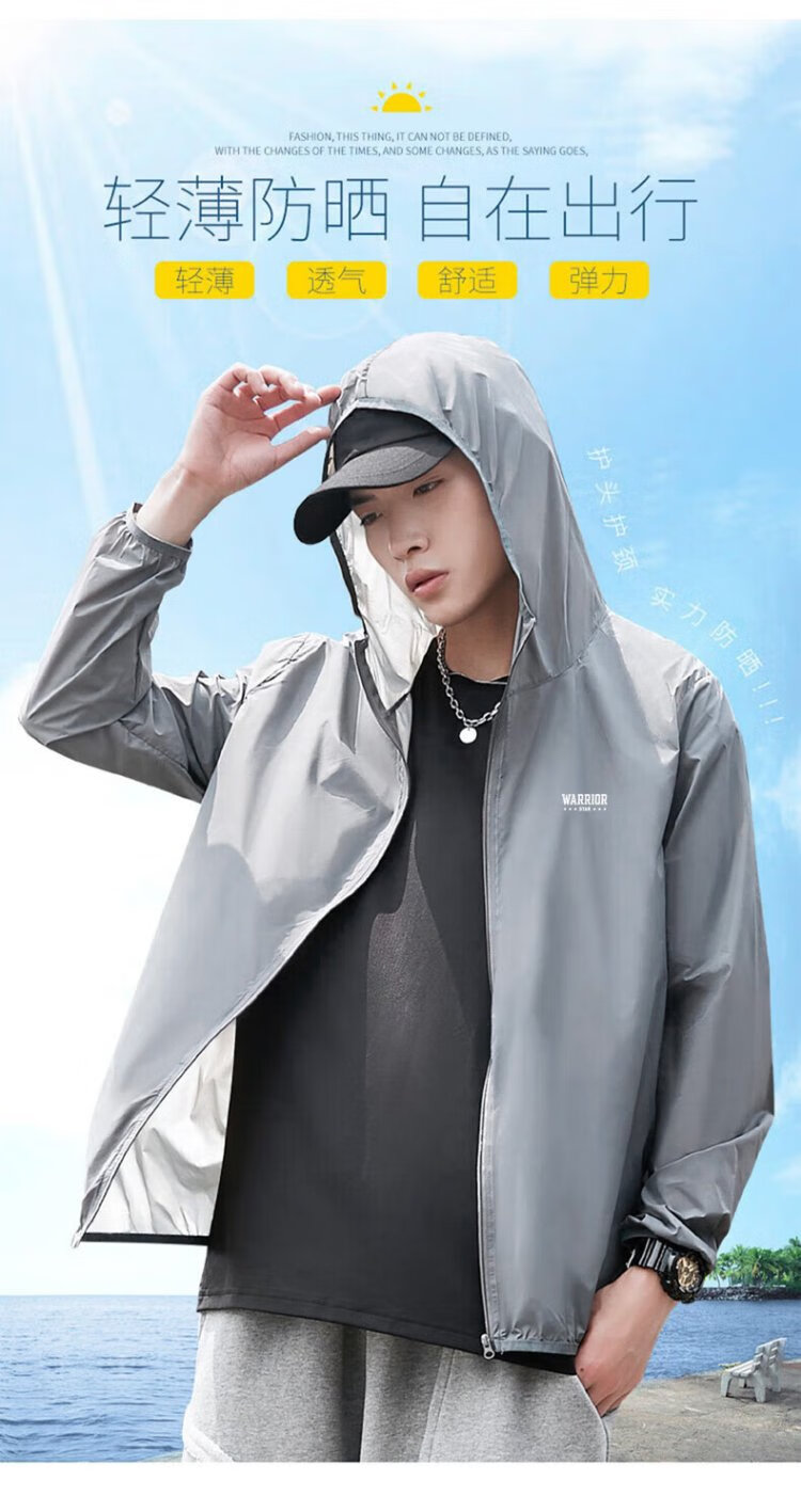Pull back sun protection clothing for men, lightweight outdoor clothing for men, fishing clothing, hooded breathable sports jacket, tops for men