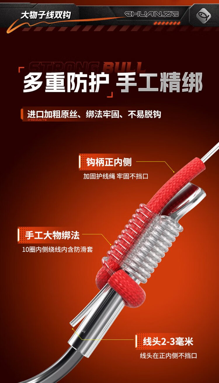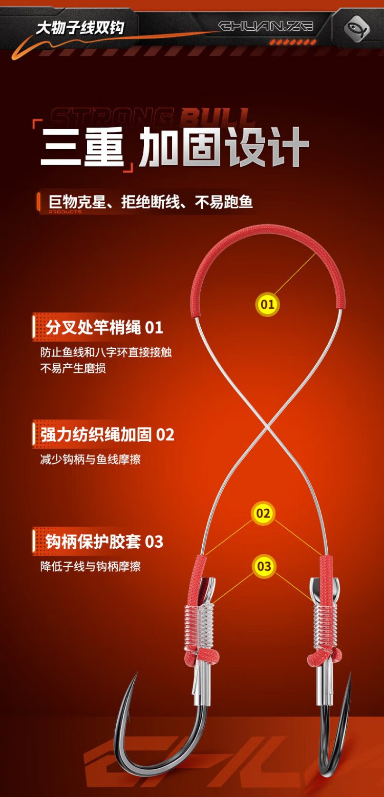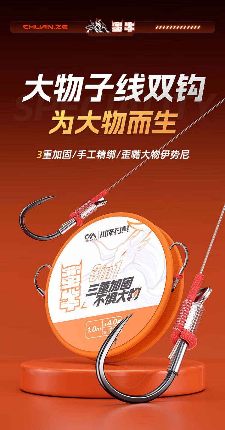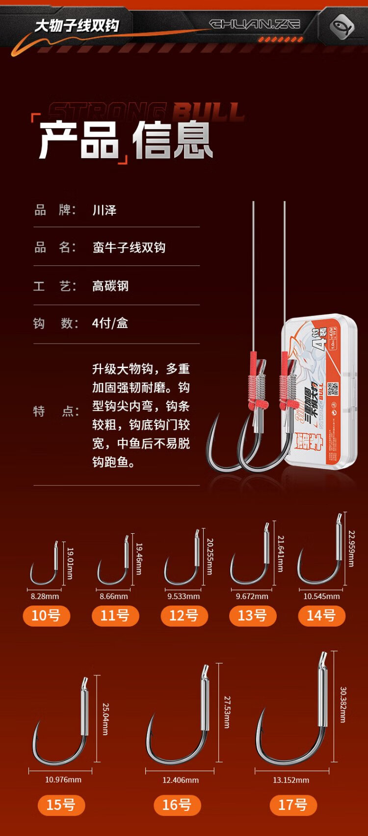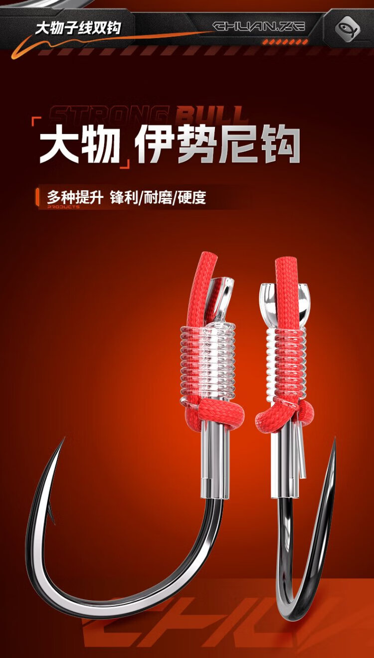 Kawazawa plus long sub-line double hook bull big thing Iseni fish hook finished product 4 rolls boxed hook 12, line 6