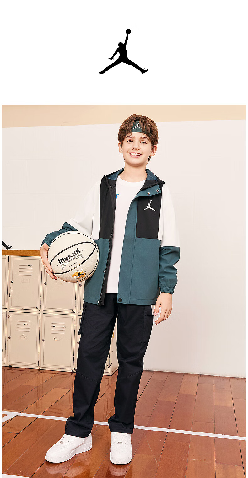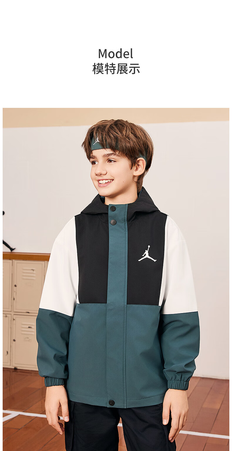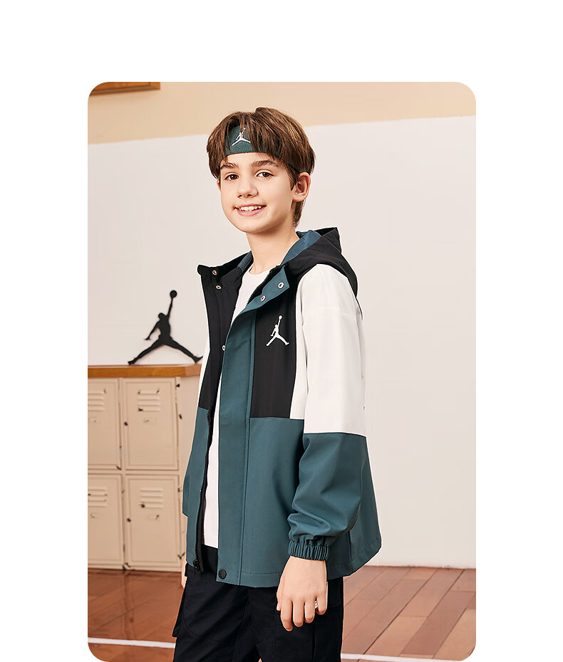 Jordan Nike AJ Children's Clothing Children's Windproof Jacket Boys Autumn New Hooded Jacket Mediterranean Green