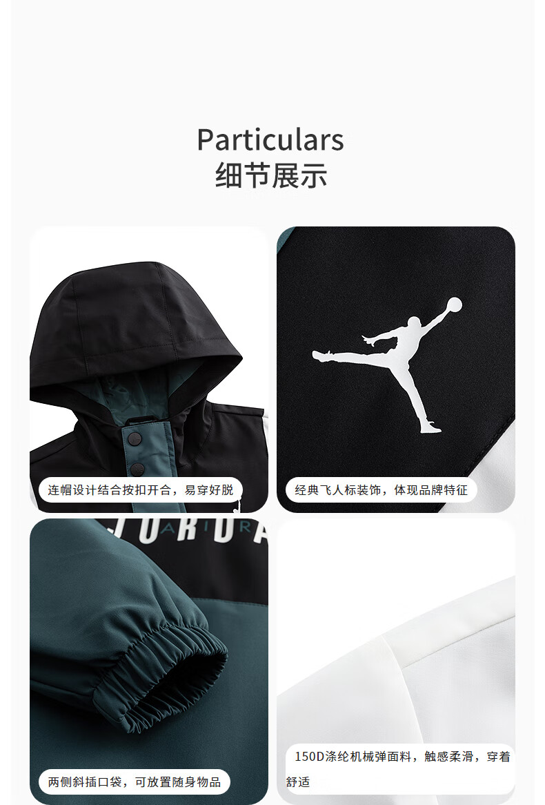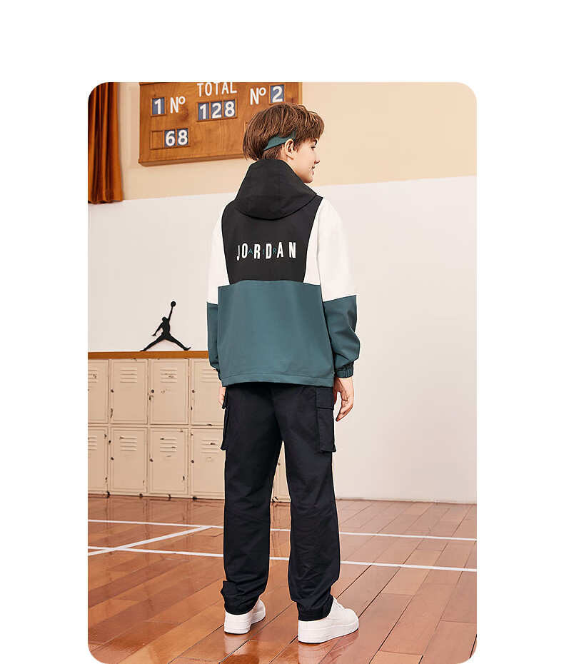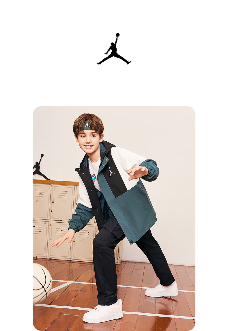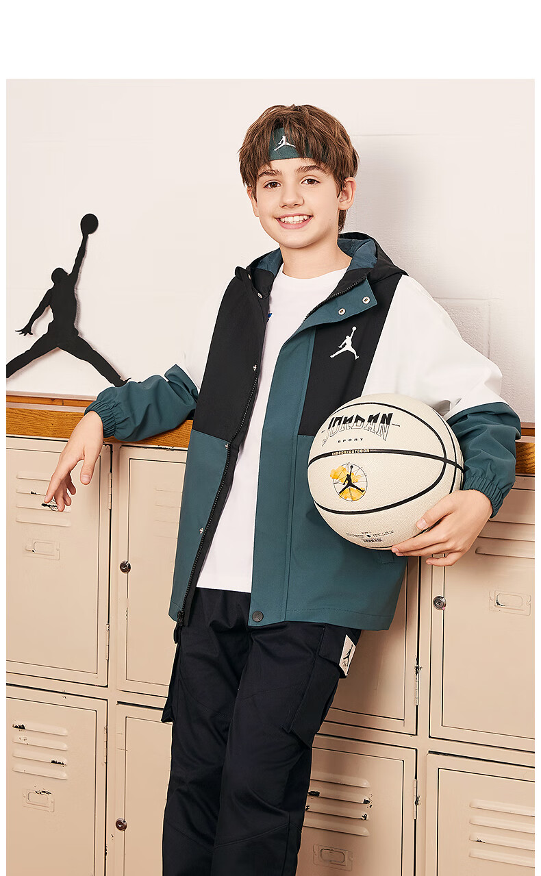 Jordan Nike AJ Children's Clothing Children's Windproof Jacket Boys Autumn New Hooded Jacket Mediterranean Green