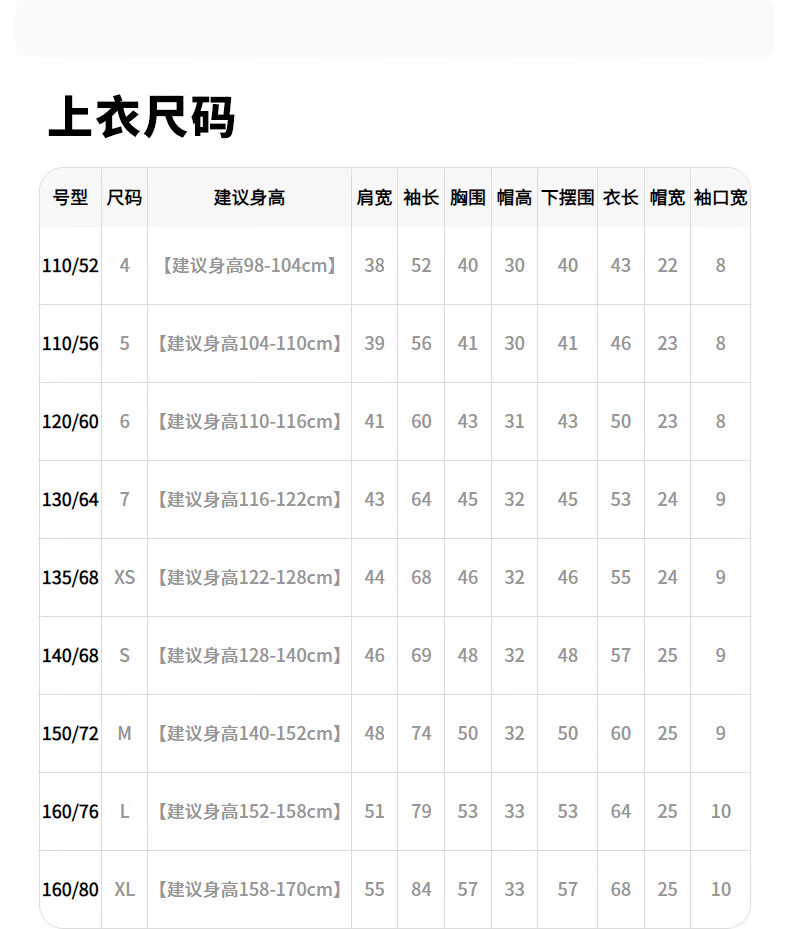 China (cm) 160-165/84-86 165-170 / 88-90 167-172 / 92-96 168-173 / 98-102 170-176 / 106-110