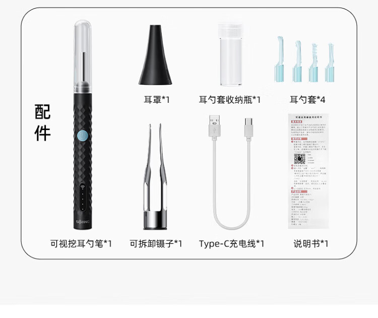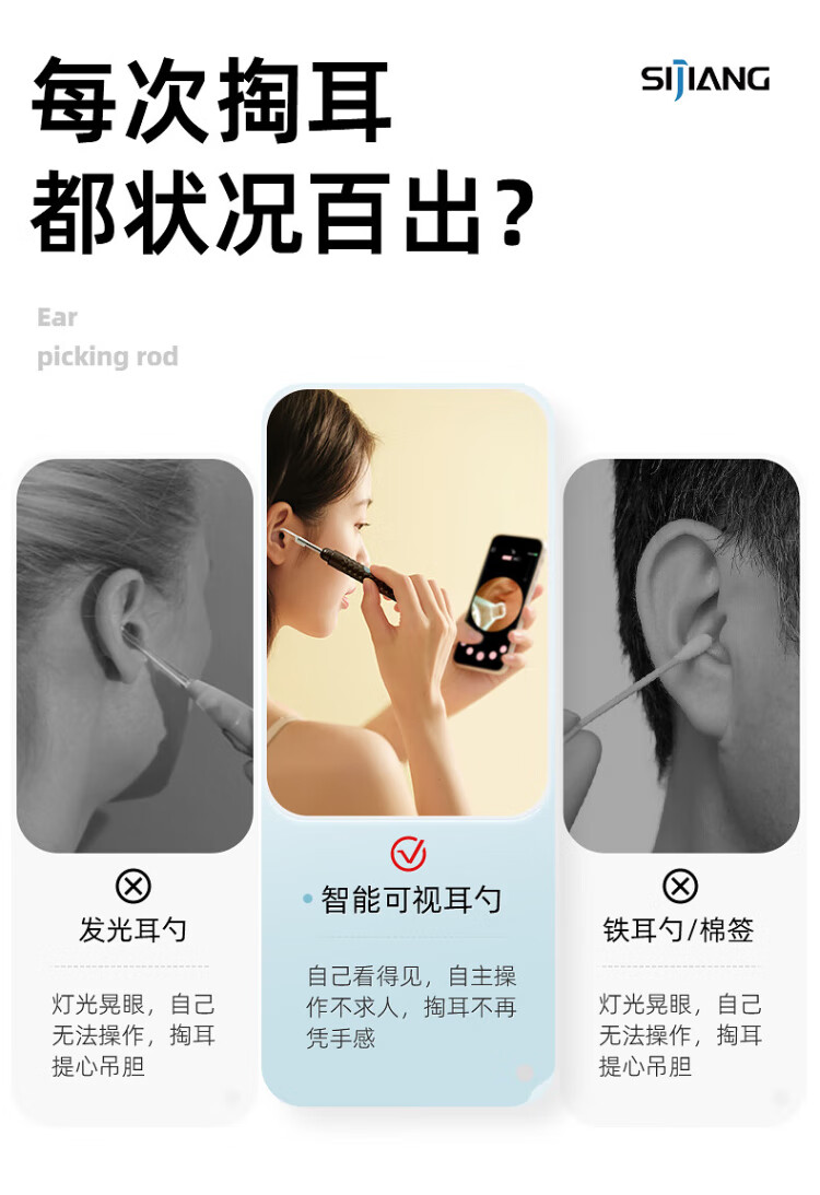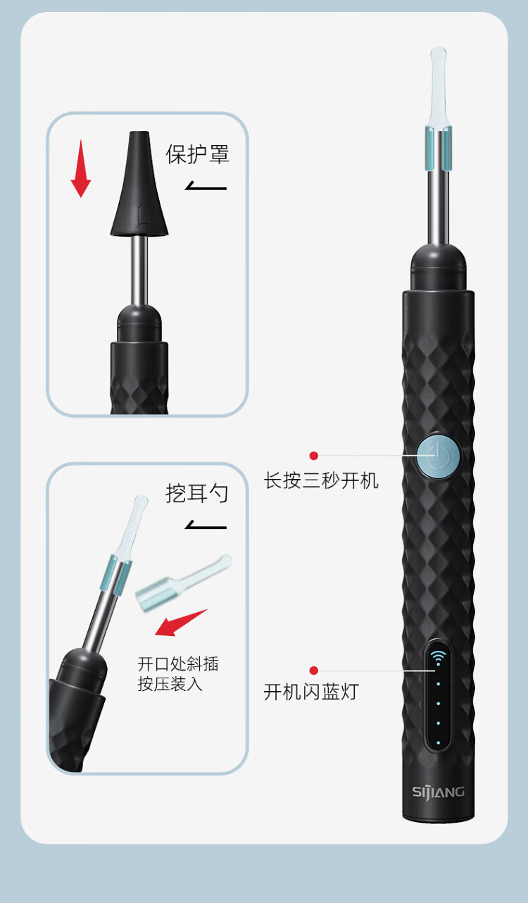 Sijiang visual ear picking spoon wireless high-definition ear canal endoscope dental mirror earwax removal tweezers luminous ear picking tool household