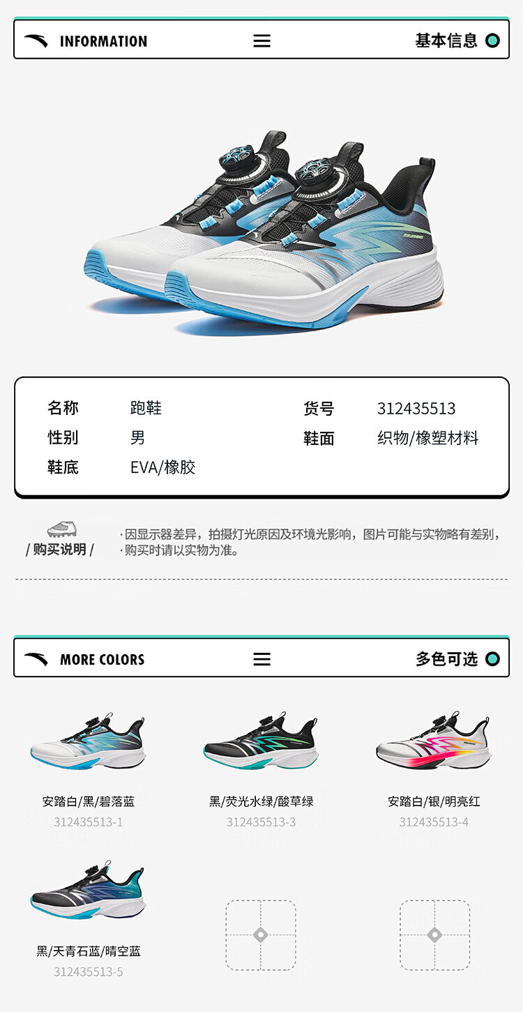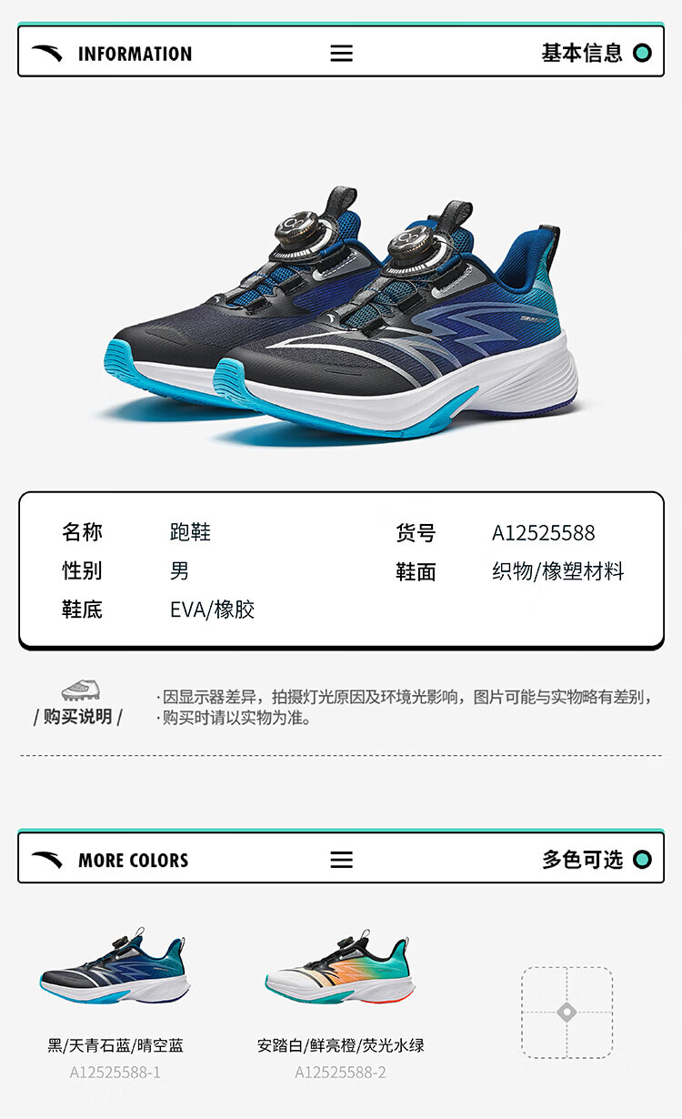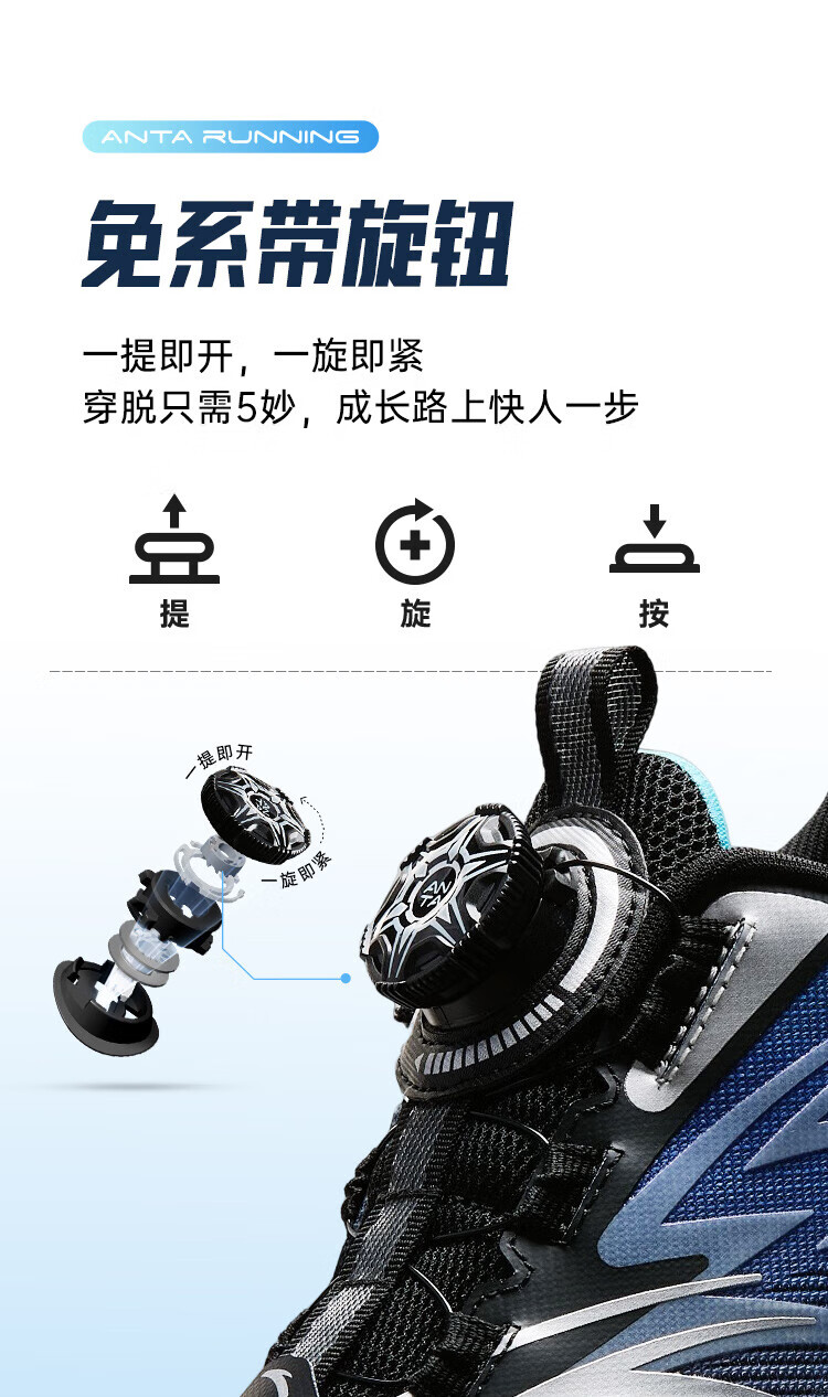 Anta children's sports shoes for boys and girls, big children's sneak technology running shoes, Hailang Lite2.0 running shoes 312435513J