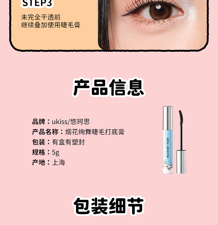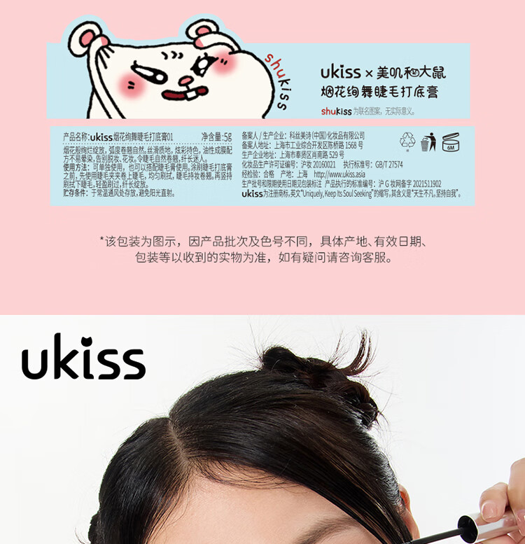 Ukiss (ukiss) Meiji and Rat co-branded eyelash primer 5g natural black curling and shaping waterproof and sweat-proof without smudging