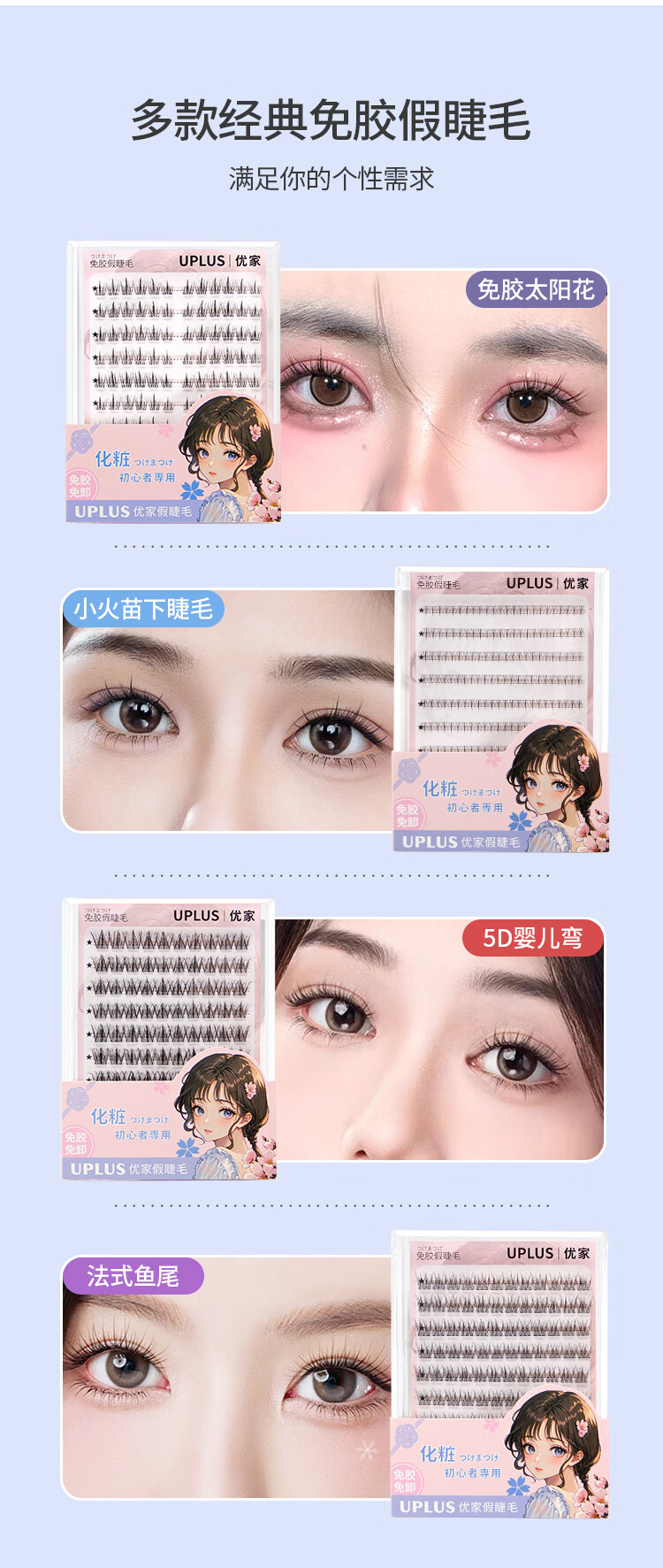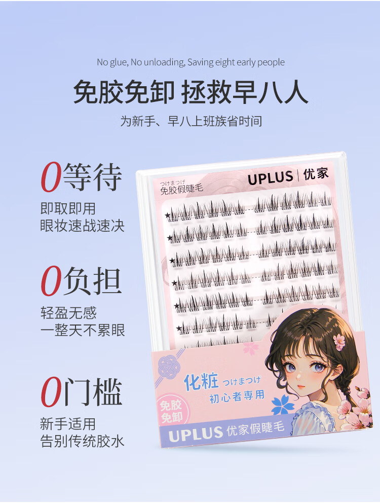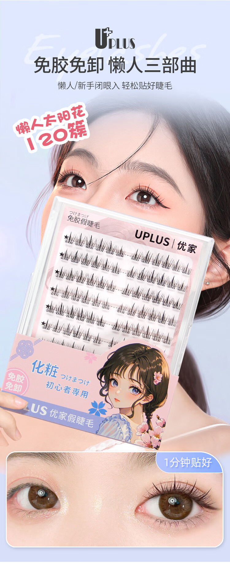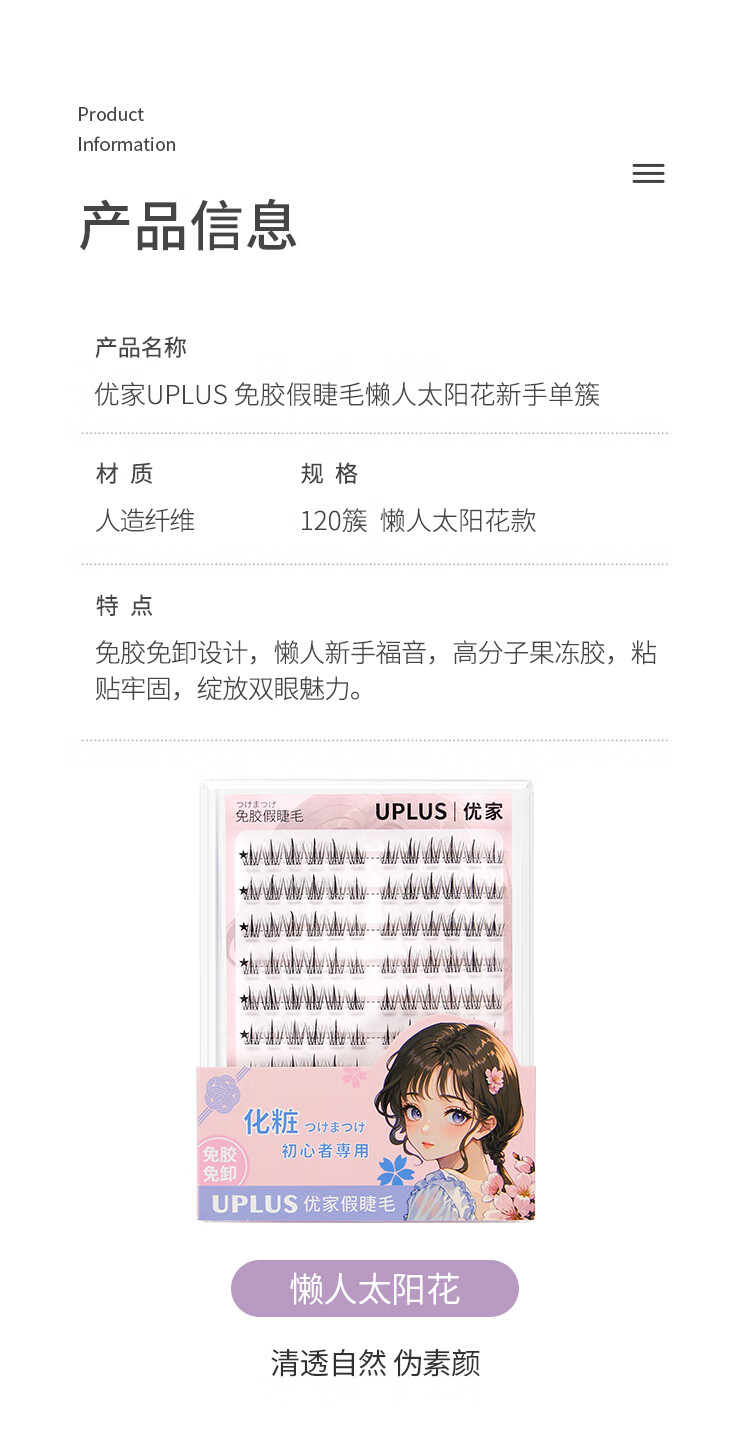 Youjia UPLUS glue-free false eyelashes lazy sunflower false eyelashes glue-free 120 clusters large capacity novice single cluster eyelashes
