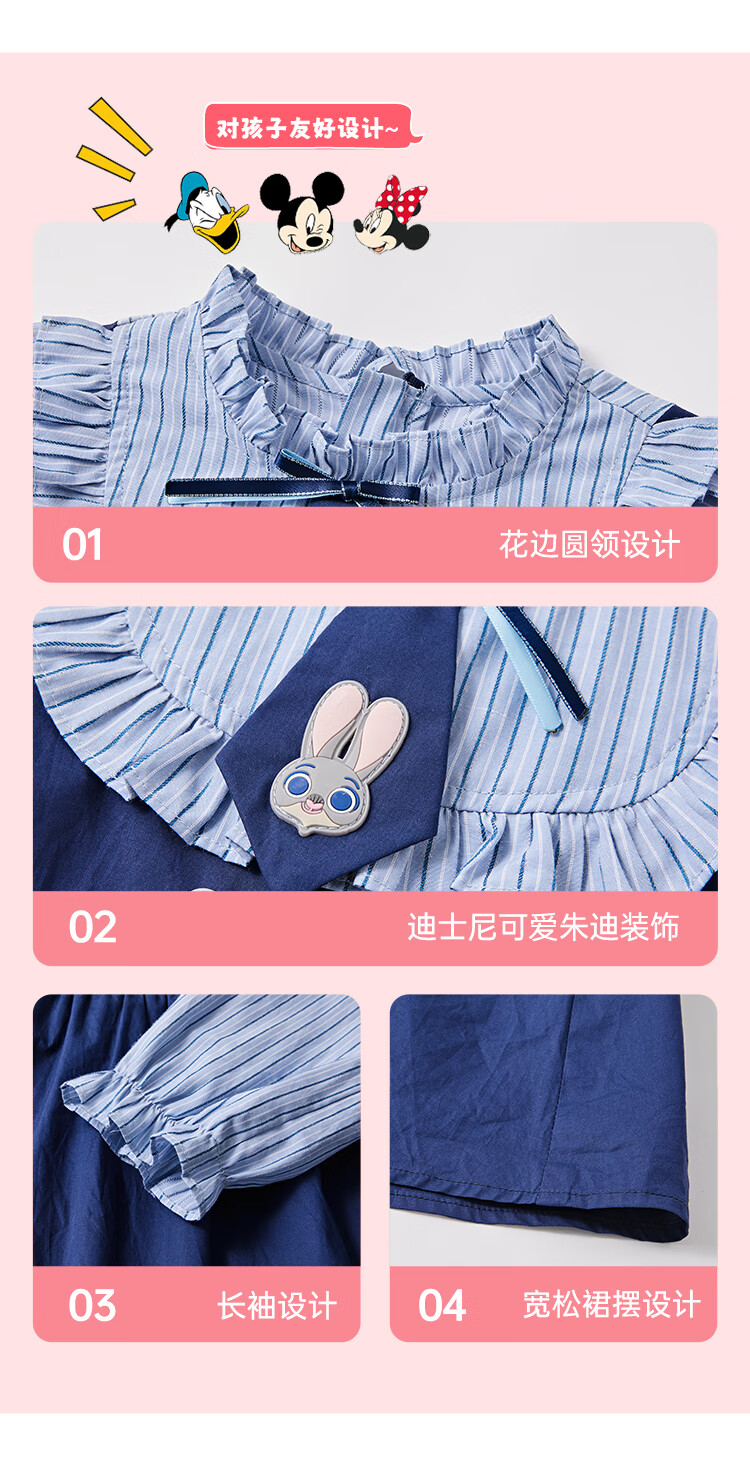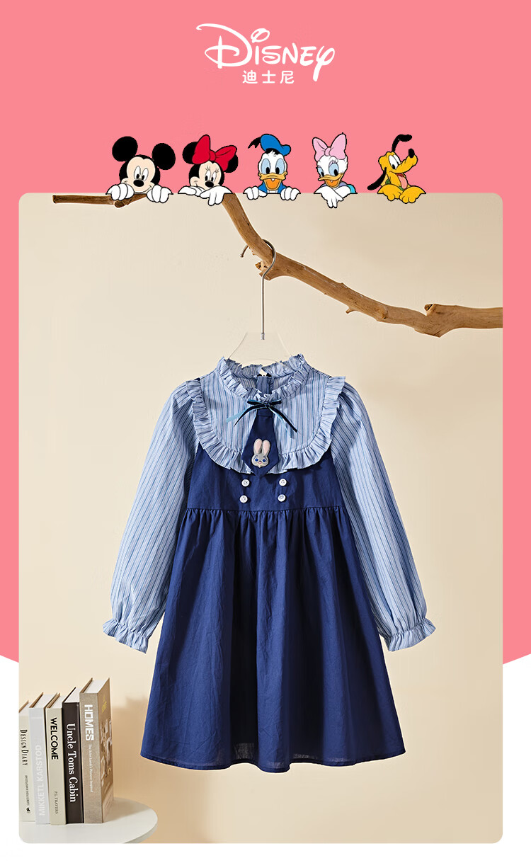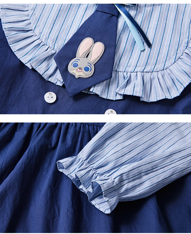 Disney Zootopia Judy Girls Skirt Dress 2025 Autumn New New Arrival Fake Two-piece Dress