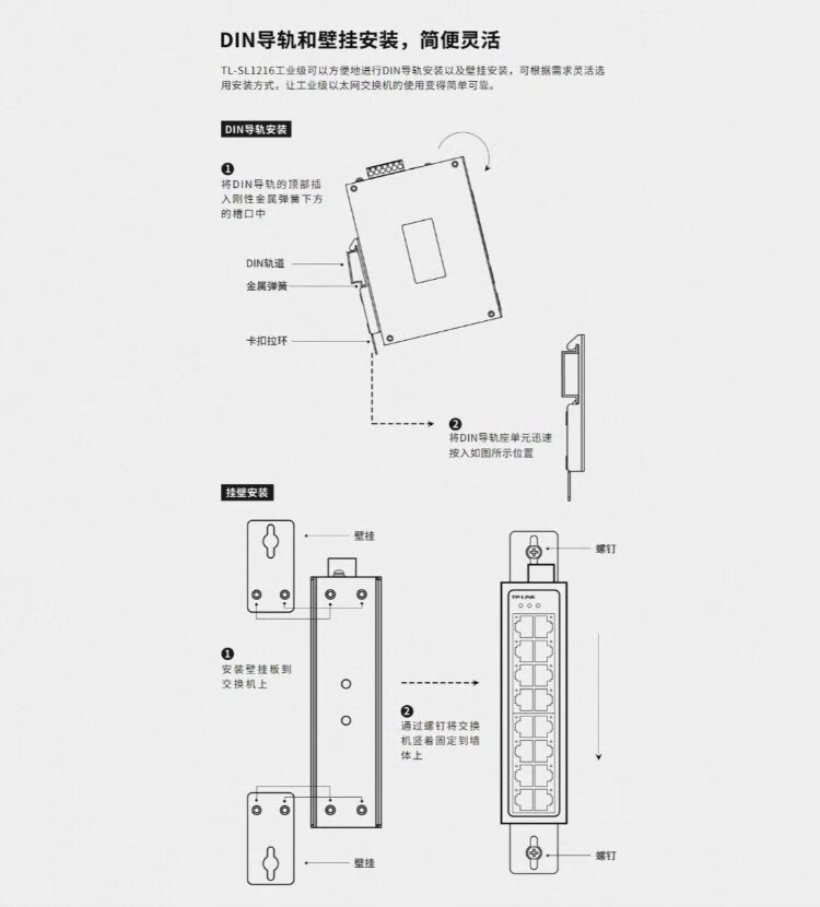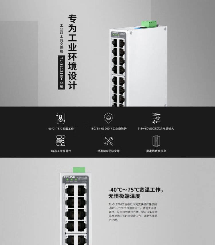 TP-LINK industrial Ethernet switch TL-SL1216 industrial grade 14 ports 100M and 2 Gigabit