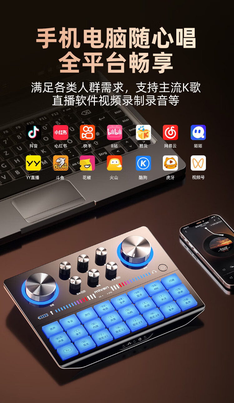 Meisheng sound card live broadcast equipment full set of K-song special mobile phone computer Kuaishou Douyin professional condenser microphone wireless microphone dubbing recording anchor singing set external