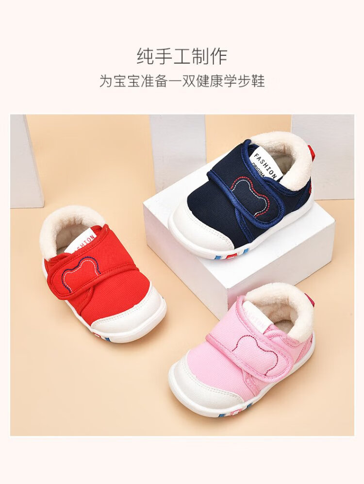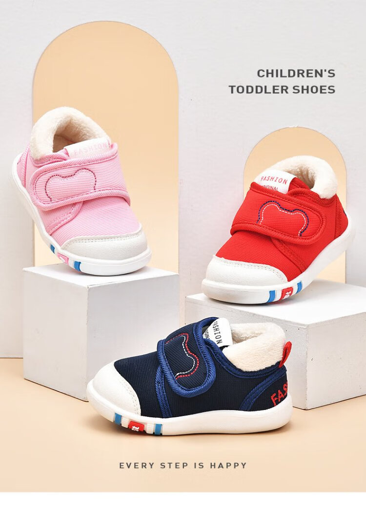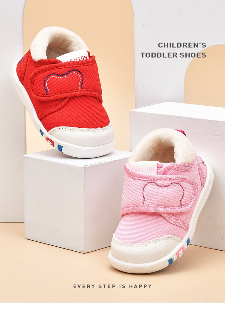 Tombeck Winter Toddler Shoes Baby Velvet Cotton Shoes Soft Sole Breathable Functional Shoes Children's Anti-Slip Shoes Pink 15