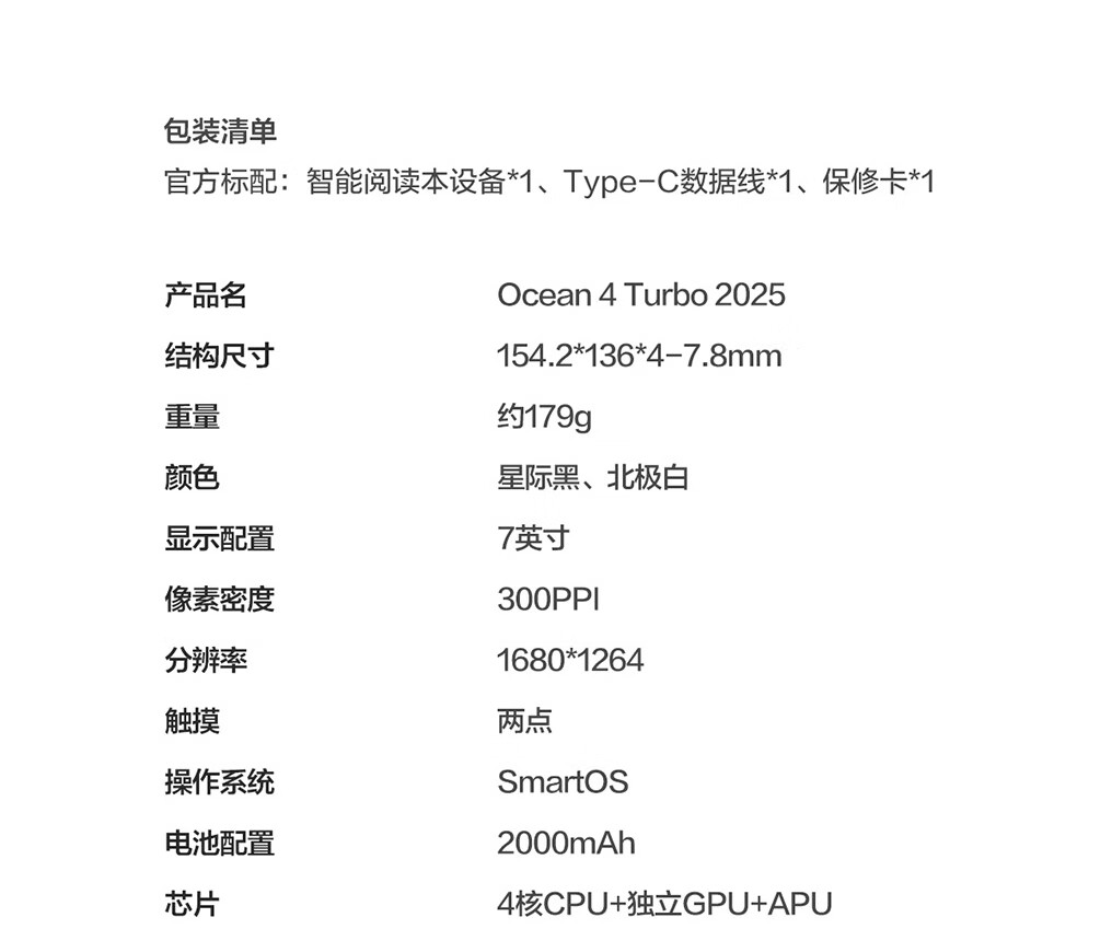 IReader Ocean4 Turbo 2025 7-inch smart reading book e-book reader ink screen electronic paper book tablet computer for learning and reading comics portable Arctic White