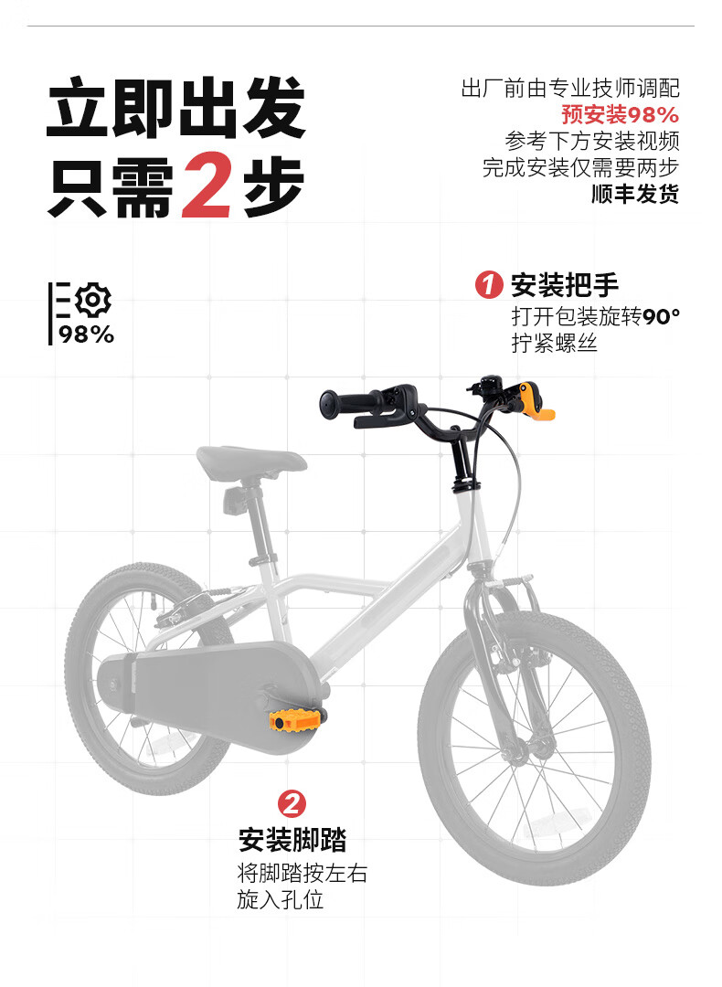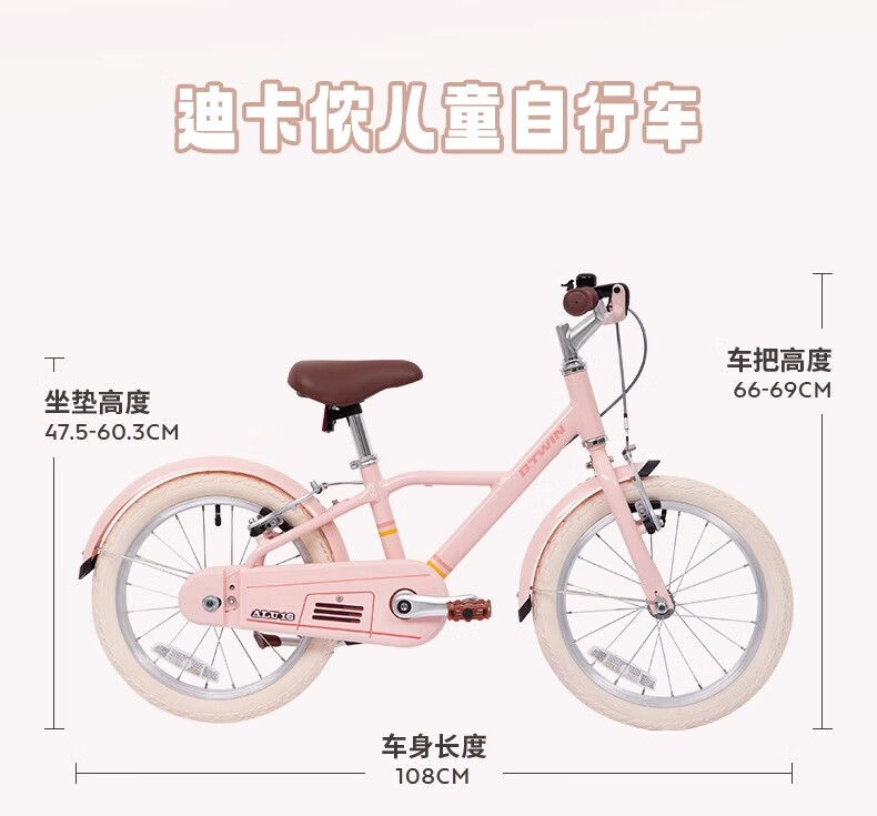 Decathlon Children's Urban Bike 16-inch Adjustable Light Bike for Teenagers Aged 3-6-5532176