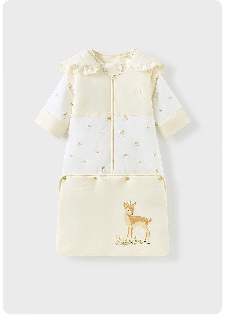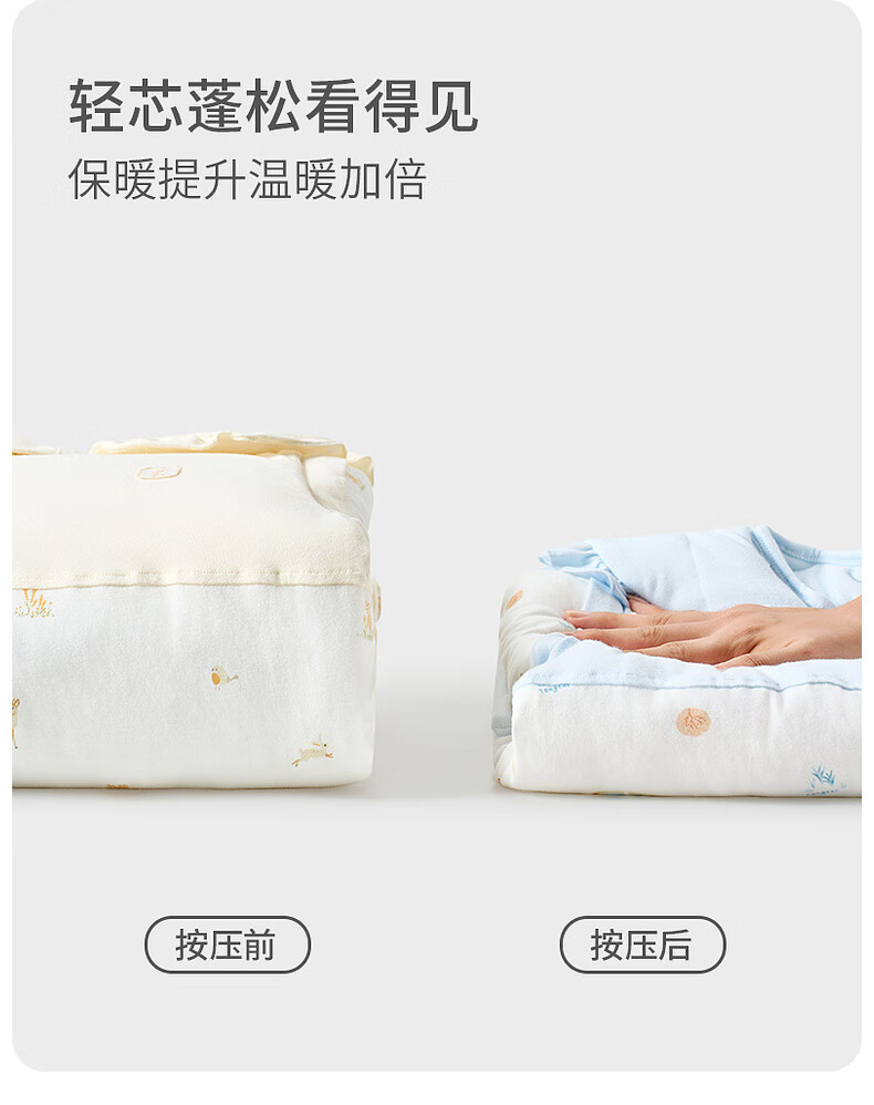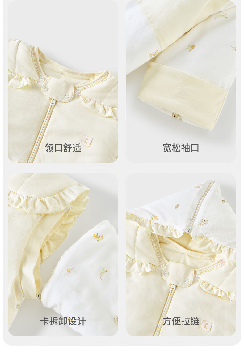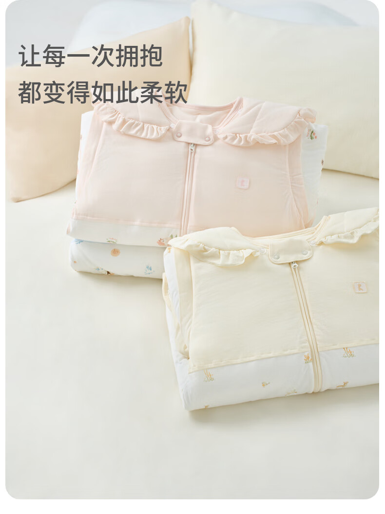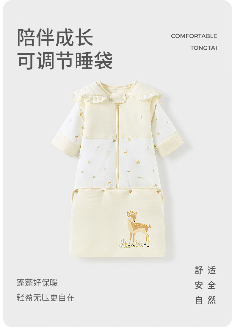 Tongtai (TONGTAI) baby hooded sleeping bag autumn and winter pure cotton baby thin cotton one-piece pajamas children anti-kicking quilt yellow 85x45cm