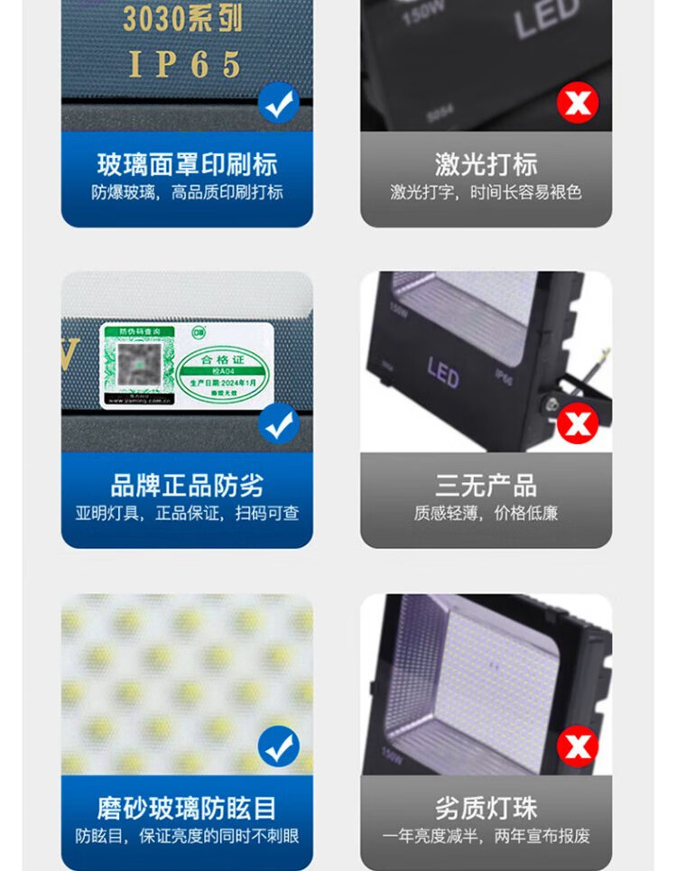 Yaming LED floodlight frosted glass anti-glare stadium light warehouse outdoor lighting workshop spotlight IP65 waterproof super bright 300w
