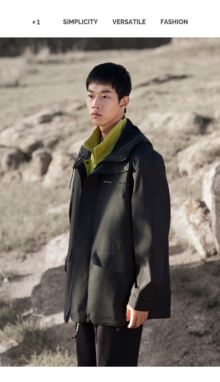 VICUTU Men's Windbreaker Autumn Fashion Hooded Business Casual Versatile Mid-Length Jacket Black L/175/92A