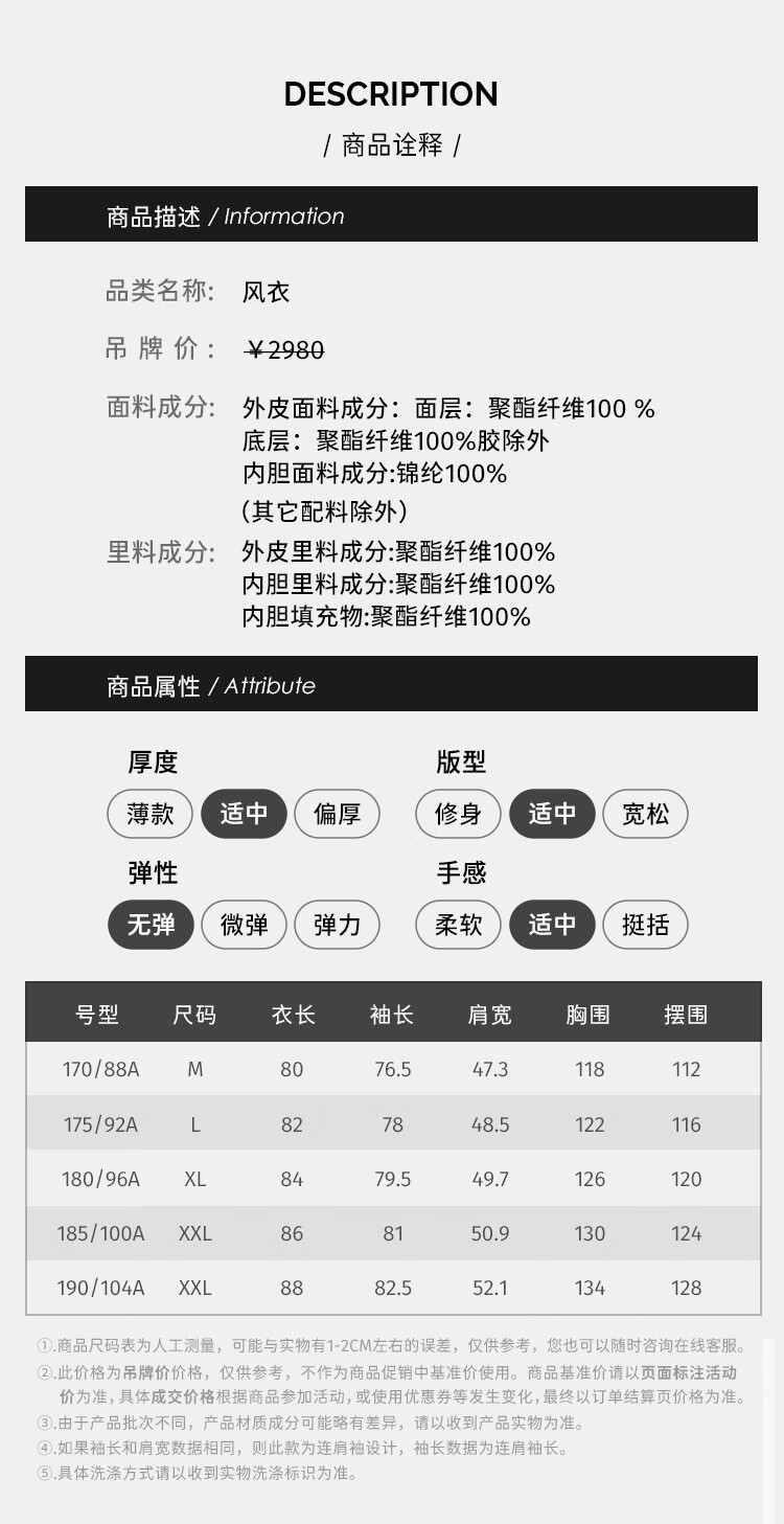 China (cm) 165 / 88-90 170 / 96-98 175 / 108-110 180 / 118-122 185 / 126-130