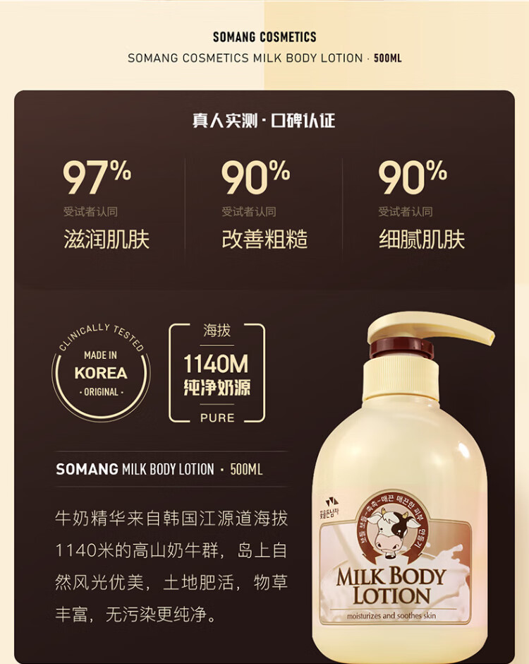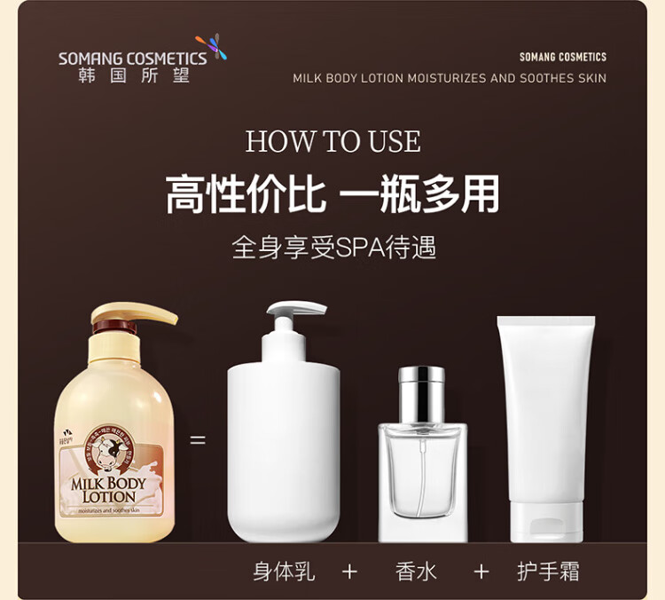 Suwang milk fragrance body lotion 500ml, hydrating and moisturizing for dry skin, suitable for men and women, long-lasting fragrance