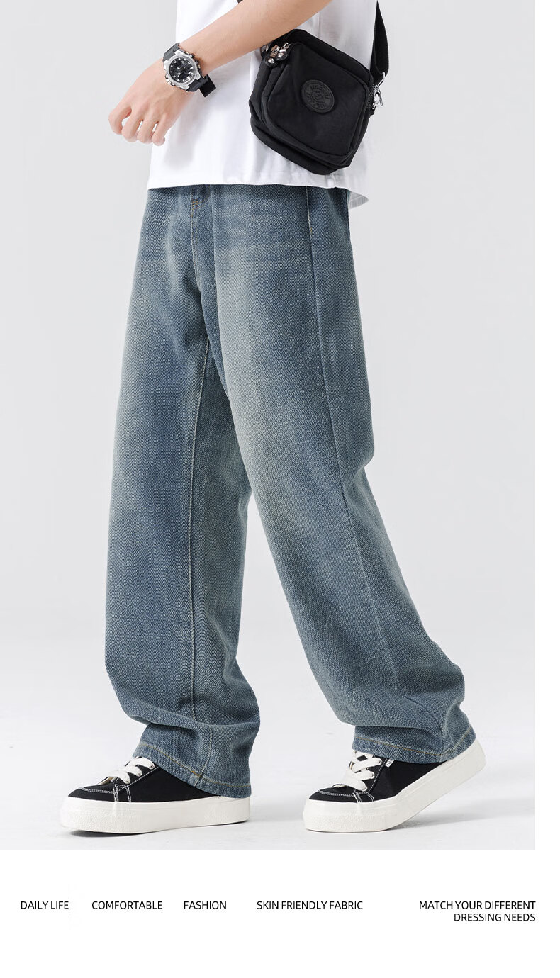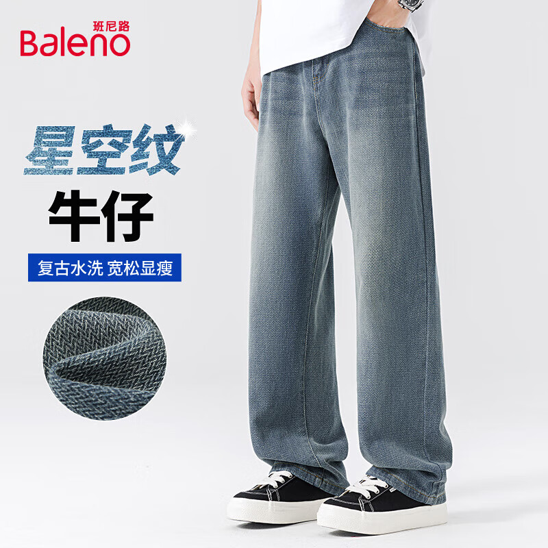 Baleno jeans men's autumn new loose straight men's casual pants retro high-end boys' youth trousers