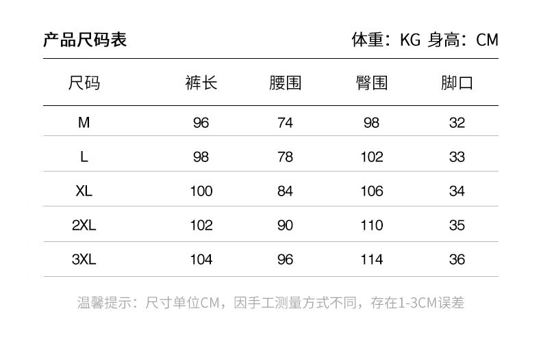Outseam (cm) 99 cm 101.5 cm 104 cm 106.5 cm 109 cm