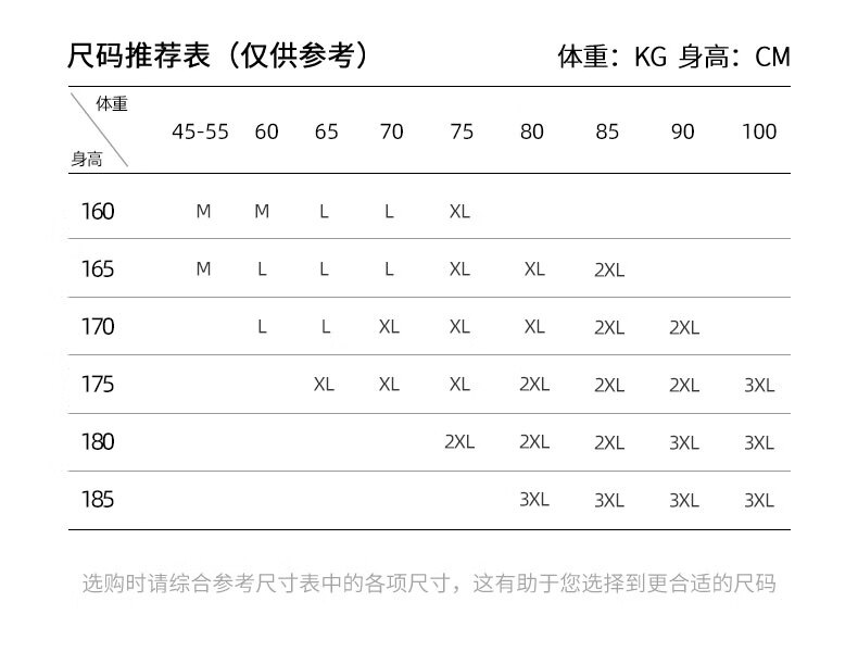 China (cm) 160-165/84-86 165-170 / 88-90 167-172 / 92-96 168-173 / 98-102 170-176 / 106-110