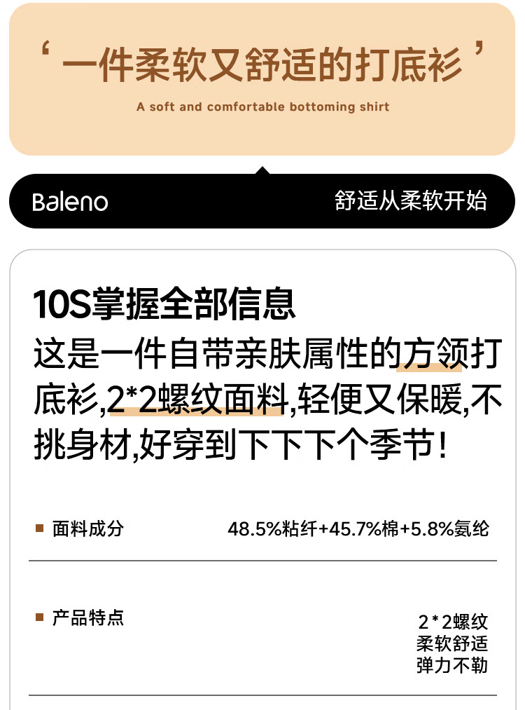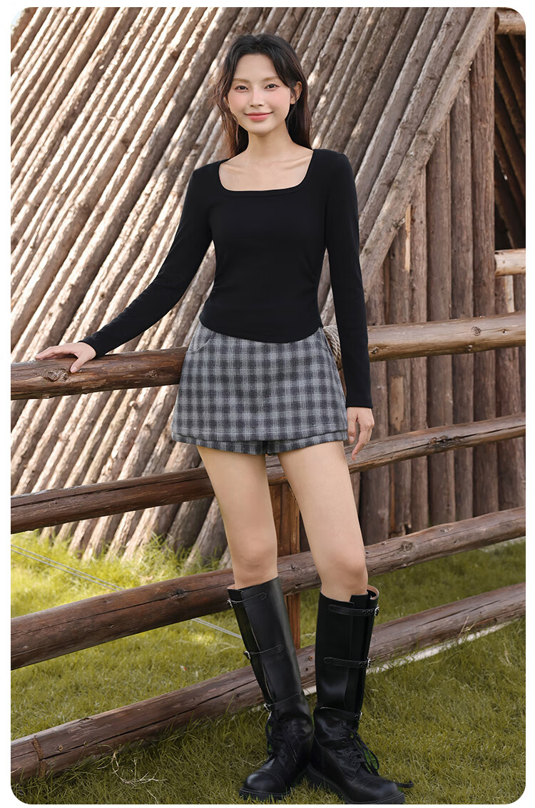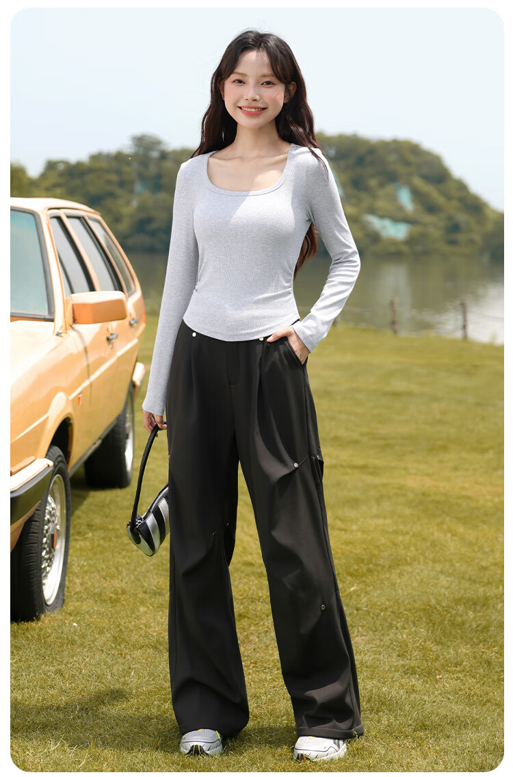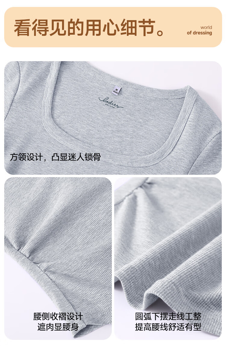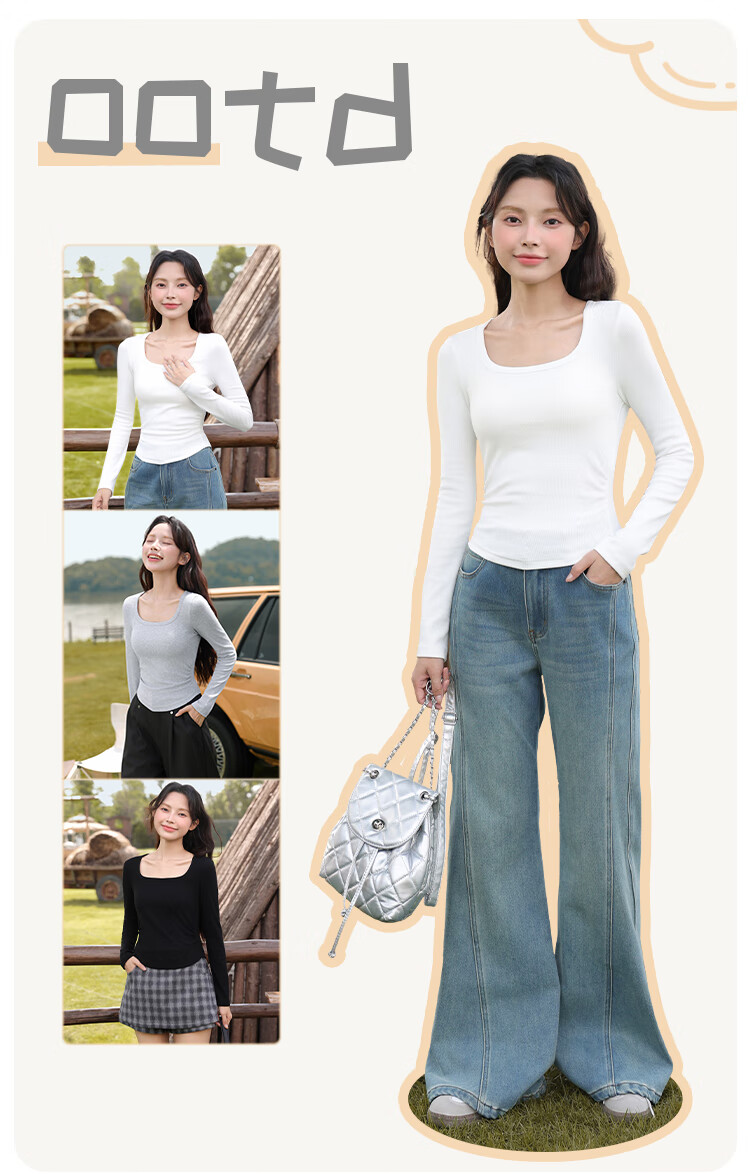 Baleno simple square collar pleated slim long-sleeved T-shirt for women 2025 autumn new comfortable casual design bottoming shirt