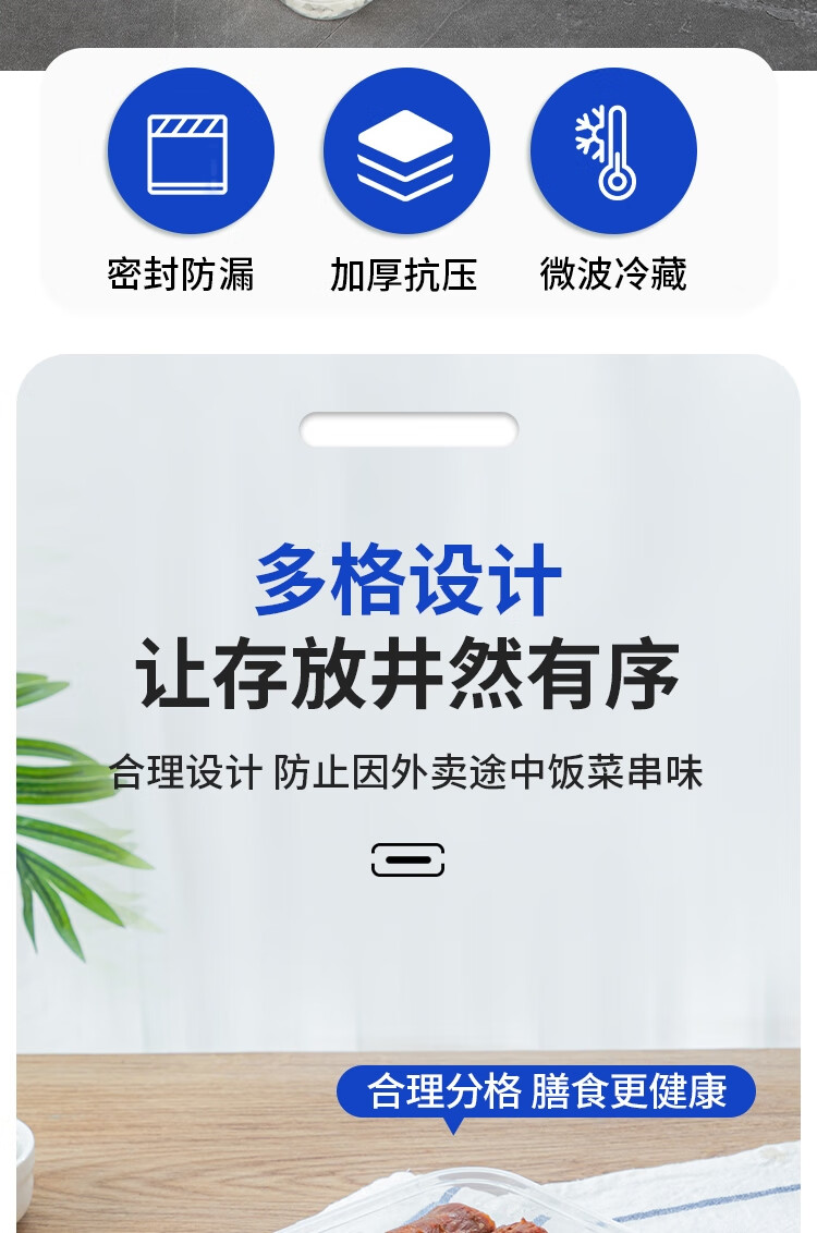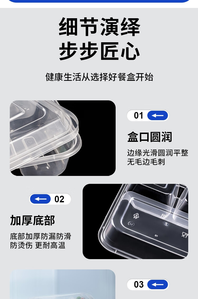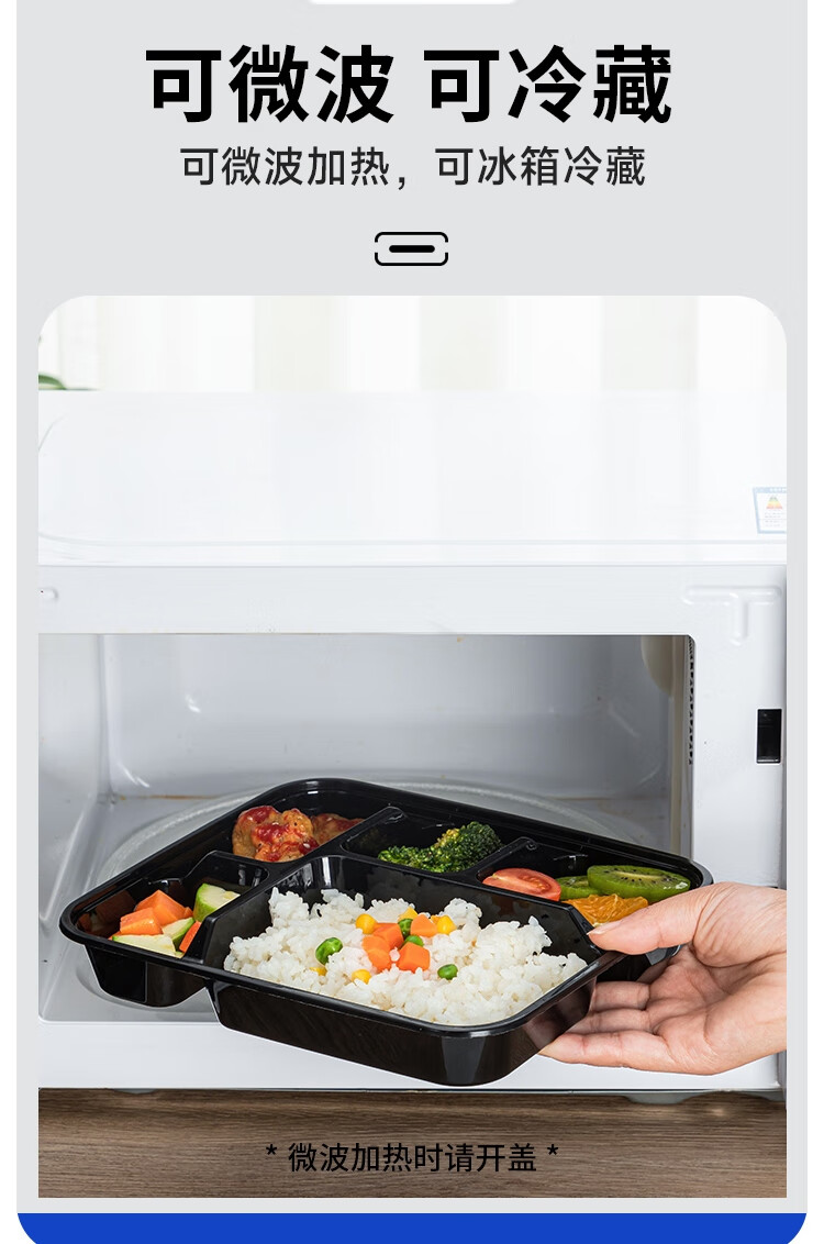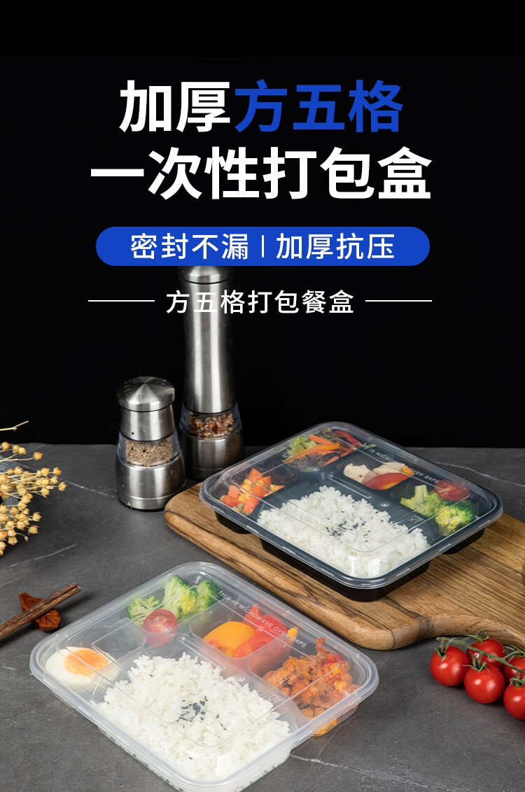 Edo disposable five-compartment lunch box transparent fast food box with lid picnic box lunch box takeaway packaging box 1000ml*50 pieces