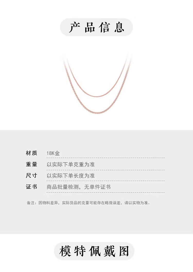 Laomiao gold 18K gold rose gold necklace Chopard chain plain chain women's clavicle chain