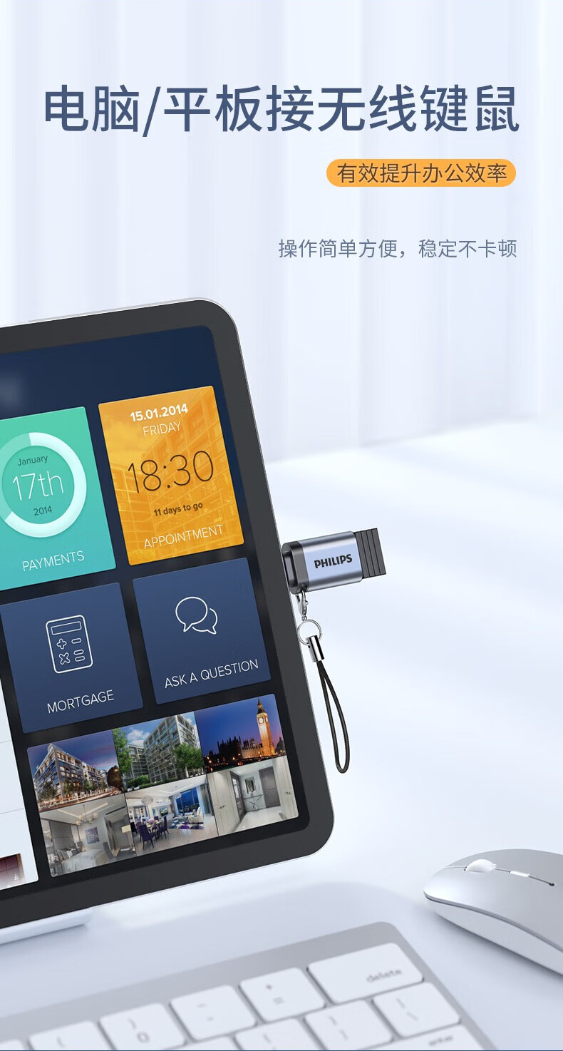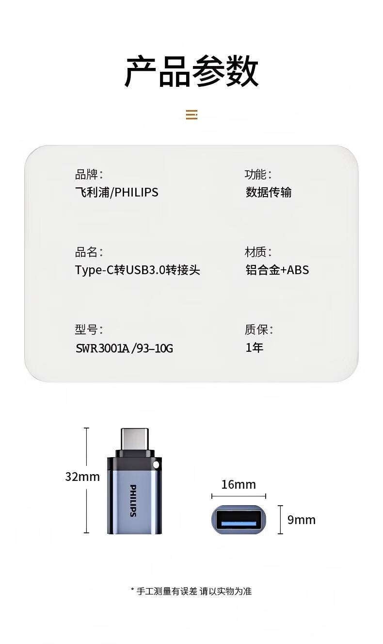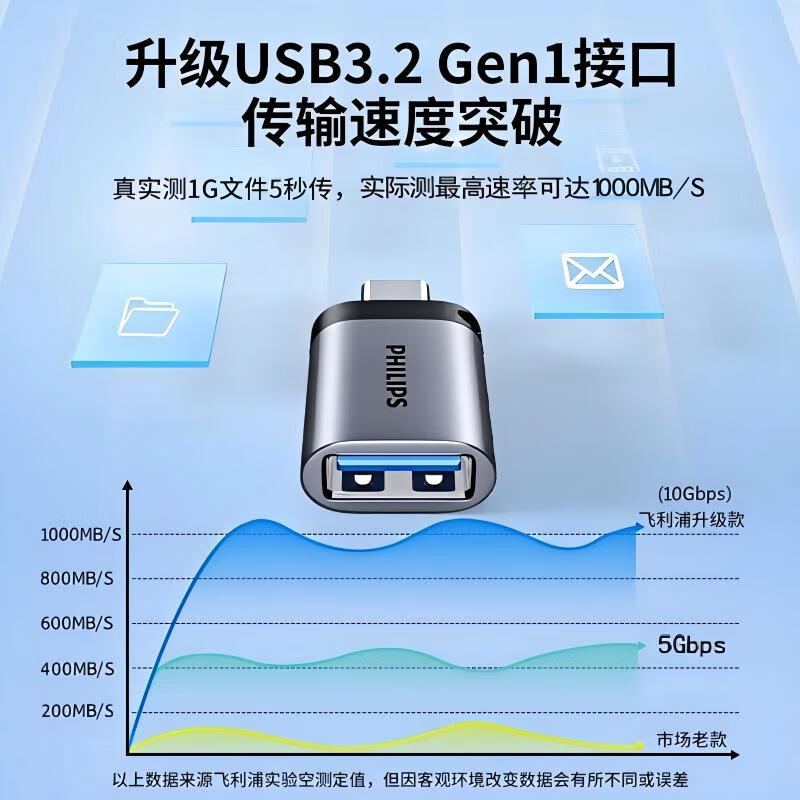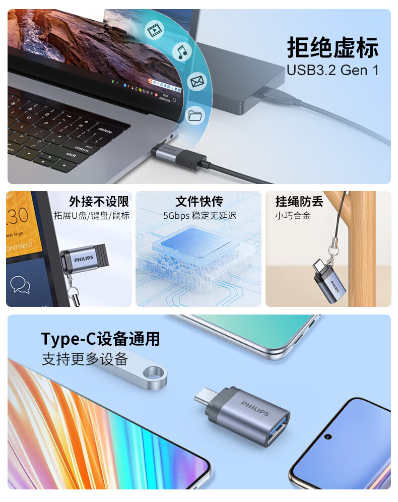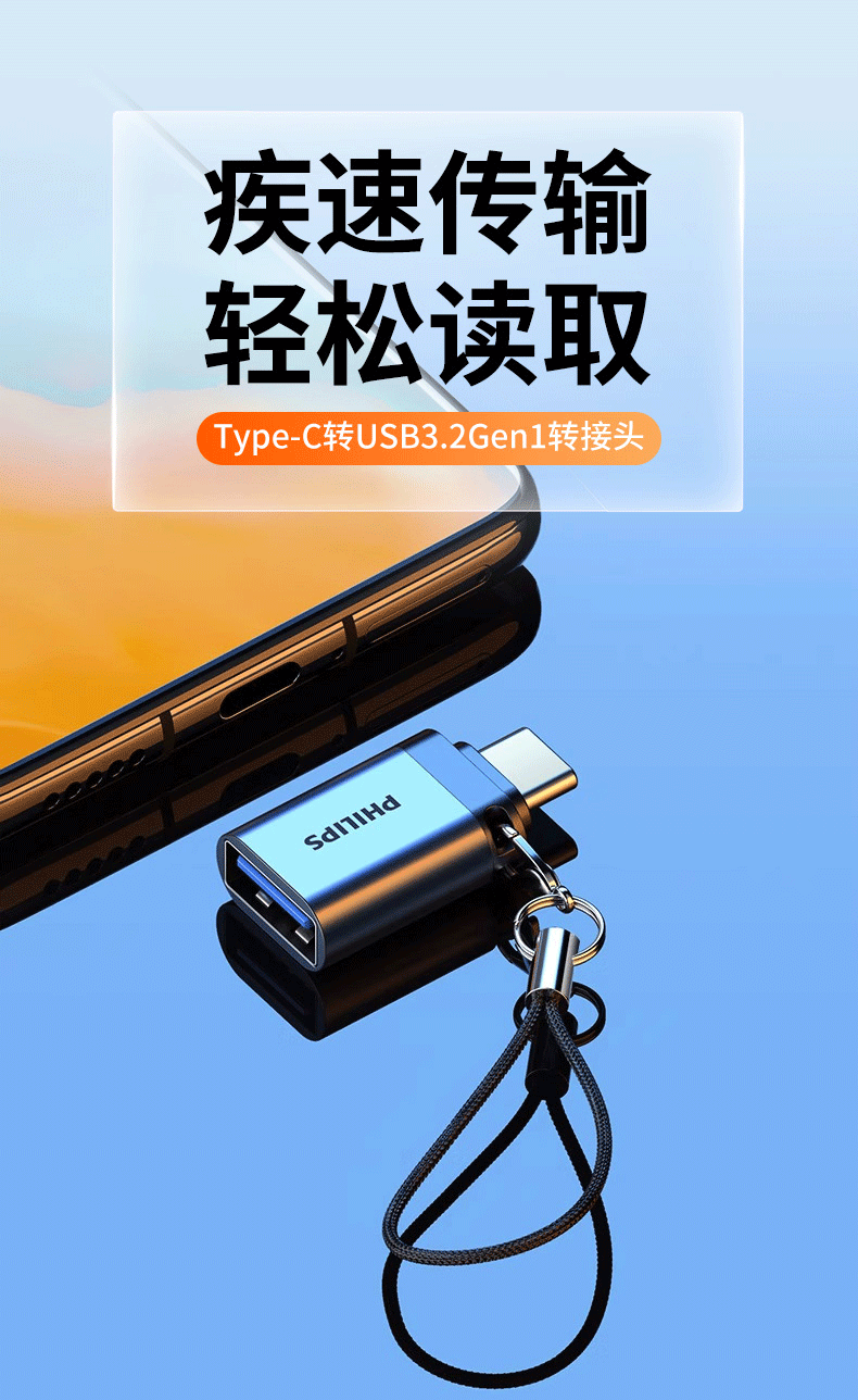 Philips Type-C to USB3.0 adapter 10G rate mobile phone tablet connected to U disk OTG data conversion cable Macbook computer connected to hard disk keyboard and mouse expansion connector USB3.2