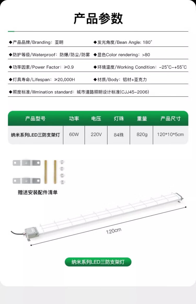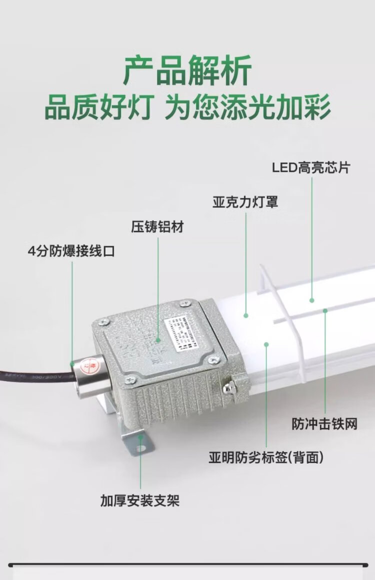 Yaming LED explosion-proof fluorescent light strip light three-proof bracket light dust-proof factory lamp tube workshop lighting 1.2 meters 60W white light