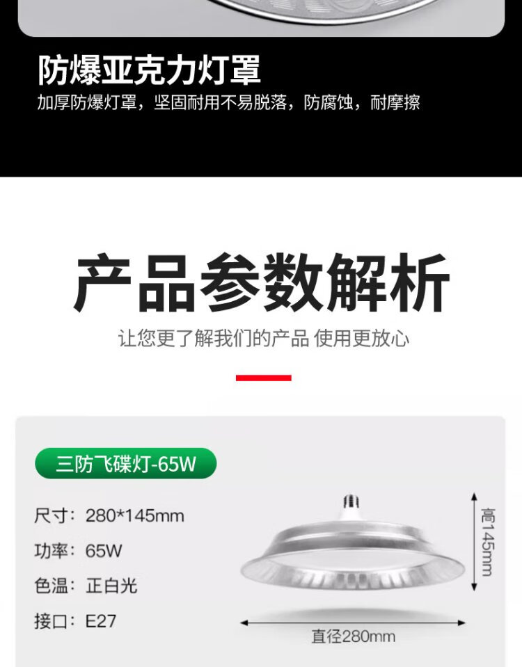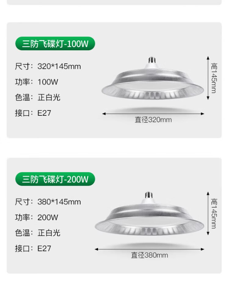 Yaming LED three-proof industrial and mining lamp UFO lamp E27 screw super bright factory workshop warehouse lighting chandelier 100w