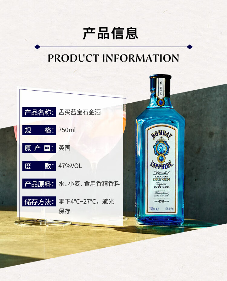 Bombay Sapphire (Bombay) foreign wine gin gin gin 750mL*2 bottles